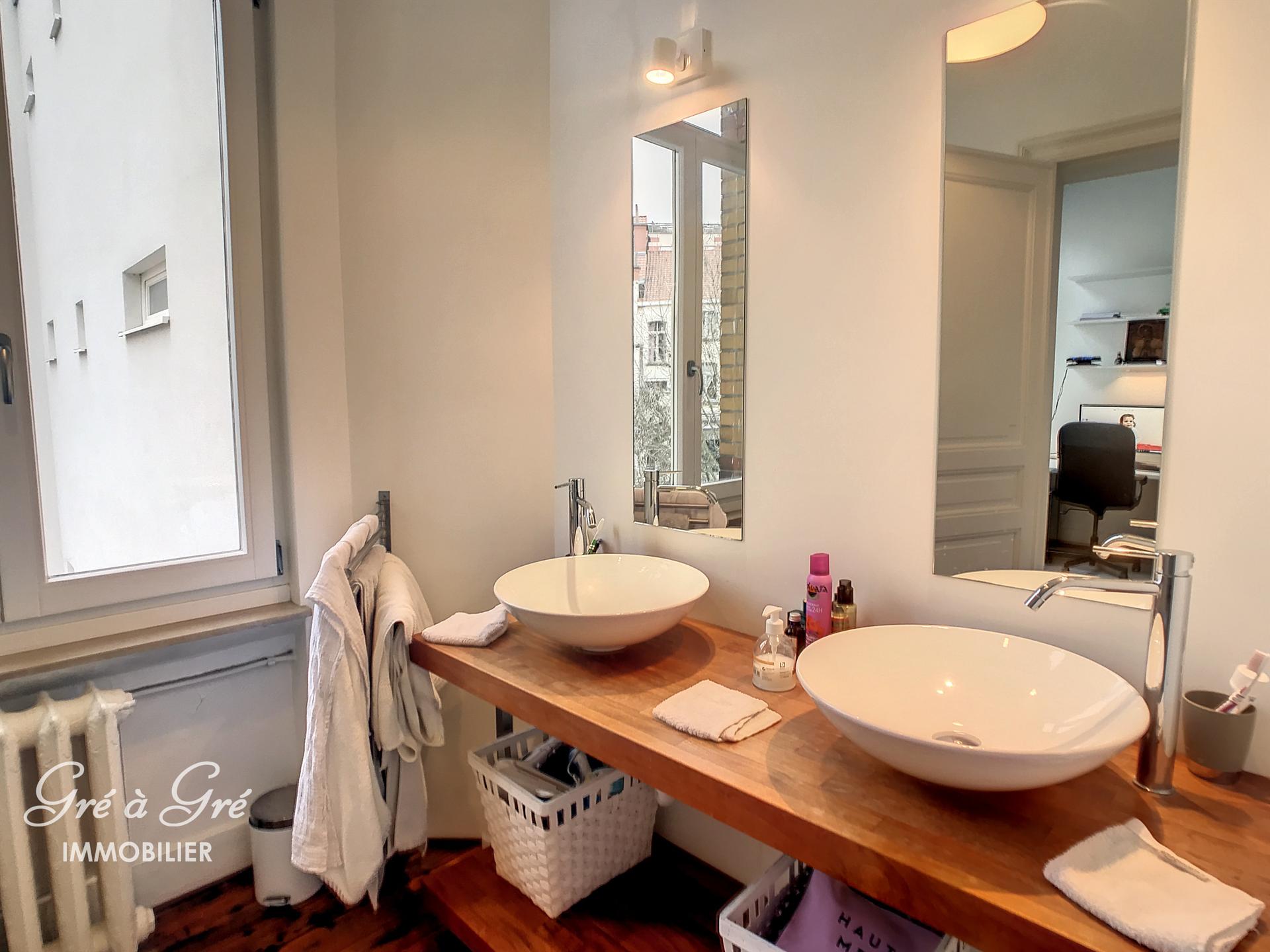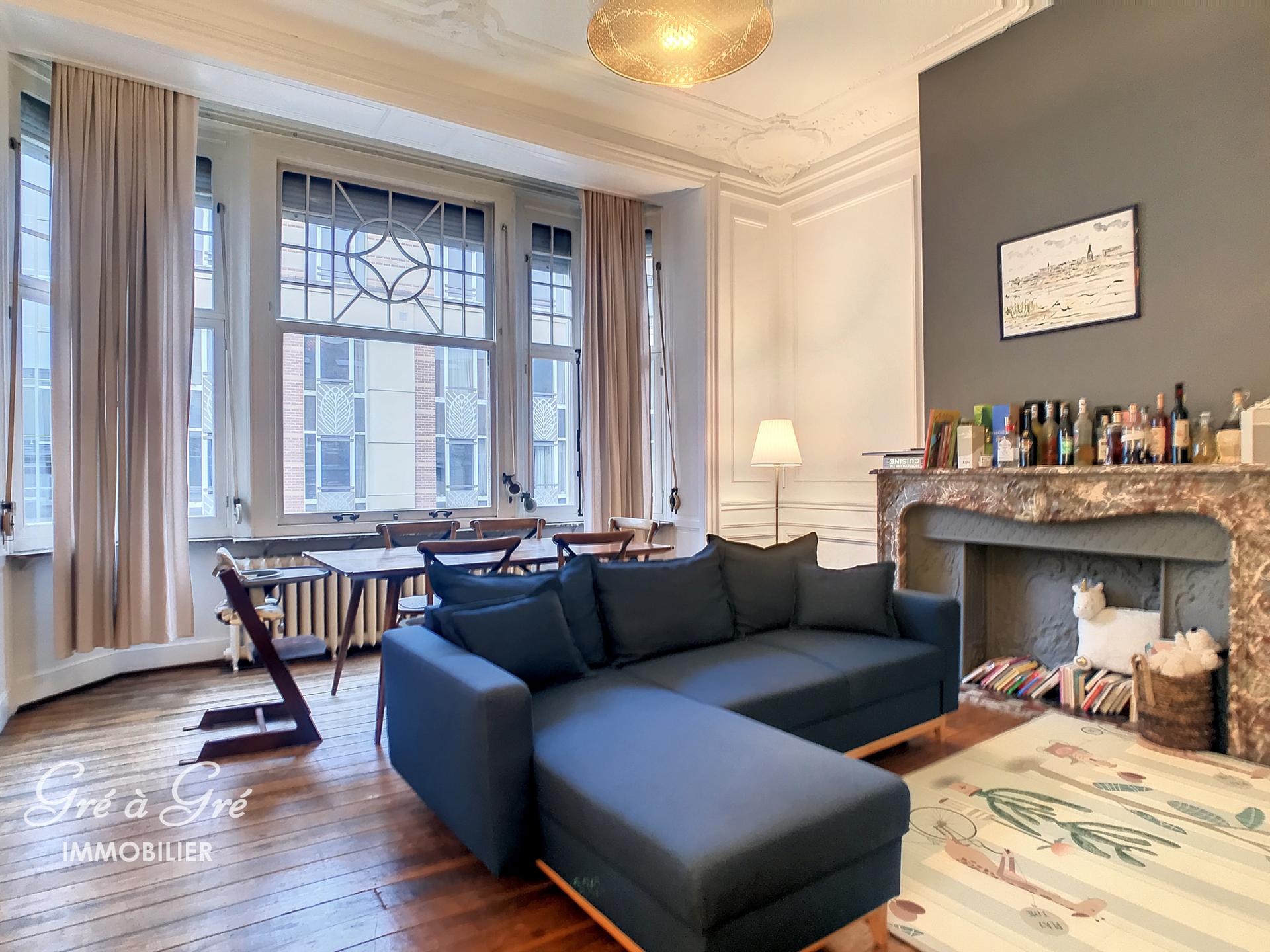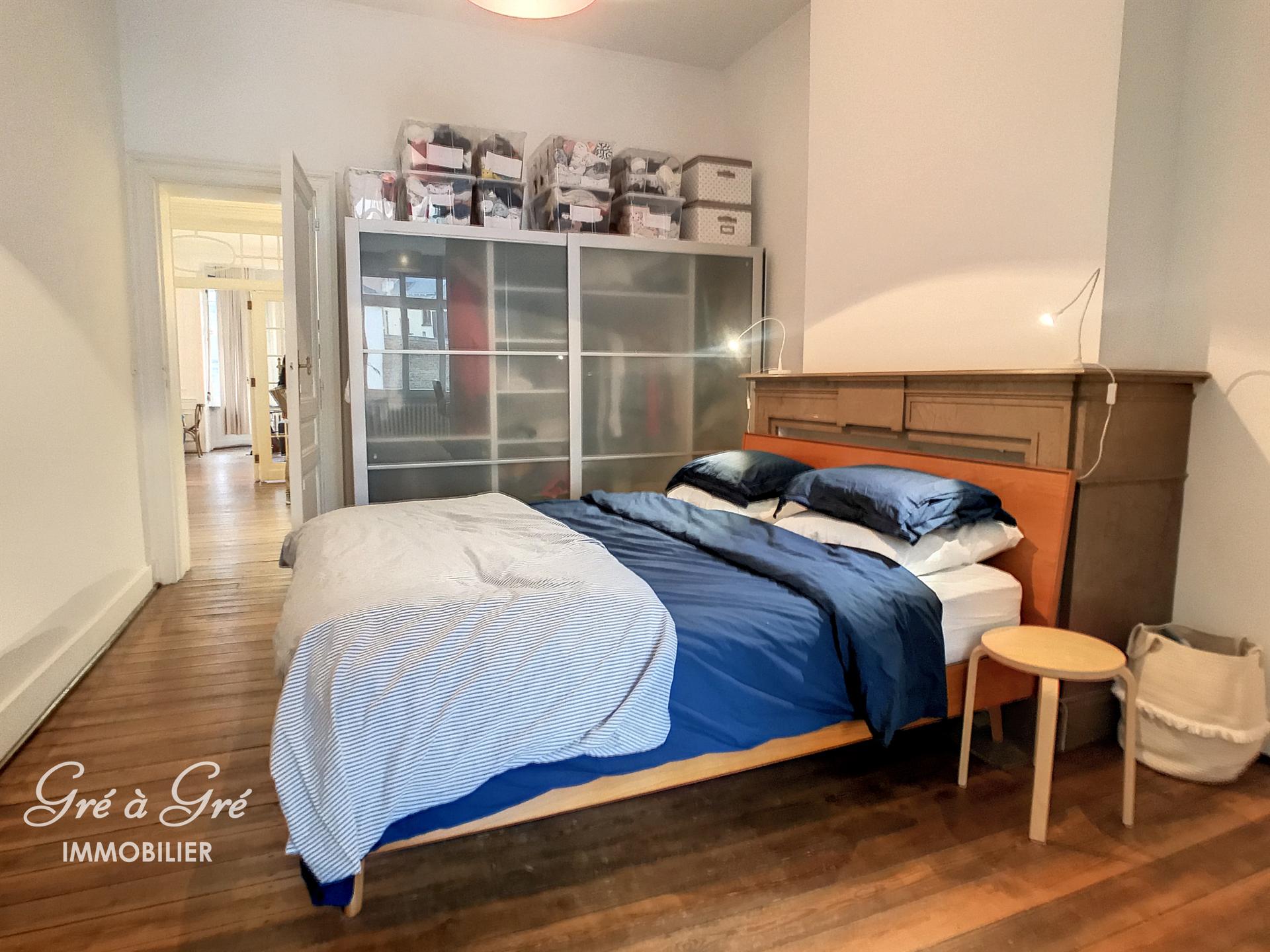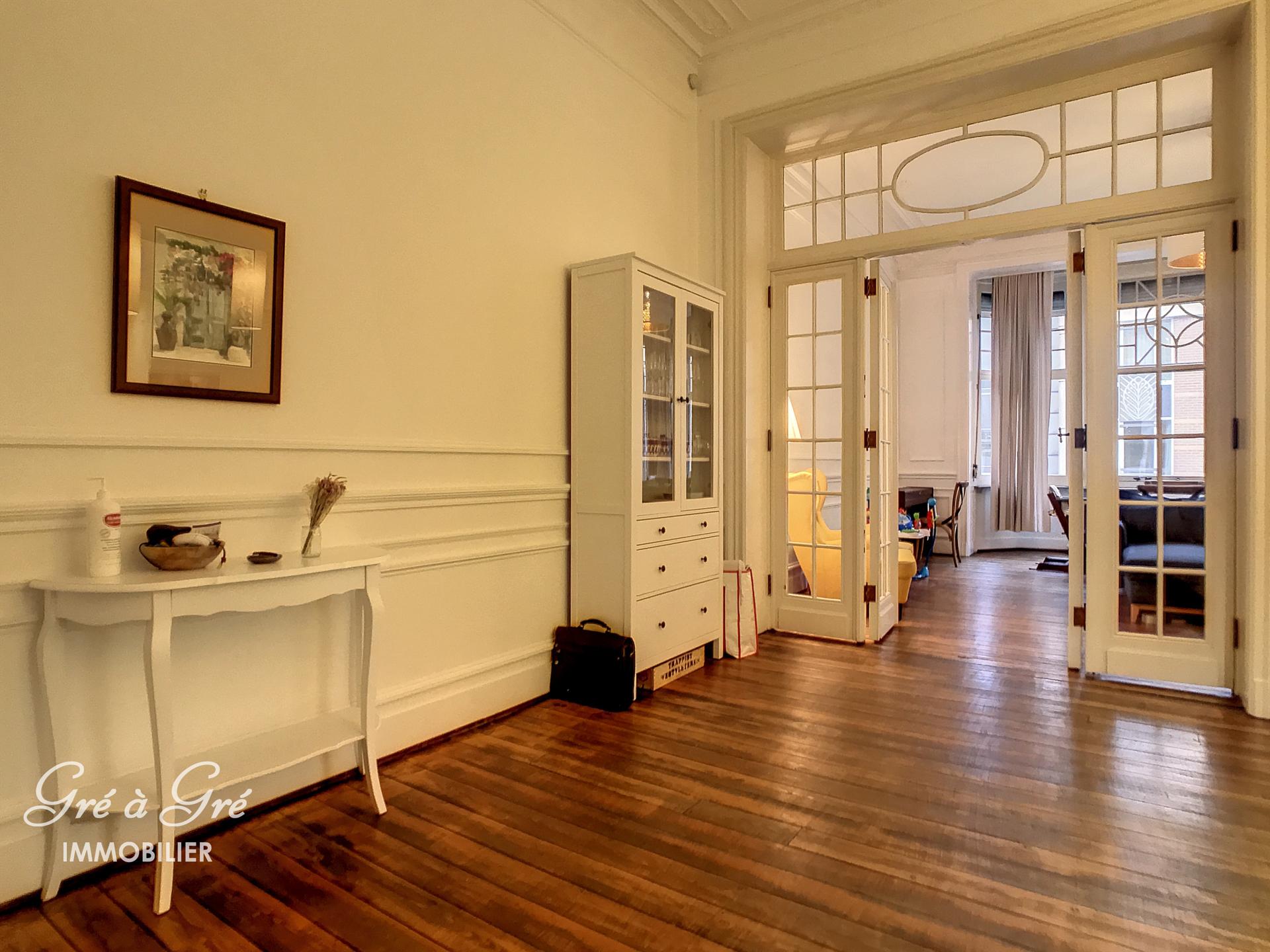 Elegant newly renovated apartment retaining high ceilings with moldings, wooden floors and offering a magnificent living room, a large hyper-equipped kitchen with breakfast corner, 1 bedroom (16 m²) with dressing room + 1 bright office for 2 (14m²), bathroom with "Italian" shower , storage place. Private cellar (15m²-possibility of storing bicycles).