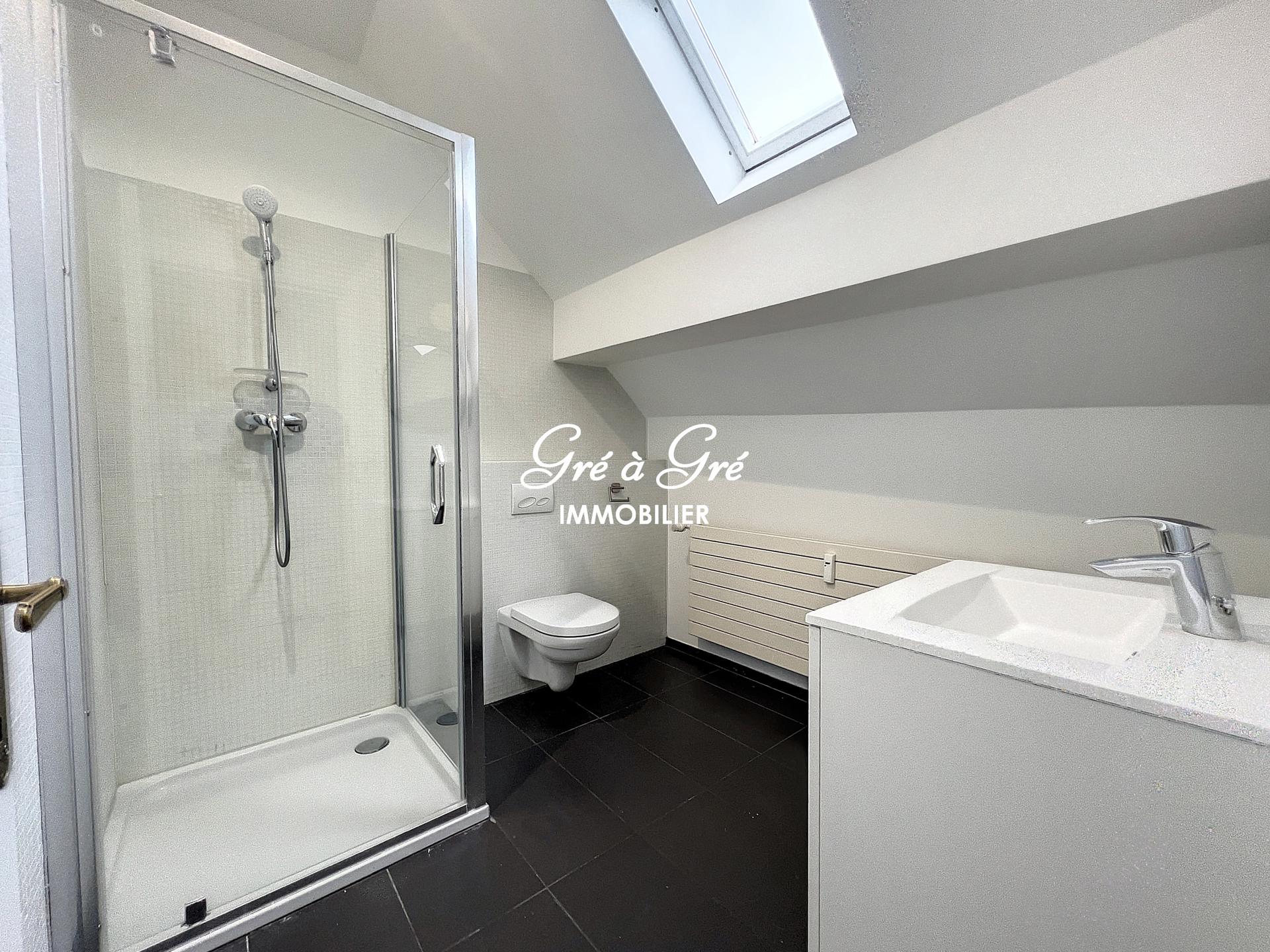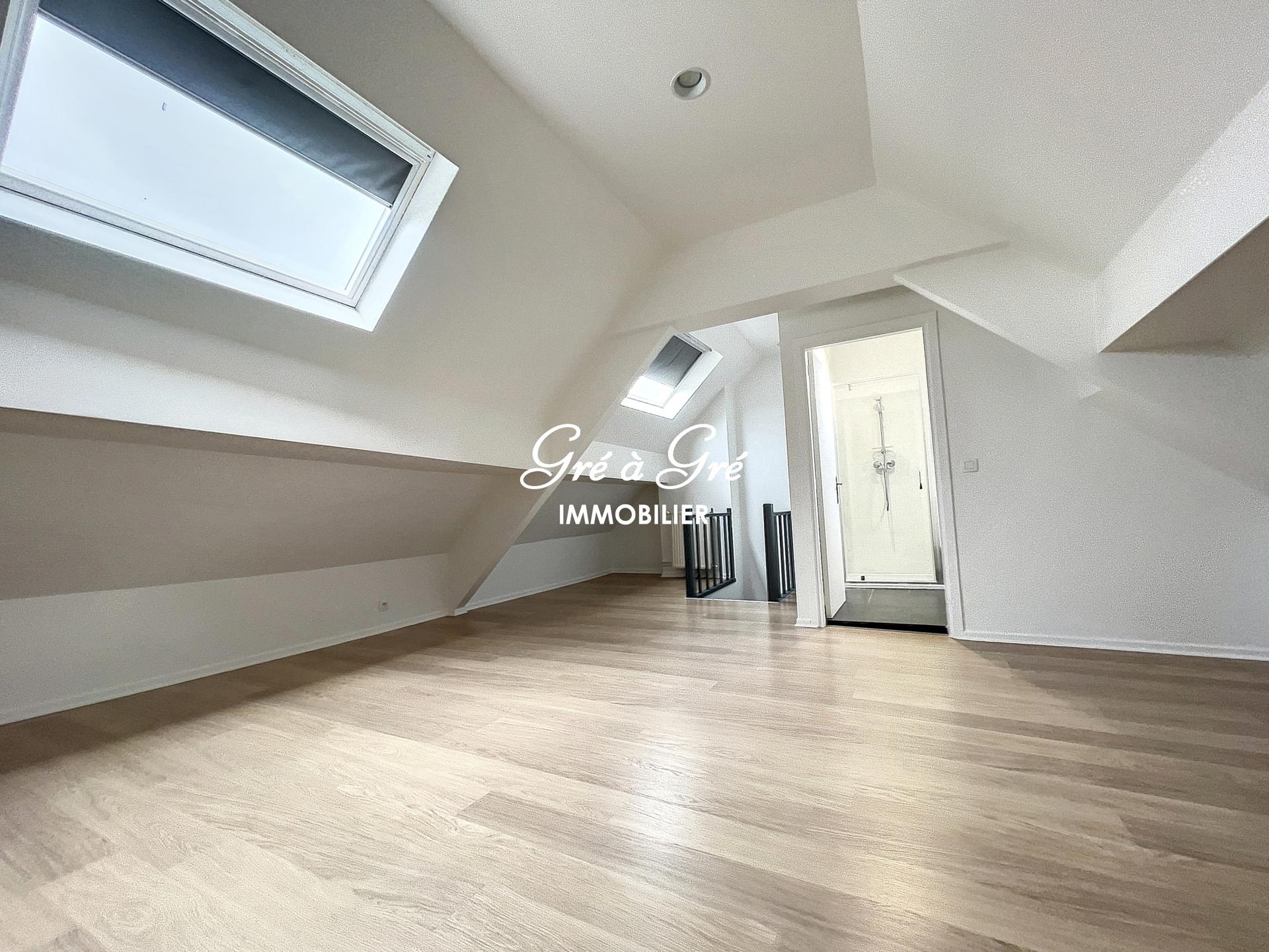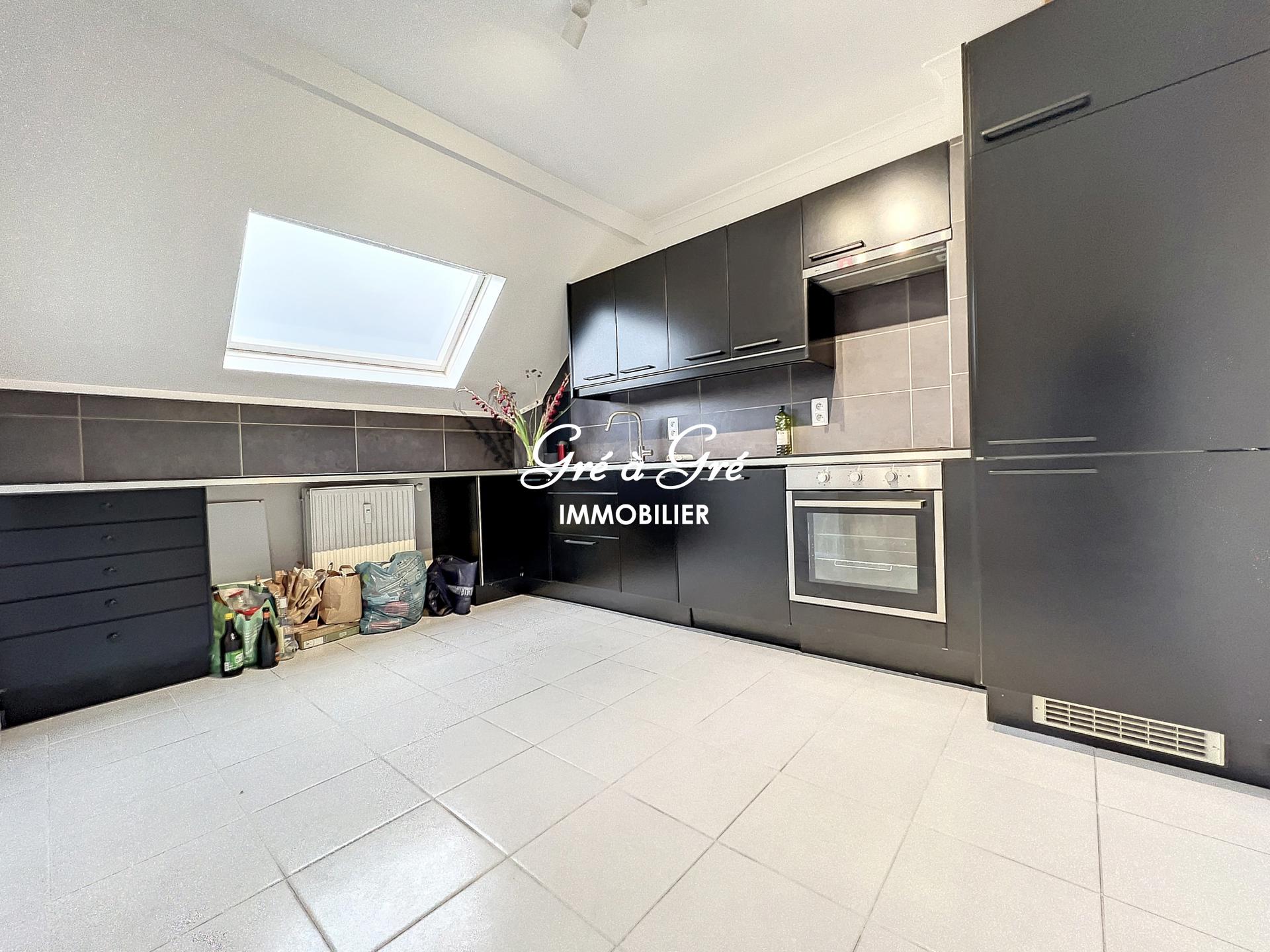 Duplex apartment (UNFURNISHED) comprising an entrance hall with toilet, bright living room, large hyper-equipped kitchen, 2 bedrooms, 1 bathroom, 1 shower room. Cellar. Charges: 150 eur/month (provision for common areas, heating and water). Individual electricity meter. "Roommate" allowed!