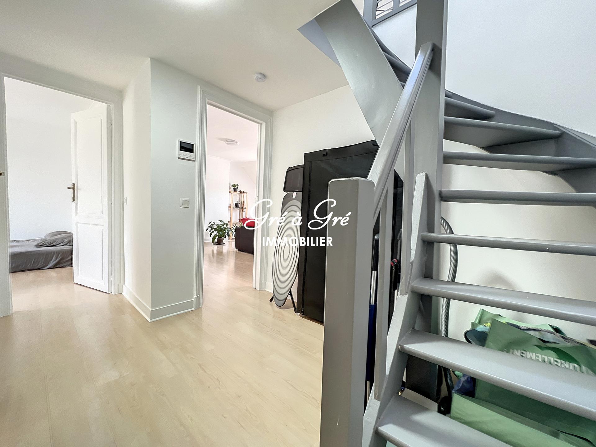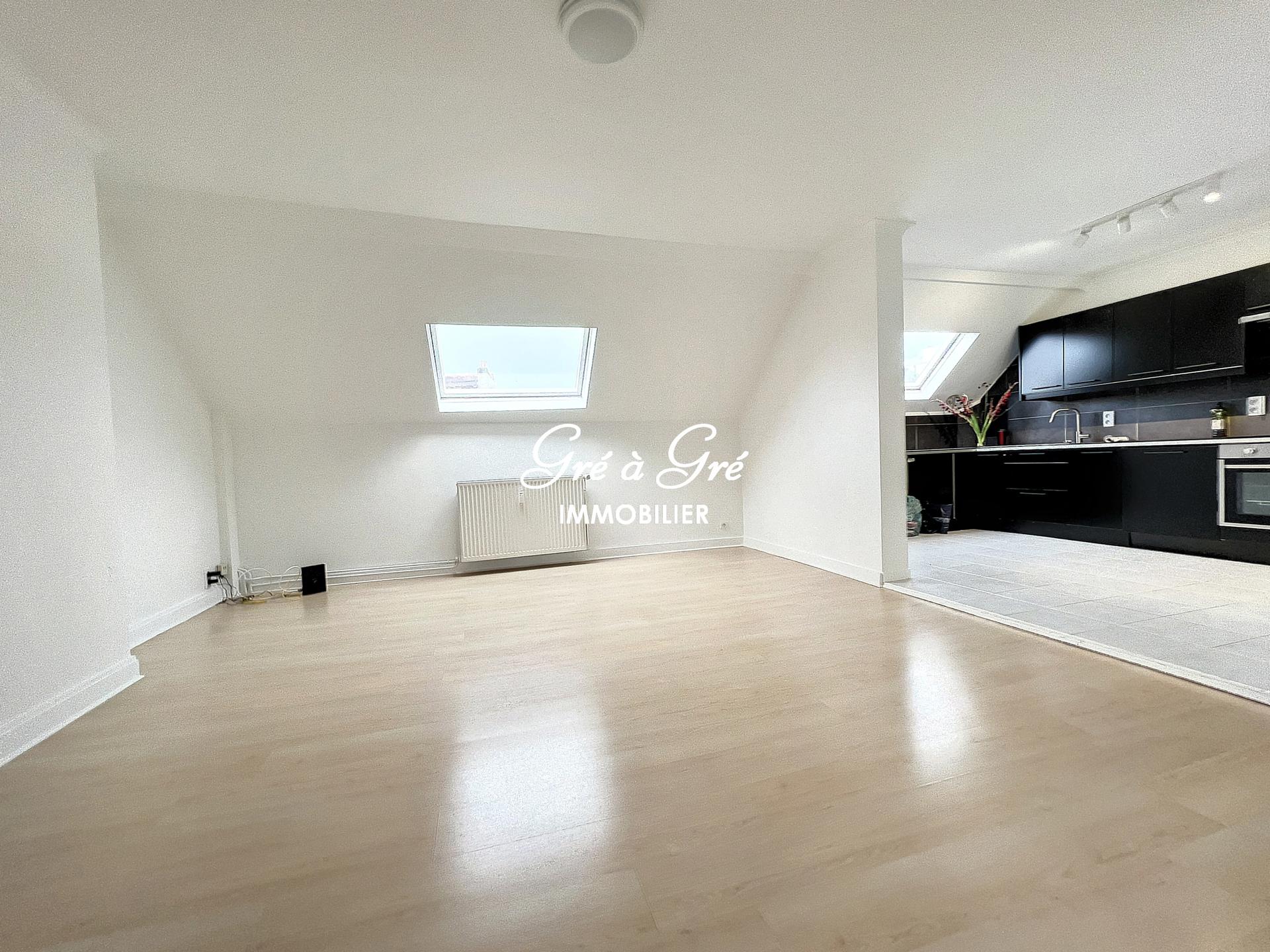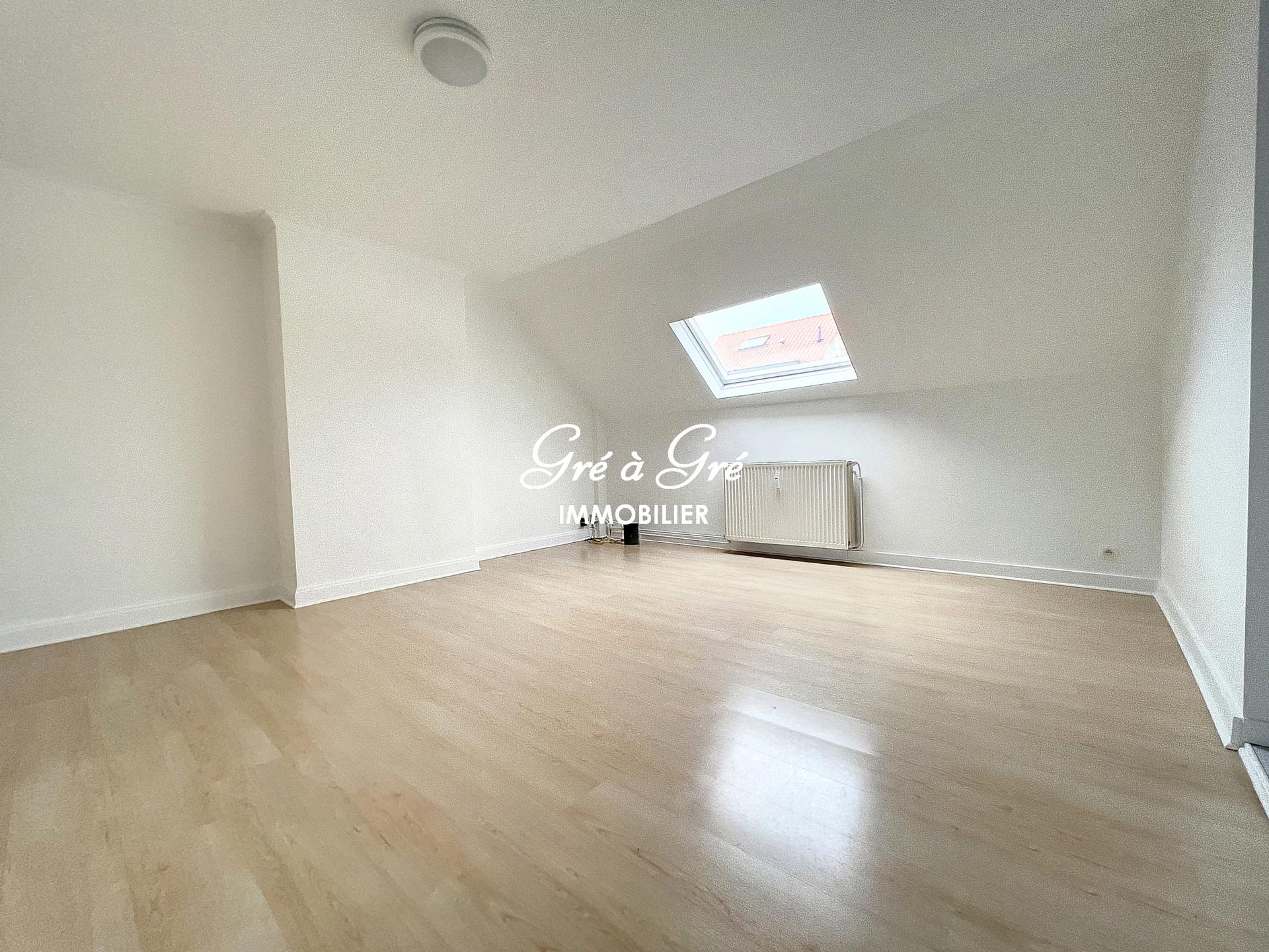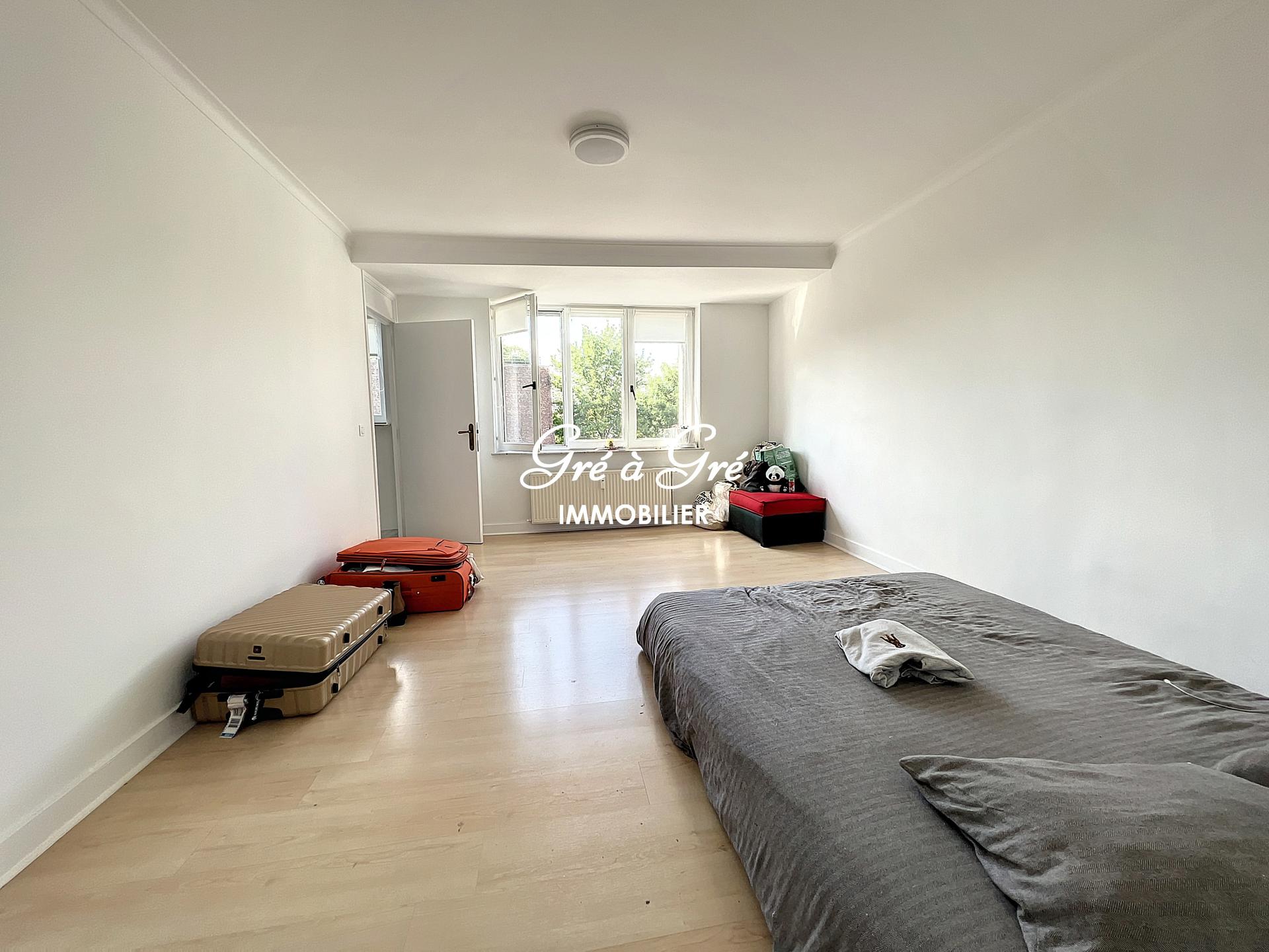 Duplex apartment (UNFURNISHED) comprising an entrance hall with toilet, bright living room, large hyper-equipped kitchen, 2 bedrooms, 1 bathroom, 1 shower room. Cellar. Charges: 150 eur/month (provision for common areas, heating and water). Individual electricity meter. "Roommate" allowed!