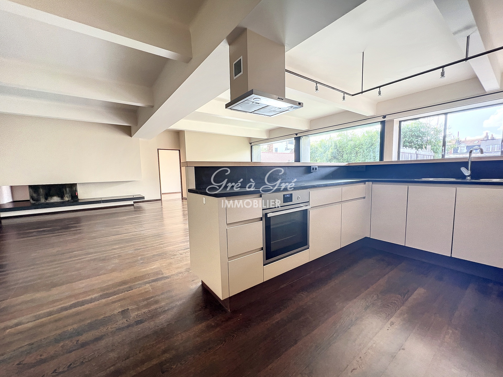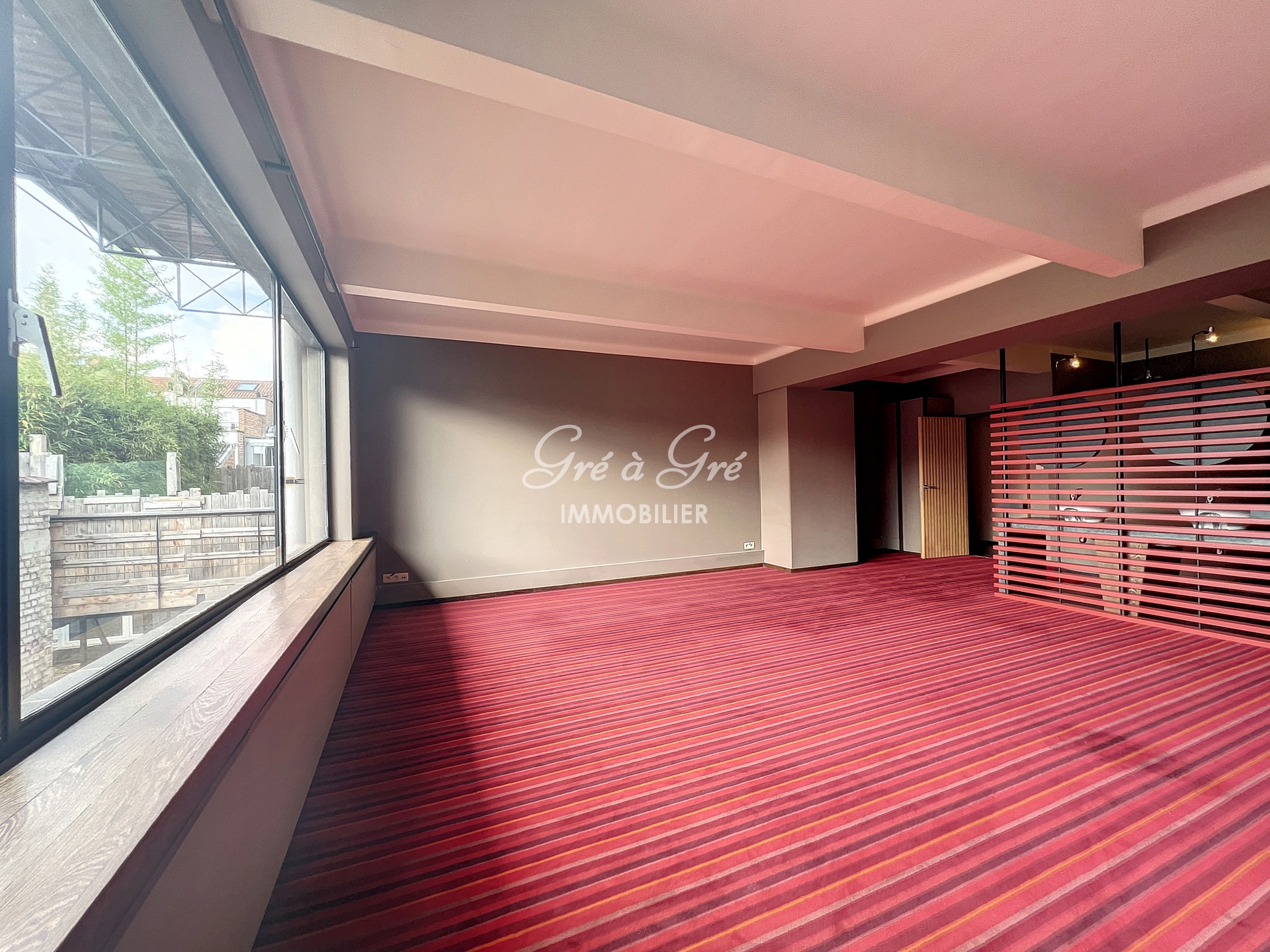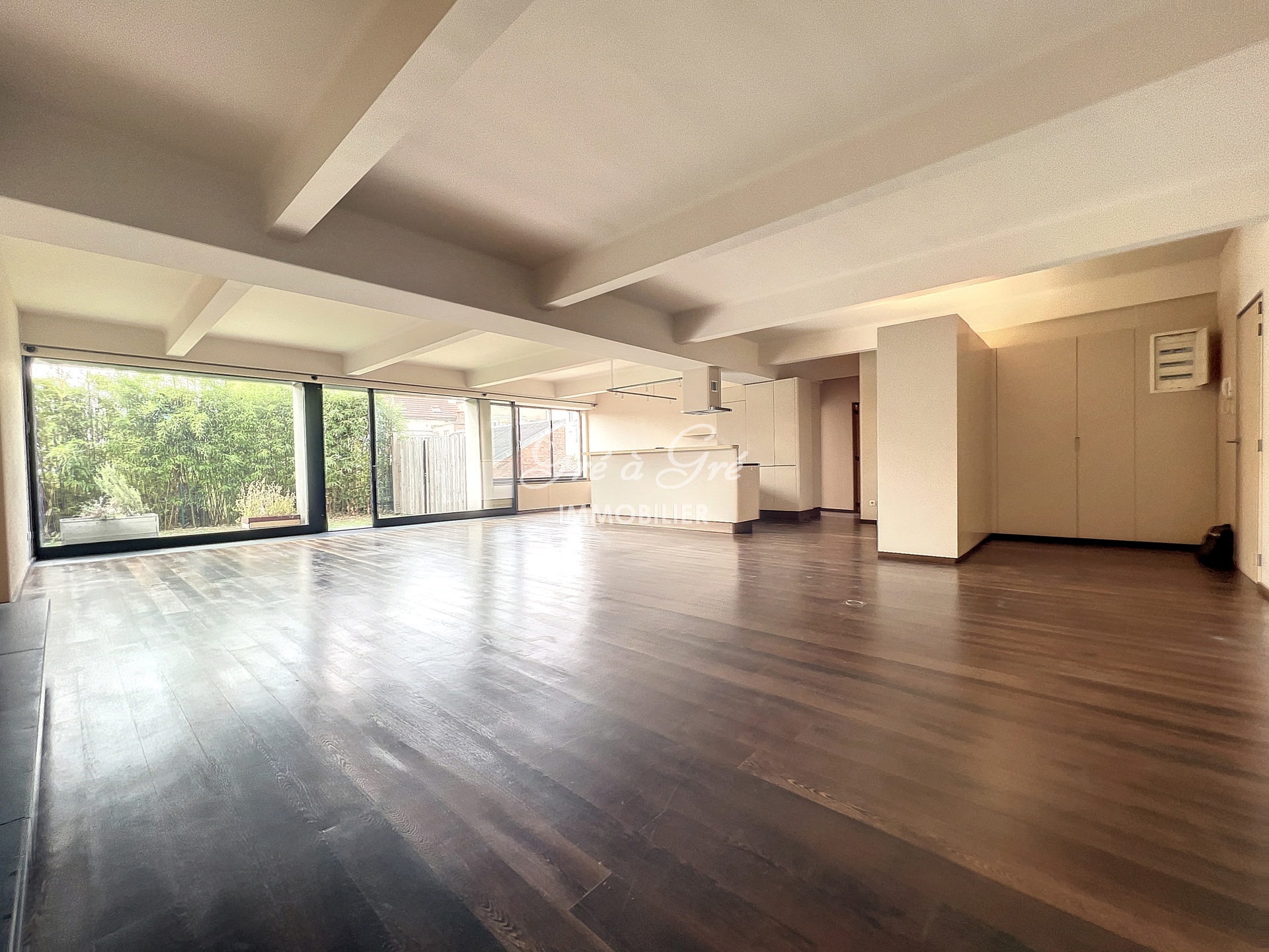 Comprising: 82m² living room/living room with fully equipped open-plan kitchen, 3 bedrooms (50m², 18m², 17m²), 2 shower rooms and double sink, 2 separate toilets and rear terrace (26m²). Gas central heating, open fire, double glazing, intercom. No common charges and meters are individual . EPC: C. Immediately available. Possibility to rent a parking/garage space.
