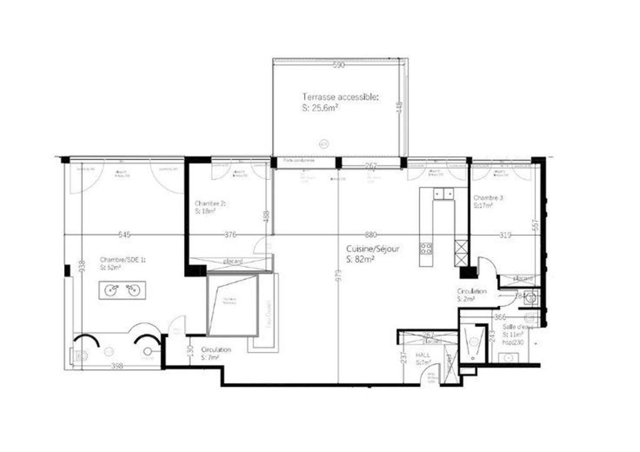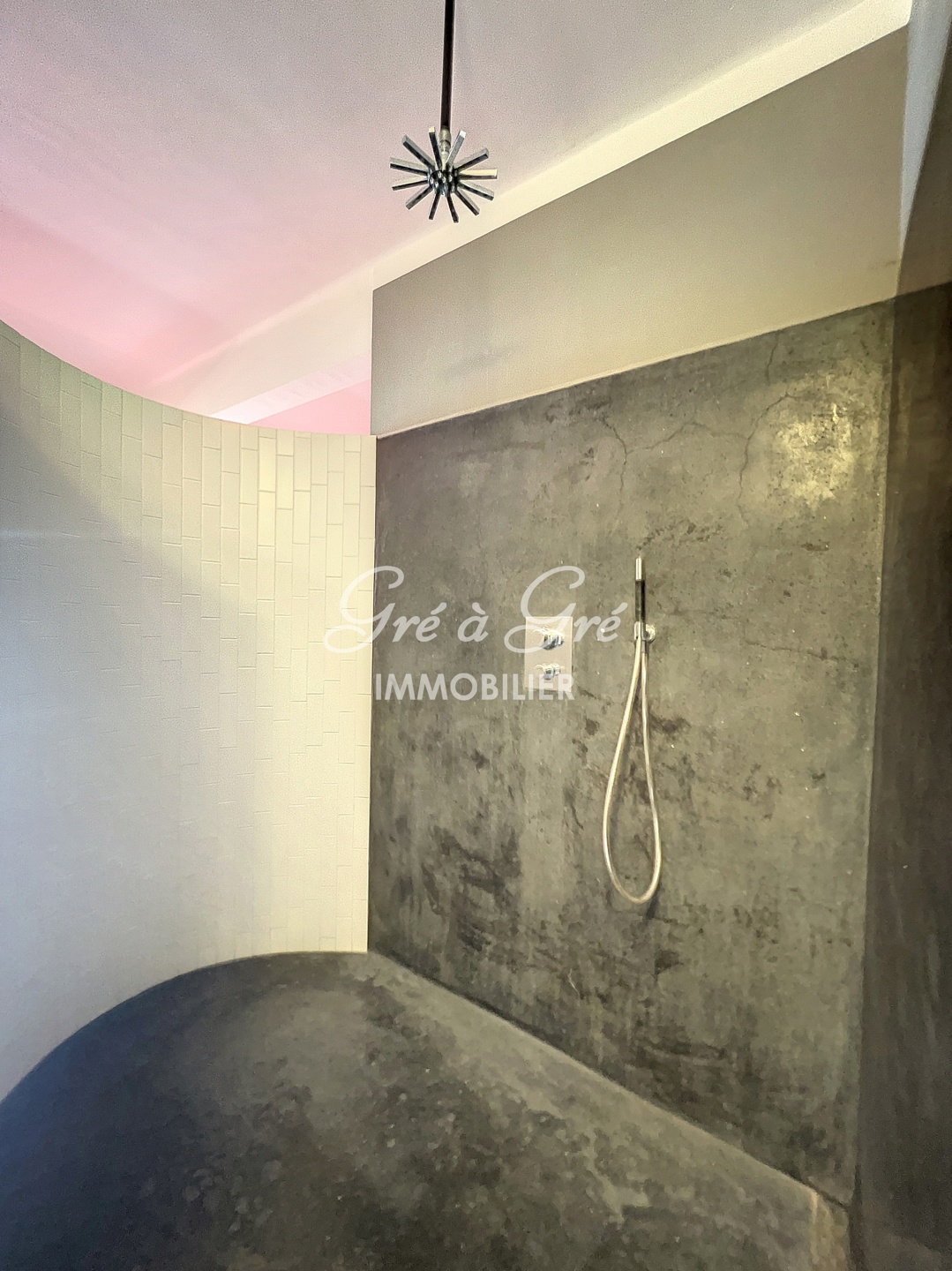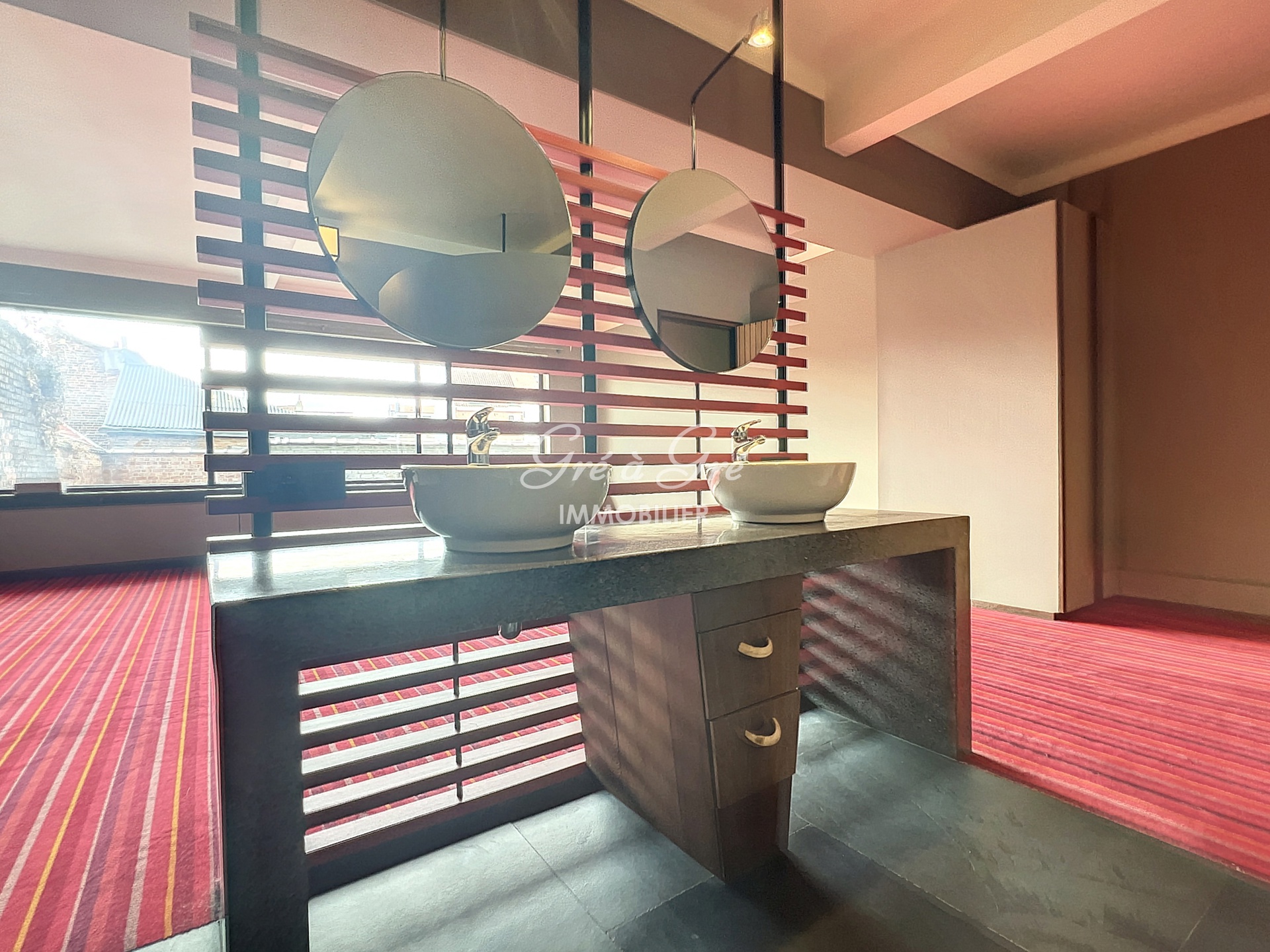 Comprising: 82m² living room/living room with fully equipped open-plan kitchen, 3 bedrooms (50m², 18m², 17m²), 2 shower rooms and double sink, 2 separate toilets and rear terrace (26m²). Gas central heating, open fire, double glazing, intercom. No common charges and meters are individual . EPC: C. Immediately available. Possibility to rent a parking/garage space.