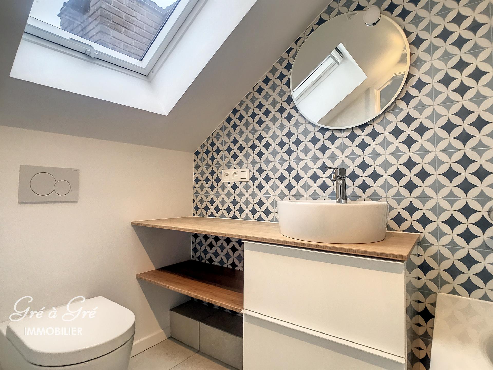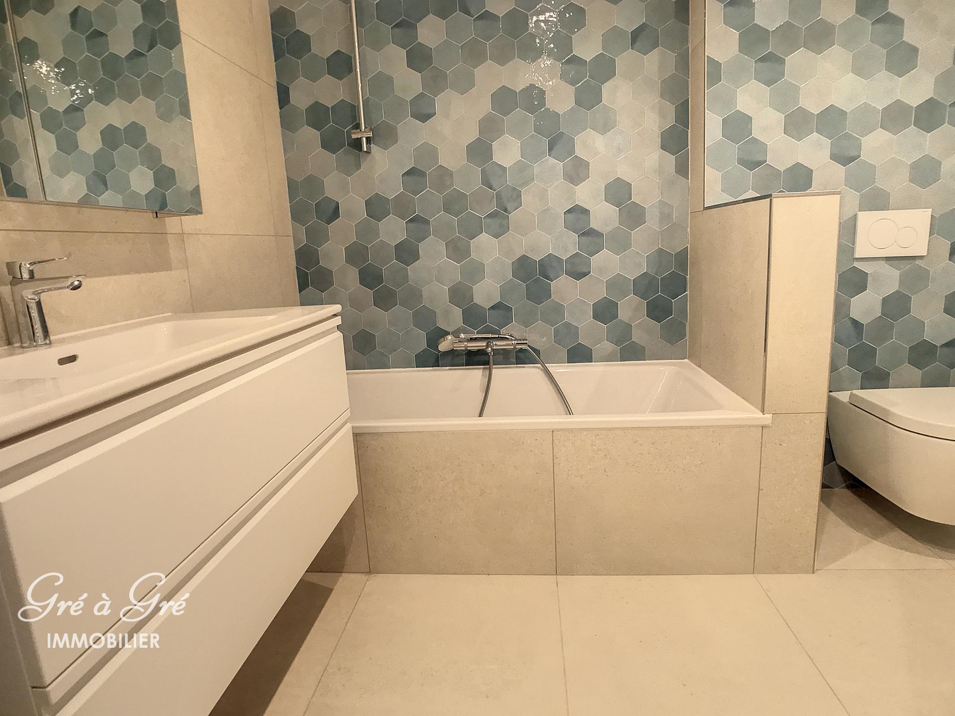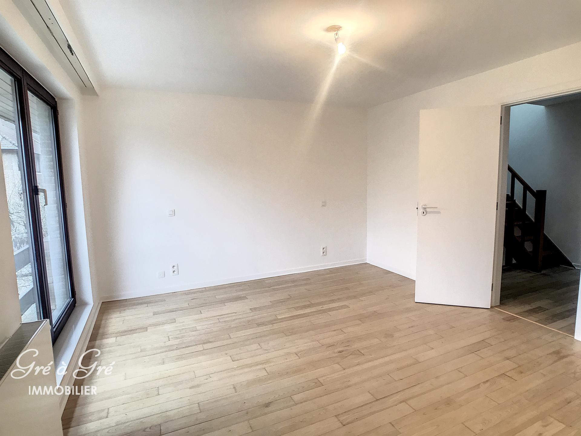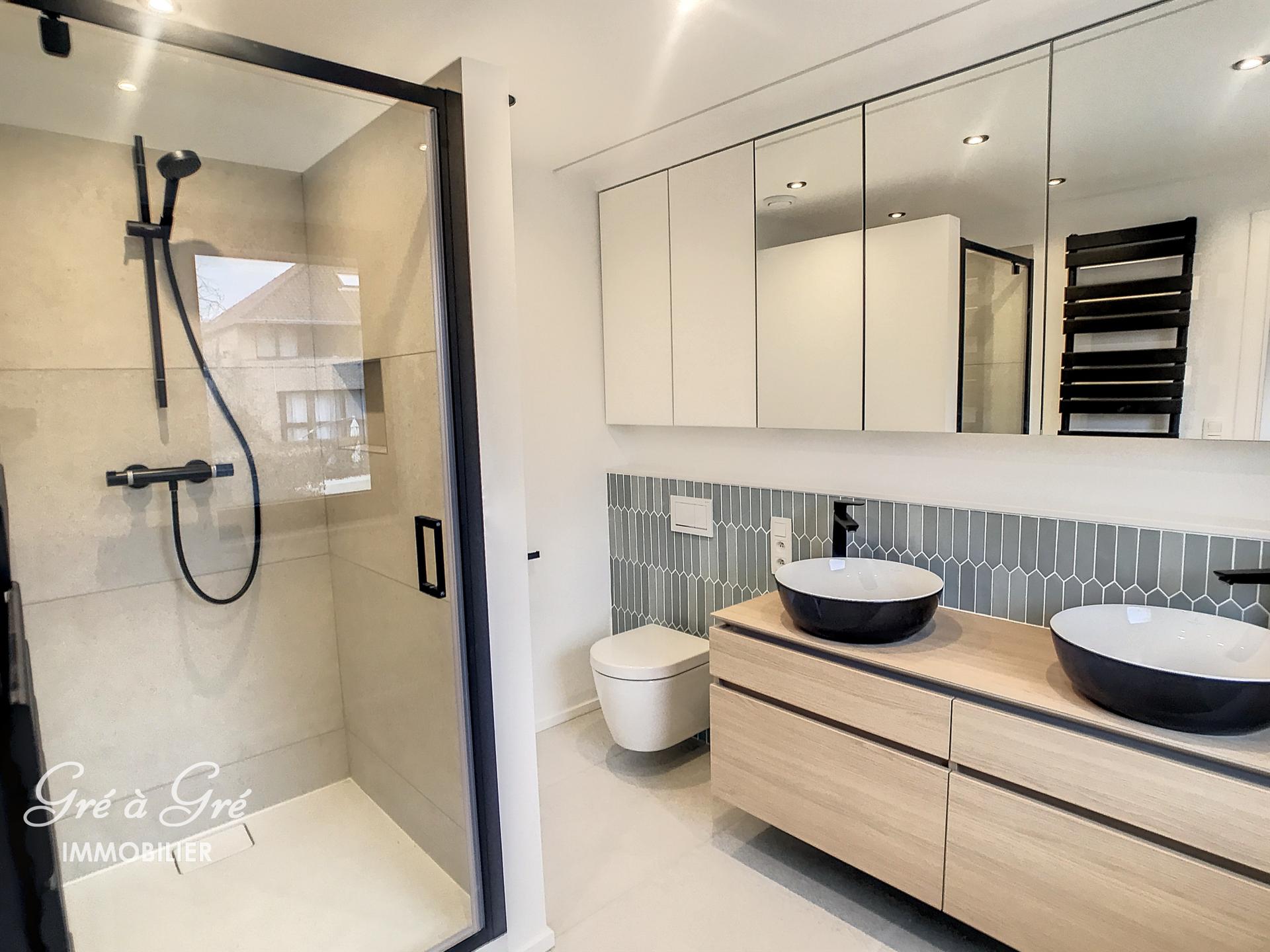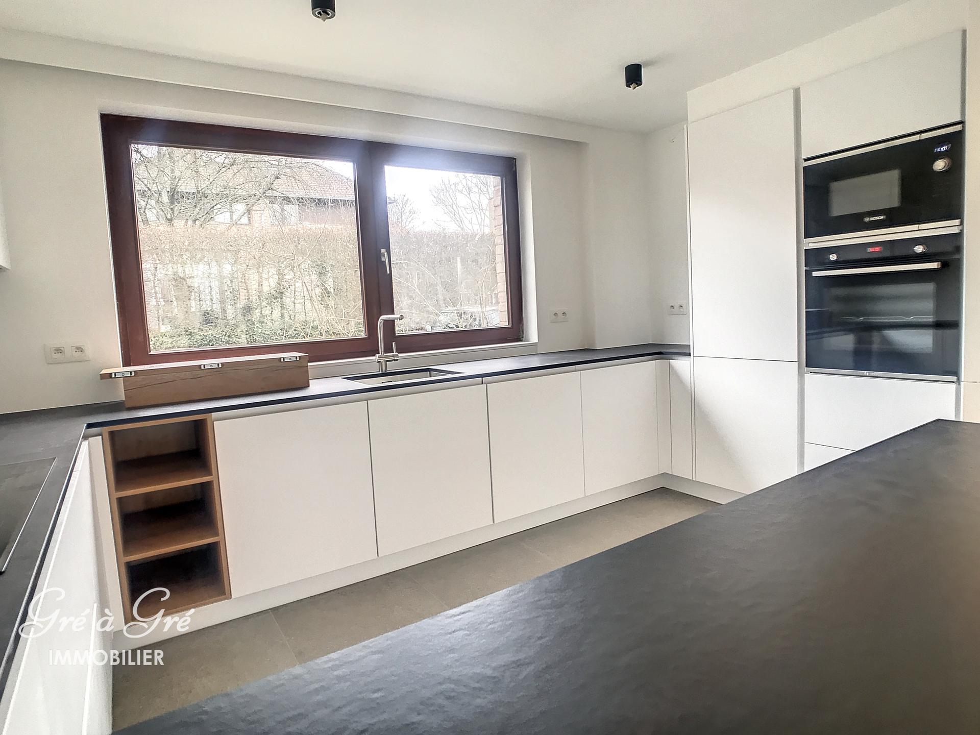 SHORT TERM LEASE. 1st occupation after renovation! Fort Jaco, in a quiet area set back from the Chaussée de Waterloo, bright renovated house comprising an entrance hall with cloakroom and toilet, 50m² living room facing the garden with terrace, new fully equipped kitchen, 4 bedrooms and 3 new bathrooms . Laundry room. Large cellars. 2 outdoor parking spaces and carport with space for bikes. New central heating. Charges: 180 eur / month (provision 60 eur / m for water and 120 eur / month for the upkeep of the enclosure. EPC E (before heating and insulation works). NOW AVAILABLE.