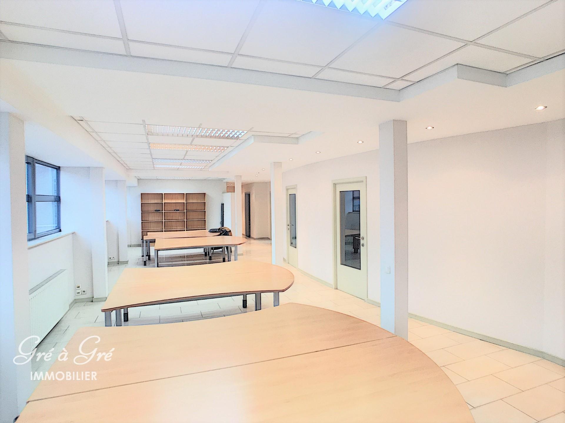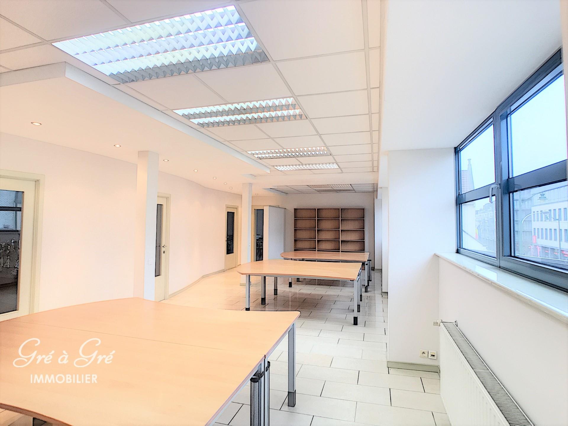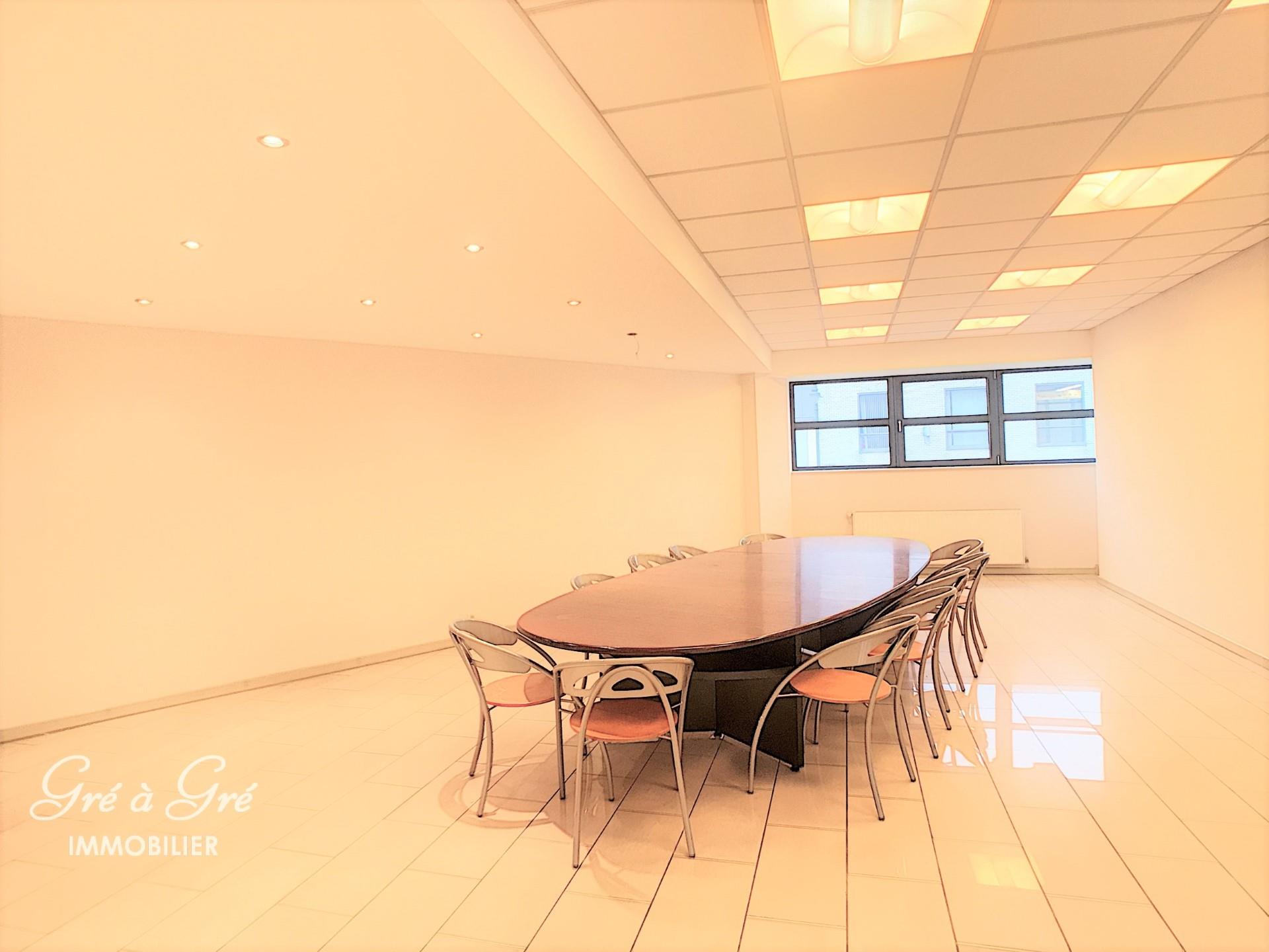 Near HANKAR metro / Etterbeek station and DELTA. Office area 160 m² + fitted kitchen, sanitary facilities and terrace. Possibility parking. On the 1st floor with elevator, entrance hall, landscaped office 75m², executive office / meeting room 45m², 4 separate offices (13, 12, 8 and 5 m²), archive room (8m²) and technical room. Charges: ALL-IN, package: 300 eur / month + taxes and property tax: 100 eur / month. Excellent condition. Available now.