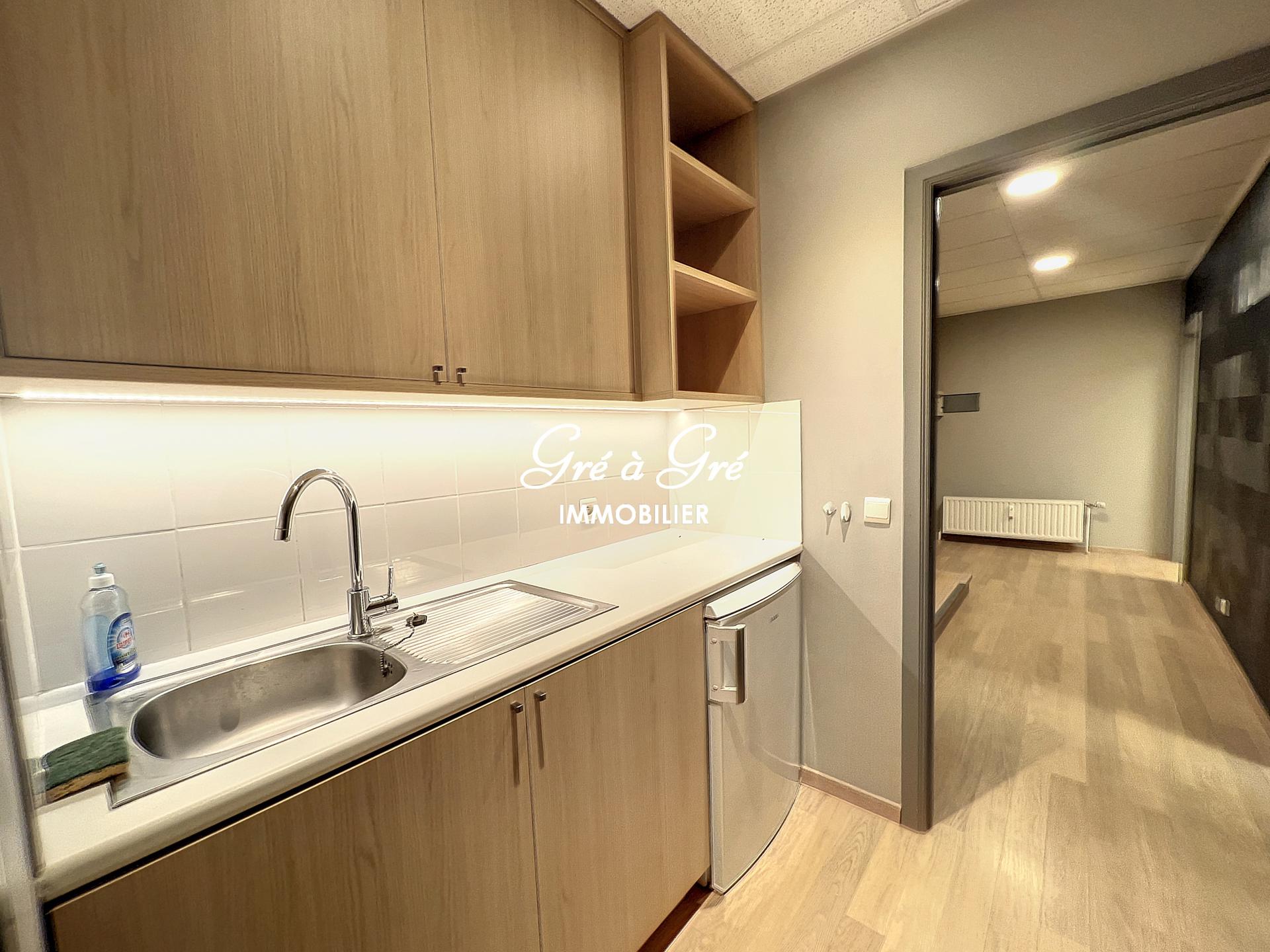 Wavre region - close to Louvain-La-Neuve, E411 and transport (bus), in a modern and secure business center, bright 50 m² office + waiting room, kitchen and toilet. In suite, heated and secure storage (55m²) with unloading dock. Parking.