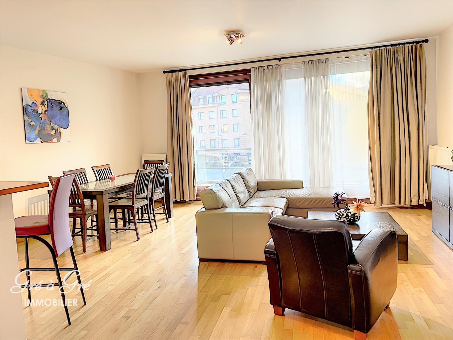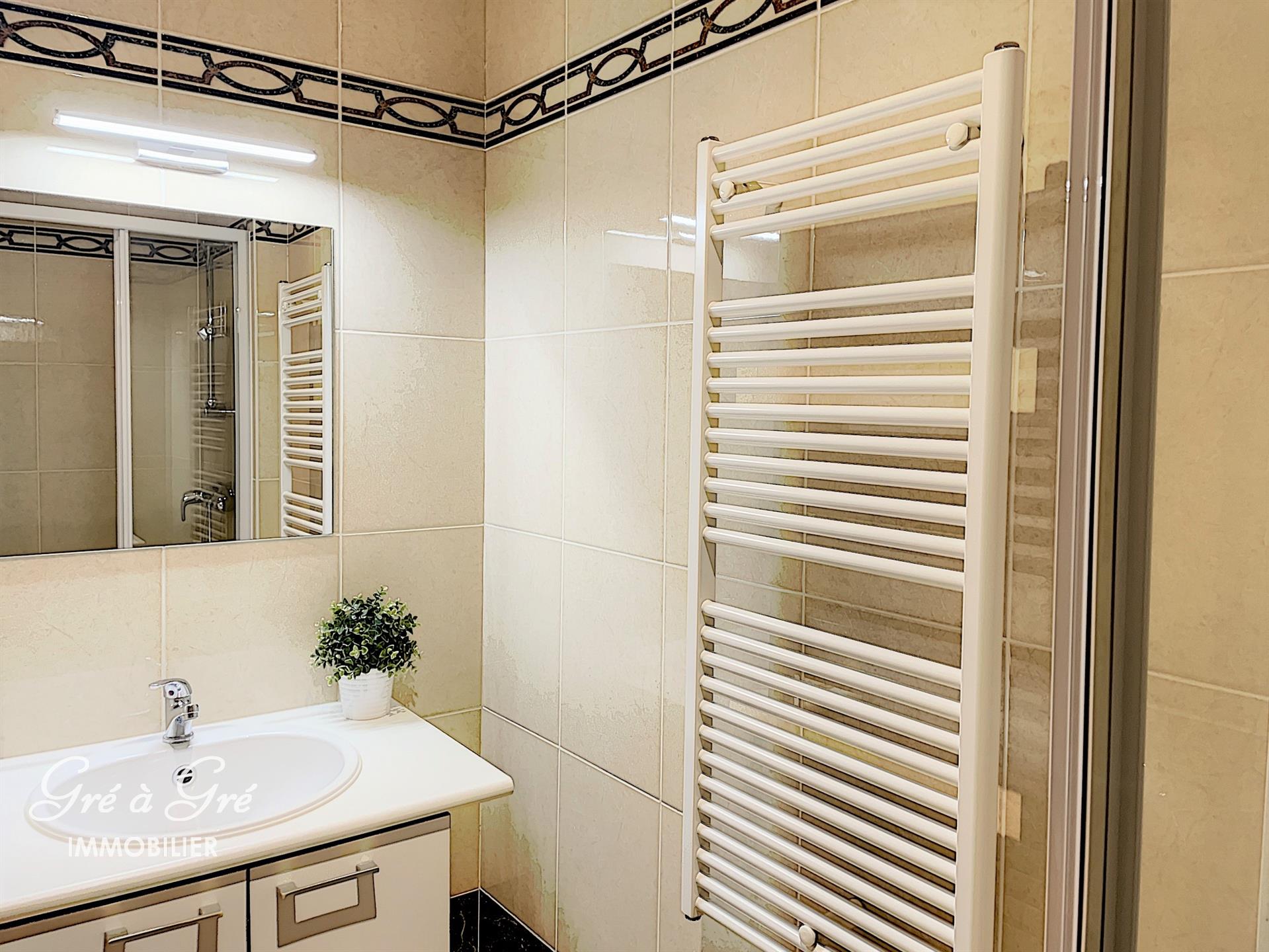Composition: entrance hall with armored door and videophone, cloakroom, 40m² living room with access to the terrace, semi-open and fully equipped kitchen, 2 bedrooms (16m² and 12m²) including one with bathroom and toilet, an additional shower room , a separate toilet, laundry room with washing machine and dryer. 1 cellar. EPC C, electricity compliant, absence of town planning infringement. Including 1 car space in the basement of the building.