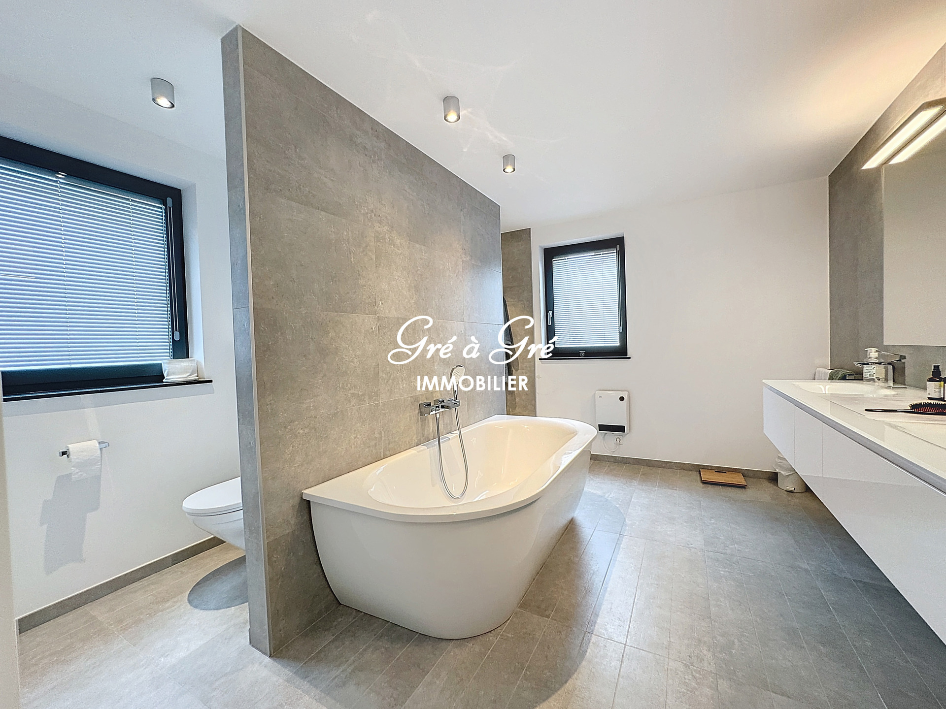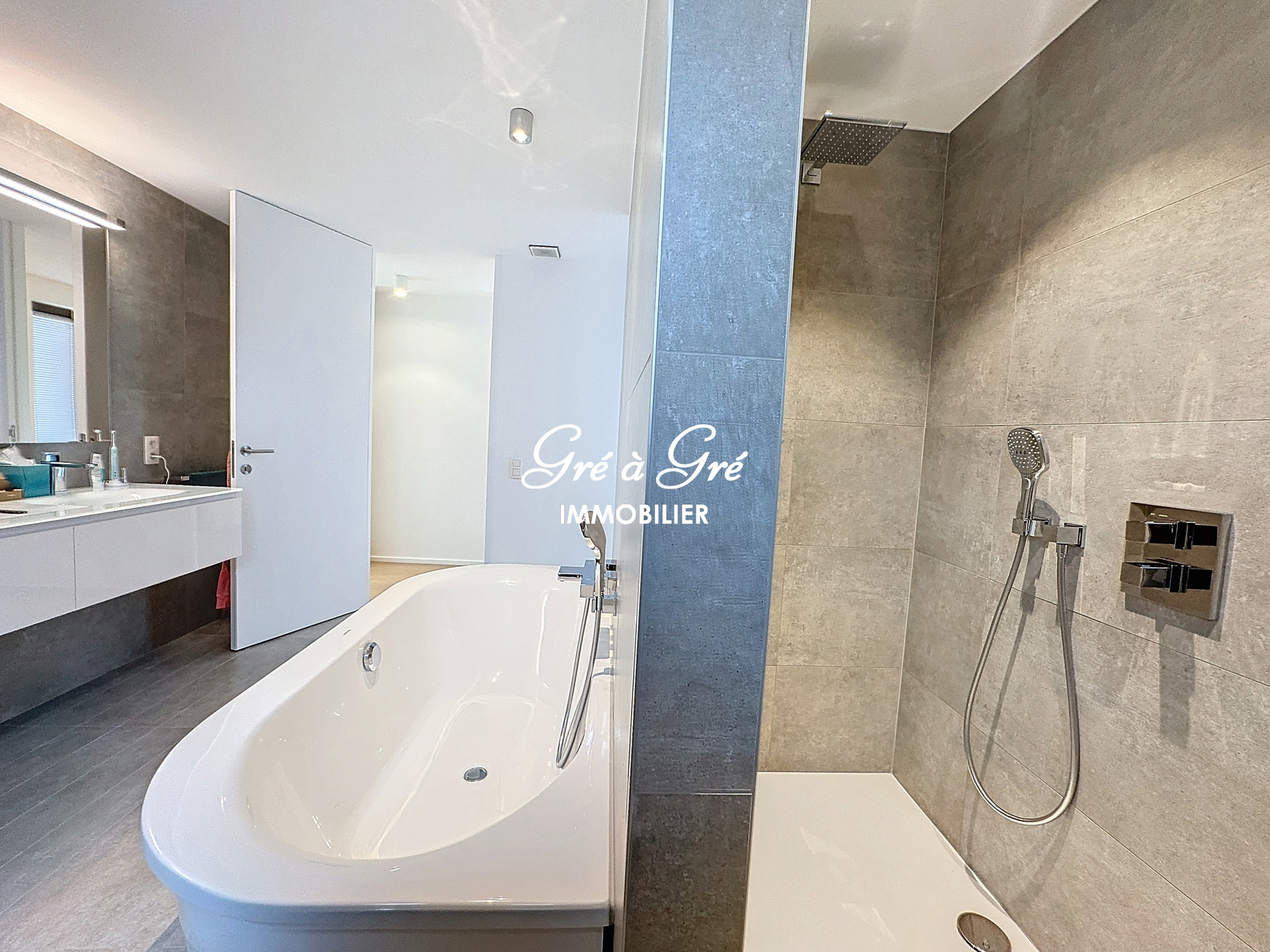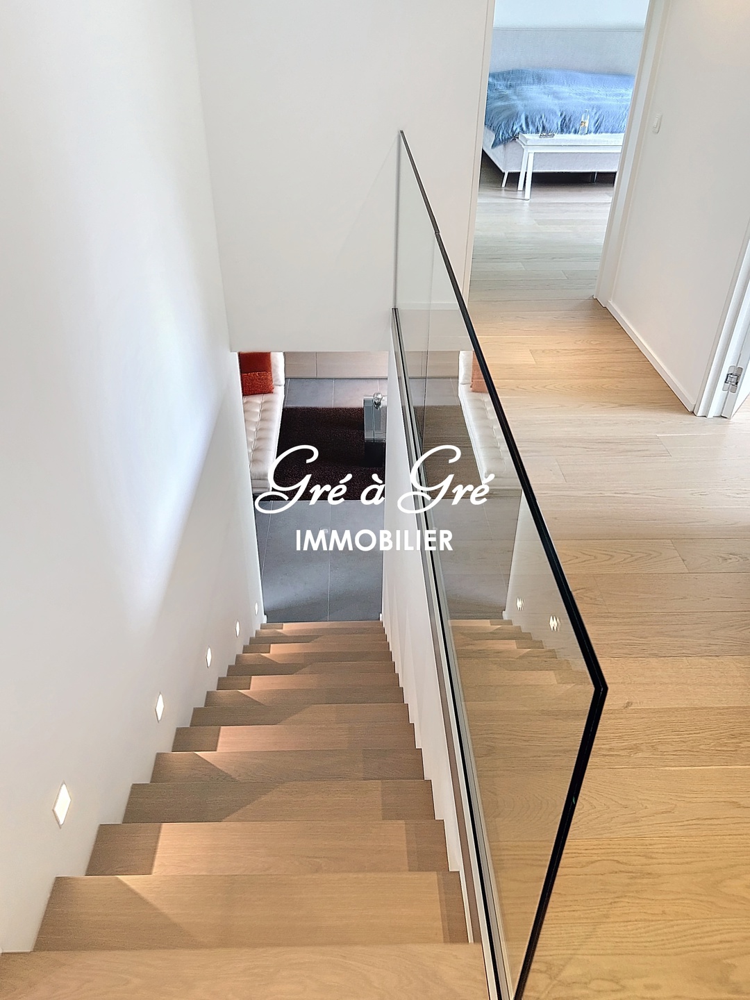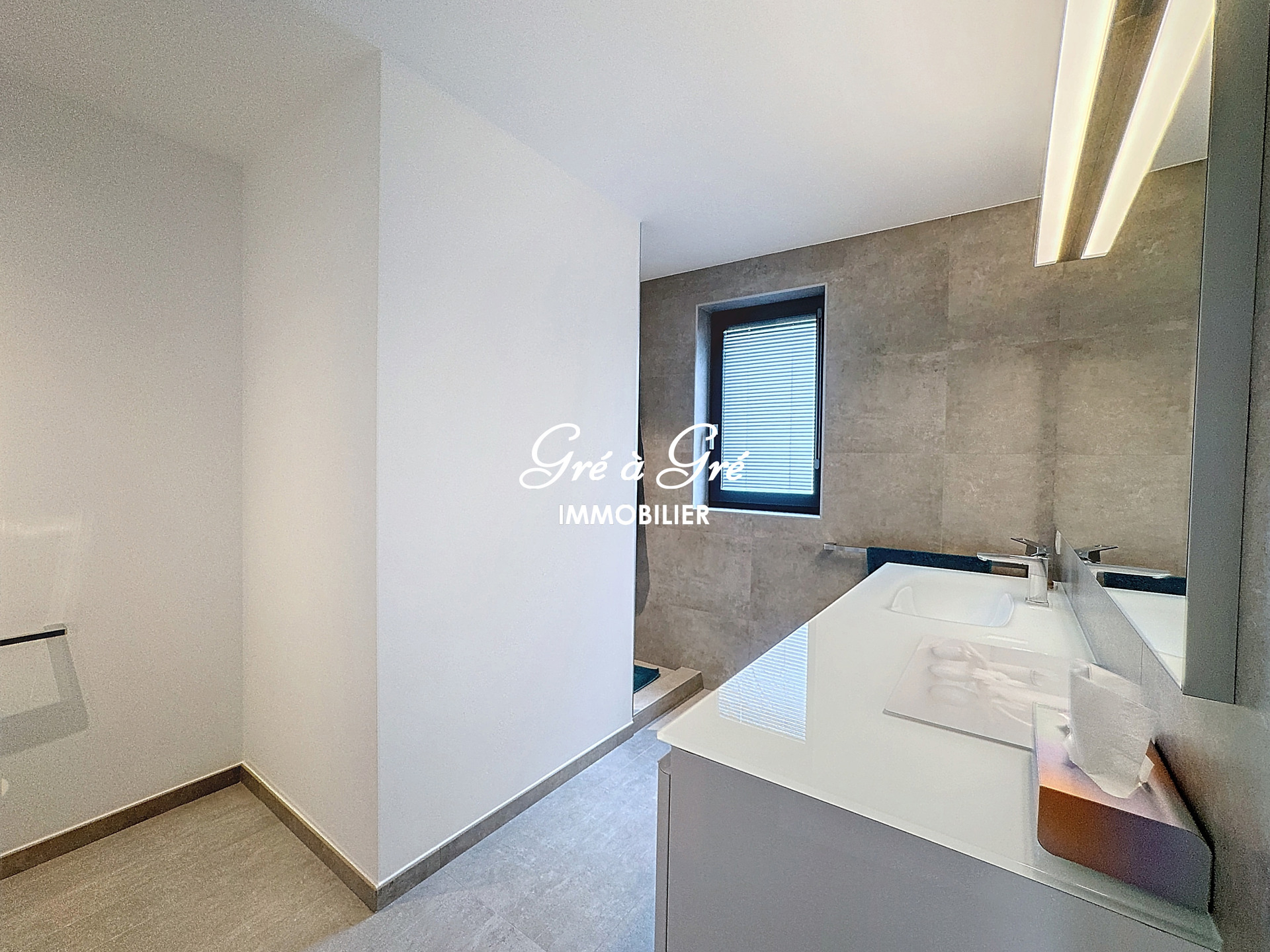 On the 1st floor, a 40m² master suite with 20m² bedroom, 8m² dressing room and bathroom + Italian shower, toilet; 2 bedrooms (16m² and 22 m²), a shower room, toilet, laundry room.