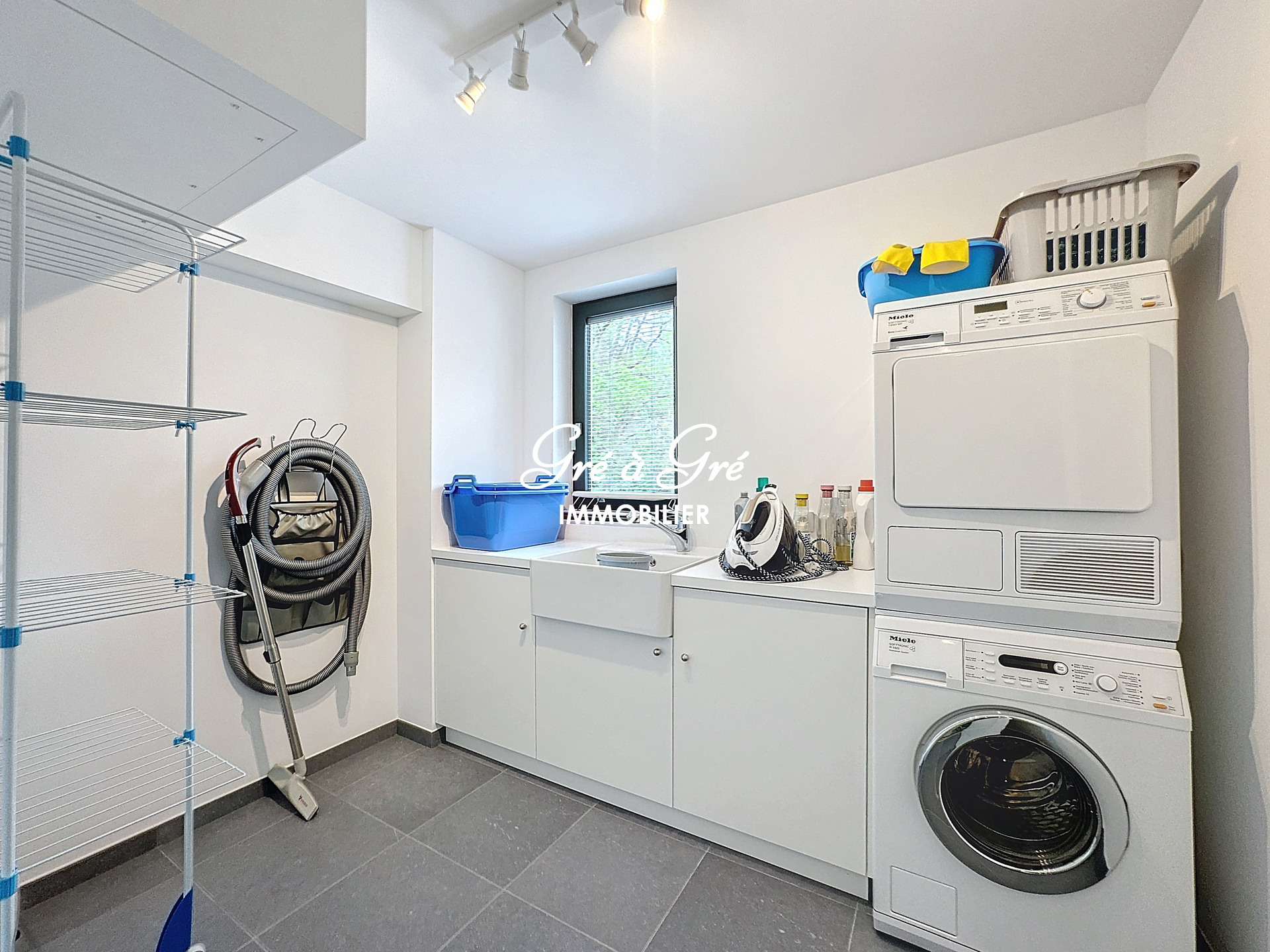 On the ground floor, entrance hall, cloakroom and toilet, living room 40m², dining room 21m², fully equipped kitchen 21m², utility room.