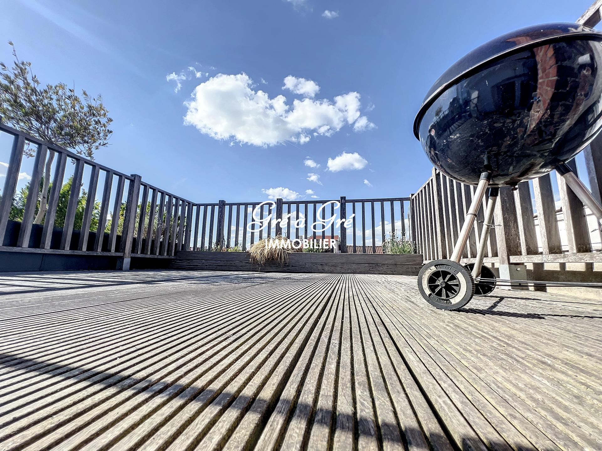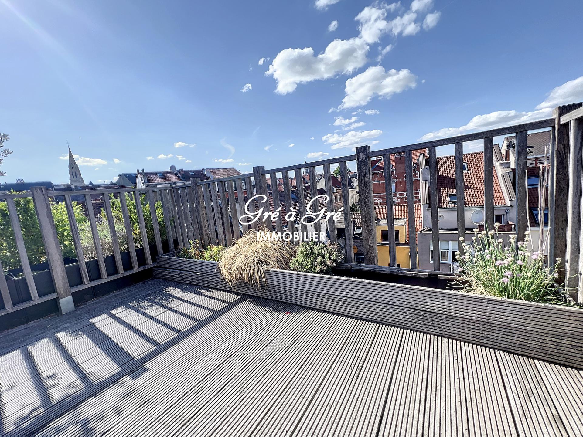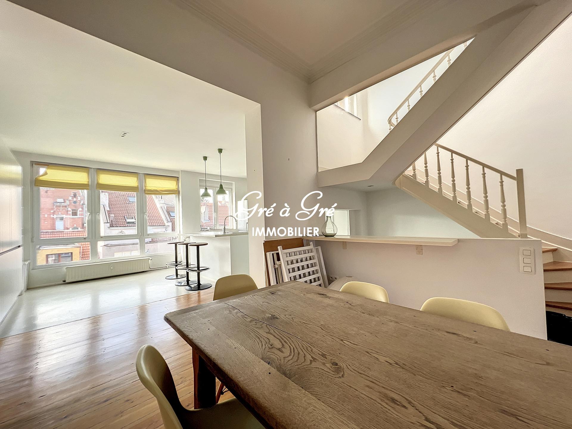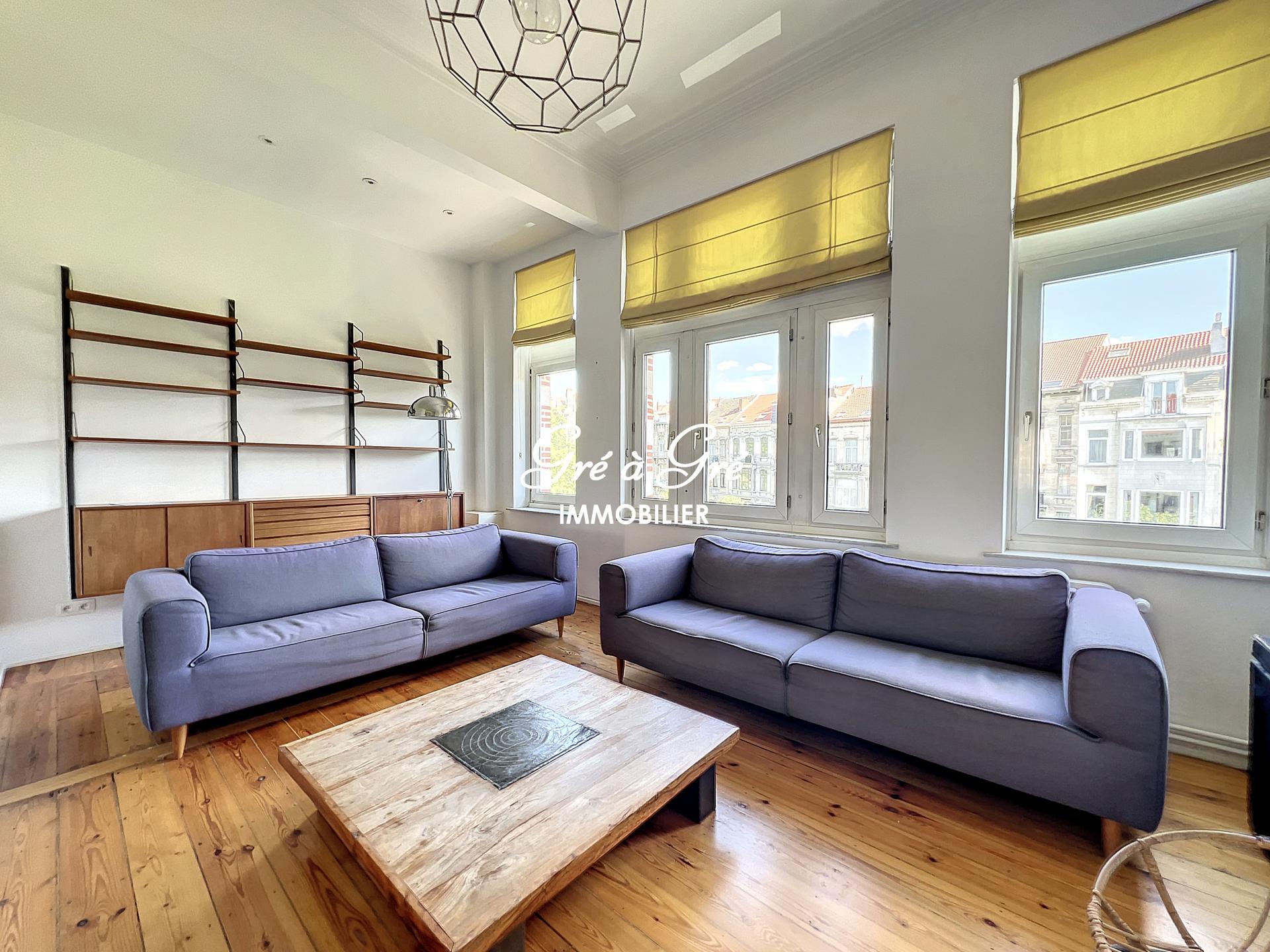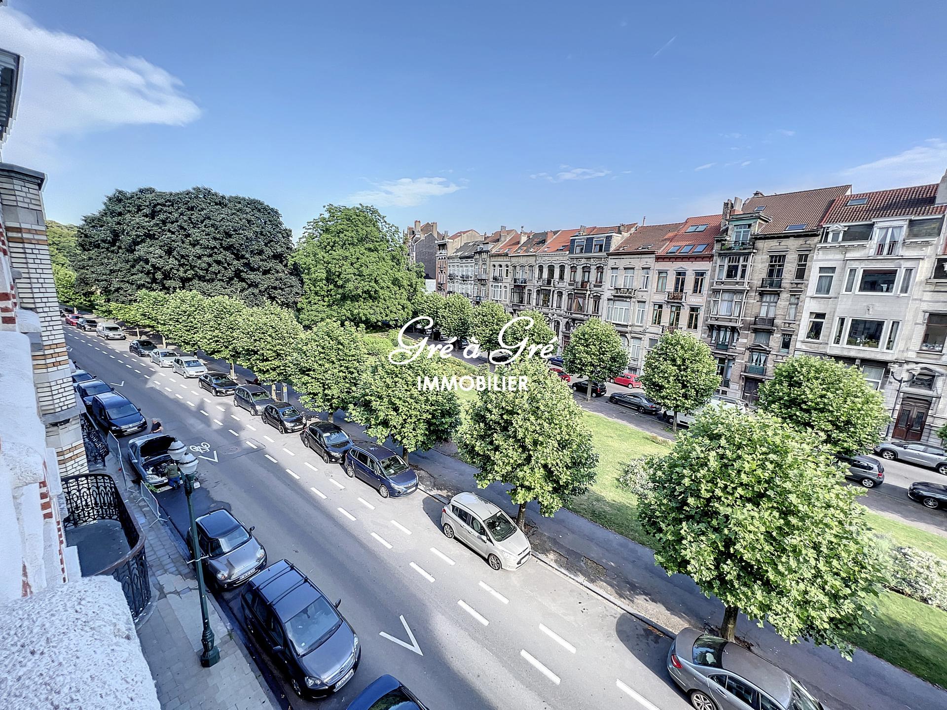 Sur une magnifique avenue arborée à proximité de l'Otan et du parc Josaphat, spacieux et lumineux appartement triplex (possibilité semi meublé: table de salle à manger, chaises, 2 canapés de salon, table basse, meuble bibliothèque suspendu, chaises de bar) avec superbe terrasse (16m² + plantations) orientée ouest et vue dégagée.