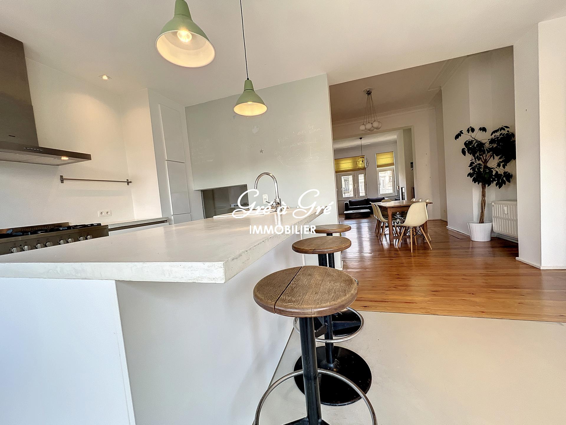 Salon-salle à manger (50m²), grande cuisine hyper-équipée avec îlot central, 3 chambres, belle salle de bains (large baignoire face-to-face, grande douche, wc), buanderie équipée (machine à lessiver et séchoir), toilette invités. Charges: 30 eur (forfait pour les communs) + 150 eur (provision pour chauffage, eau chaude et eau froide). Consommation individuelles gaz et électricité (compteurs séparés). Disponible immédiatement après rafraîchissement peintures! Nombreux commerces et restaurants à proximité. Transports en commun proches. Salon-salle à manger (50m²), grande cuisine hyper-équipée avec îlot central, 3 chambres, belle salle de bains (large baignoire face-to-face, grande douche, wc), buanderie équipée (machine à lessiver et séchoir), toilette invités. Disponible immédiatement après rafraîchissement peintures!