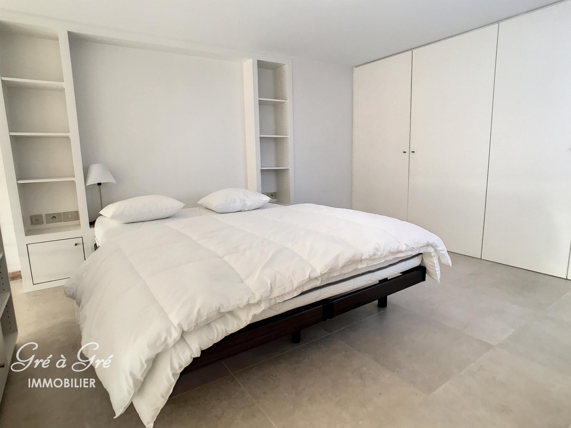 (C5) Appartement duplex meublé et rénové avec services. Le salon dispose d’un canapé, d’une télévision à écran plat pourvue des chaînes internationales, d’une connexion Wi-Fi rapide et d’une salle à manger adjacente à la cuisine entièrement équipée Lave-vaisselle. Une chambre à coucher principale avec lit king size (180*200) est équipée d'armoires encastrées et le lit double très confortable est pourvu de la literie blanche fraîche. Salle de bains attenante qui dispose d’une baignoire avec douche, d’un lavabo avec un grand miroir et d’un WC, deuxième chambre avec 2 lits simples, salle de bains avec lavabo, toilette séparée. Terrasse et balcon. Rideaux occultants, armoires sur mesure, vidéophone, porte blindée. Ascenseur. Buanderie équipée (machines à laver et séchoir) à disposition dans l'immeuble. Concierge dans l'immeuble et nettoyage de l'appartement avec changement de linge de lit hebdomadaire. Possibilité parking au sous-sol de l'immeuble (+125 eur/m). Tram à 4 minutes et métro (Montgomery-ligne Schuman à 7 minutes). LOYER + charges 261 eur/m ALL IN (toutes charges comprises: communs, chauffage, eau, électricité, assurance, wi-fi, 2 tv écran plat, nettoyage 1x/semaine) et tva 6% comprise = TOTAL: 1961 eur/mois. LIBRE!