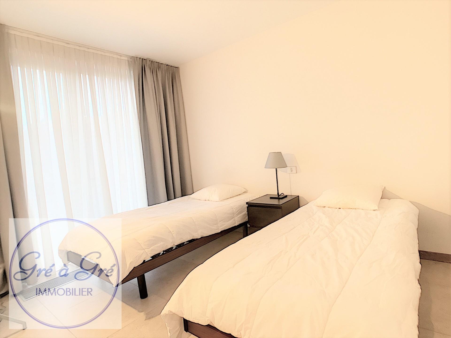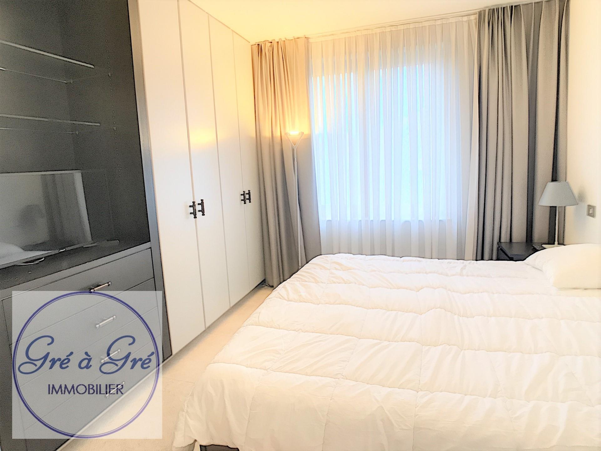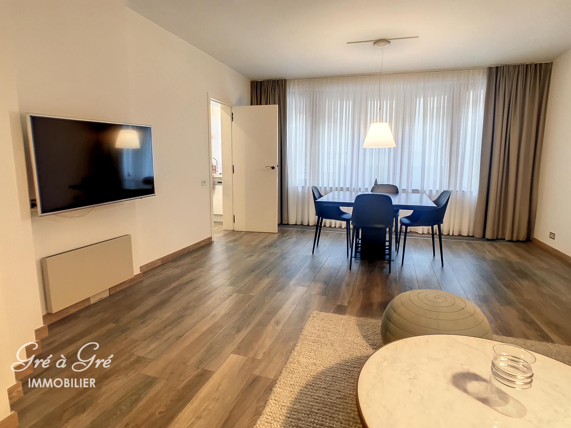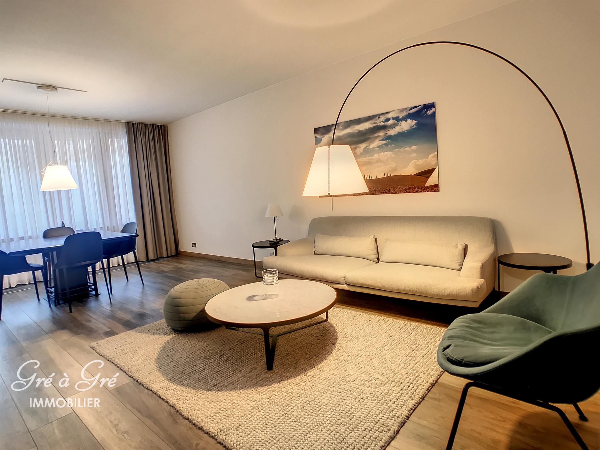 (C1). Appartement meublé et rénové avec service. Le salon dispose d’un canapé, d’une télévision à écran plat pourvue des chaînes internationales, d’une connexion Wi-Fi rapide et d’une salle à manger adjacente à la cuisine entièrement équipée Lave-vaisselle. Une chambre à coucher principale avec lit king size (180*200) est équipée d'armoires encastrées et le lit double très confortable est pourvu de la literie blanche fraîche. Salle de bains attenante qui dispose d’une baignoire avec douche, d’un lavabo avec un grand miroir et d’un WC, deuxième chambre avec 2 lits simples, salle de douches avec lavabo et douche à l'italienne. Toilette séparée. Rideaux occultants, armoires sur mesure, vidéophone, porte blindée. Ascenseur. Buanderie équipée (machines à laver et séchoir) à disposition dans l'immeuble. Concierge dans l'immeuble et nettoyage de l'appartement avec changement de linge de lit hebdomadaire. Possibilité parking au sous-sol de l'immeuble (125 eur/m + tva 6%). Tram à 4 minutes et métro (Montgomery-ligne Schuman à 7 minutes). LOYER + charges ALL IN (toutes charges comprises: communs, chauffage, eau, électricité, assurance, wi-fi, 2 tv écran plat, nettoyage 1x/semaine).