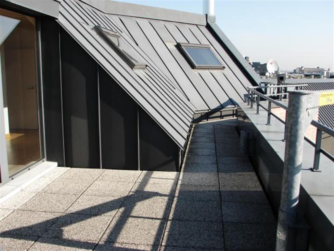 Ixelles, proximité du Parlement, grand studio de +/-90m² comprenant hall d'entrée, spacieux séjour, cuisine américaine équipée (vitrocéramique, four, frigo), coin à dormir, salle de bains (lavabo, baignoire), wc séparé, cave, local vélos au sous-sol et terrasse de +/-12m². Possibilité de parking en sous-sol (+120 Euros/mois). Parquet au sol, vue dégagée et situation calme au dernier étage d'un immeuble de bureaux. Vidéophone, double vitrage. PEB en cours. Charges : 100 Euros/mois (communs). Libre 1/03/14