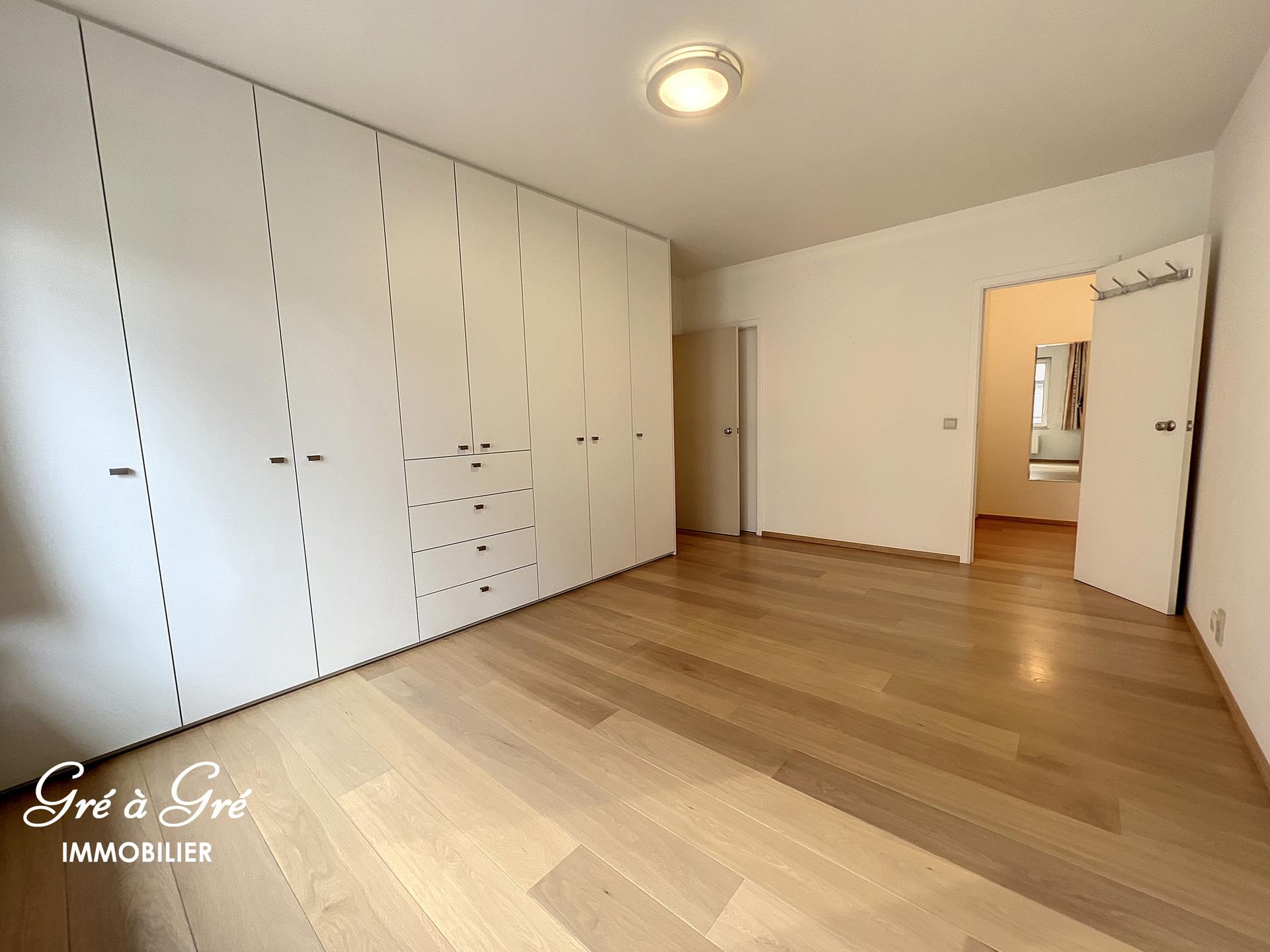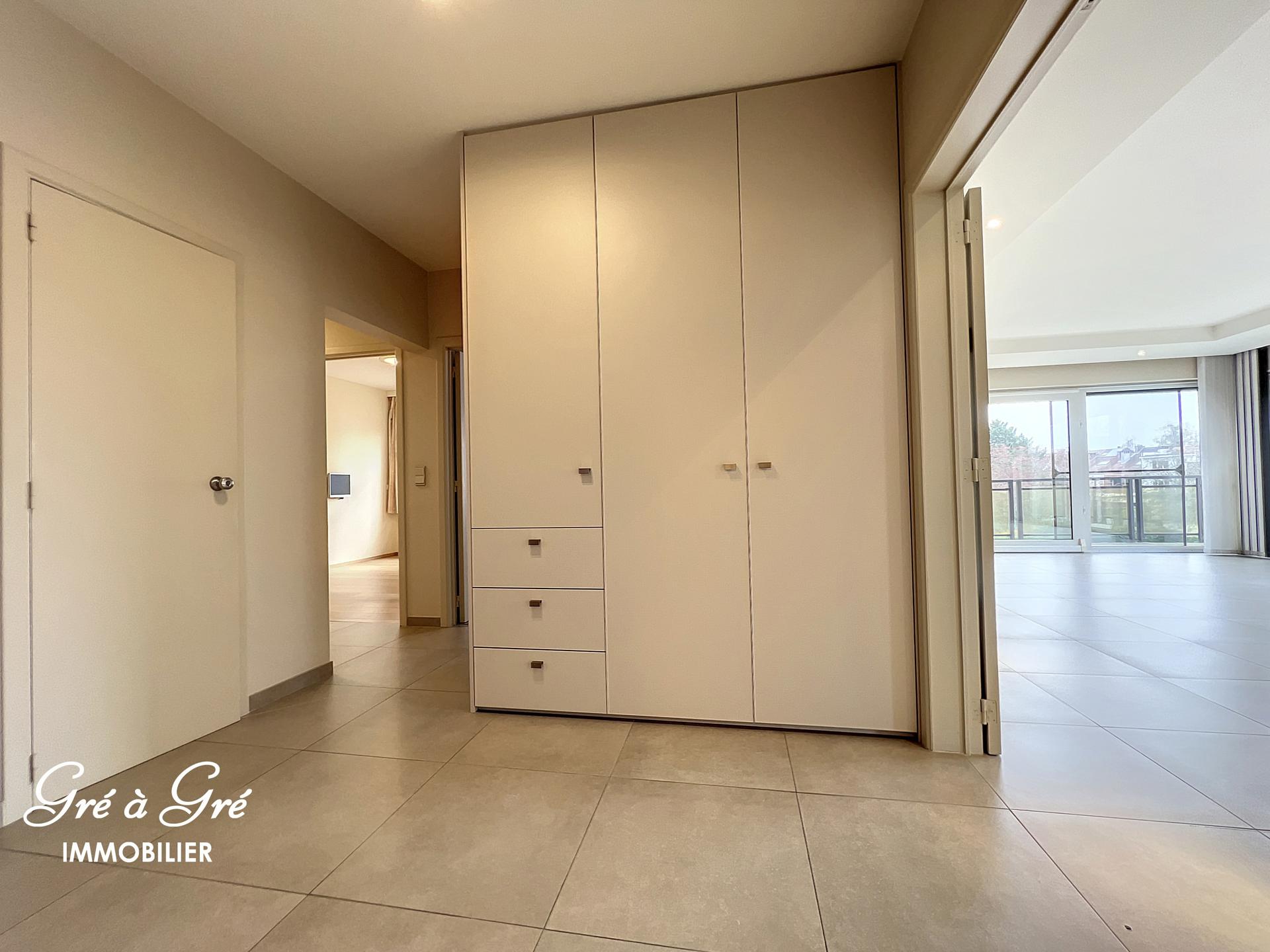 Stockel proximité, UCL, axes autoroutiers, transports et commerces. Vaste et lumineux appartement au 2° étage arrière d'un petit immeuble avec ascenseur. Grand hall d'entrée avec porte blindée, placards vestiaires, toilette invités. Grand séjour avec accès à la terrasse et vue dégagée, cuisine hyper équipée avec table à déjeuner, buanderie équipée (machine à laver et séchoirs + nombreux rangelments. 3 belles chambres avec placards, dressing, 2 salles de douches et wc. Cave individuelle et box de garage avec porte électrique. PEB B. Disponible immédiatement