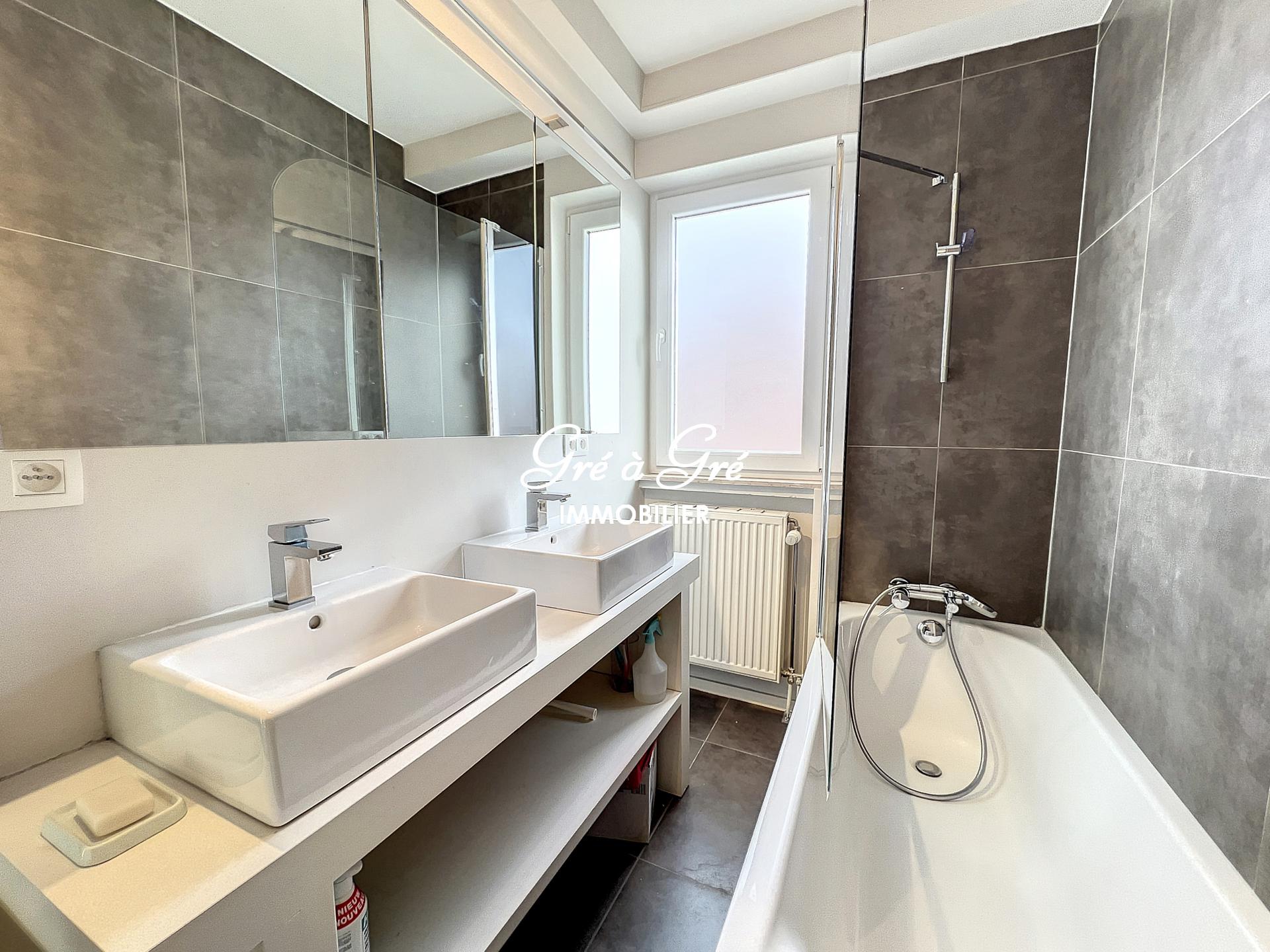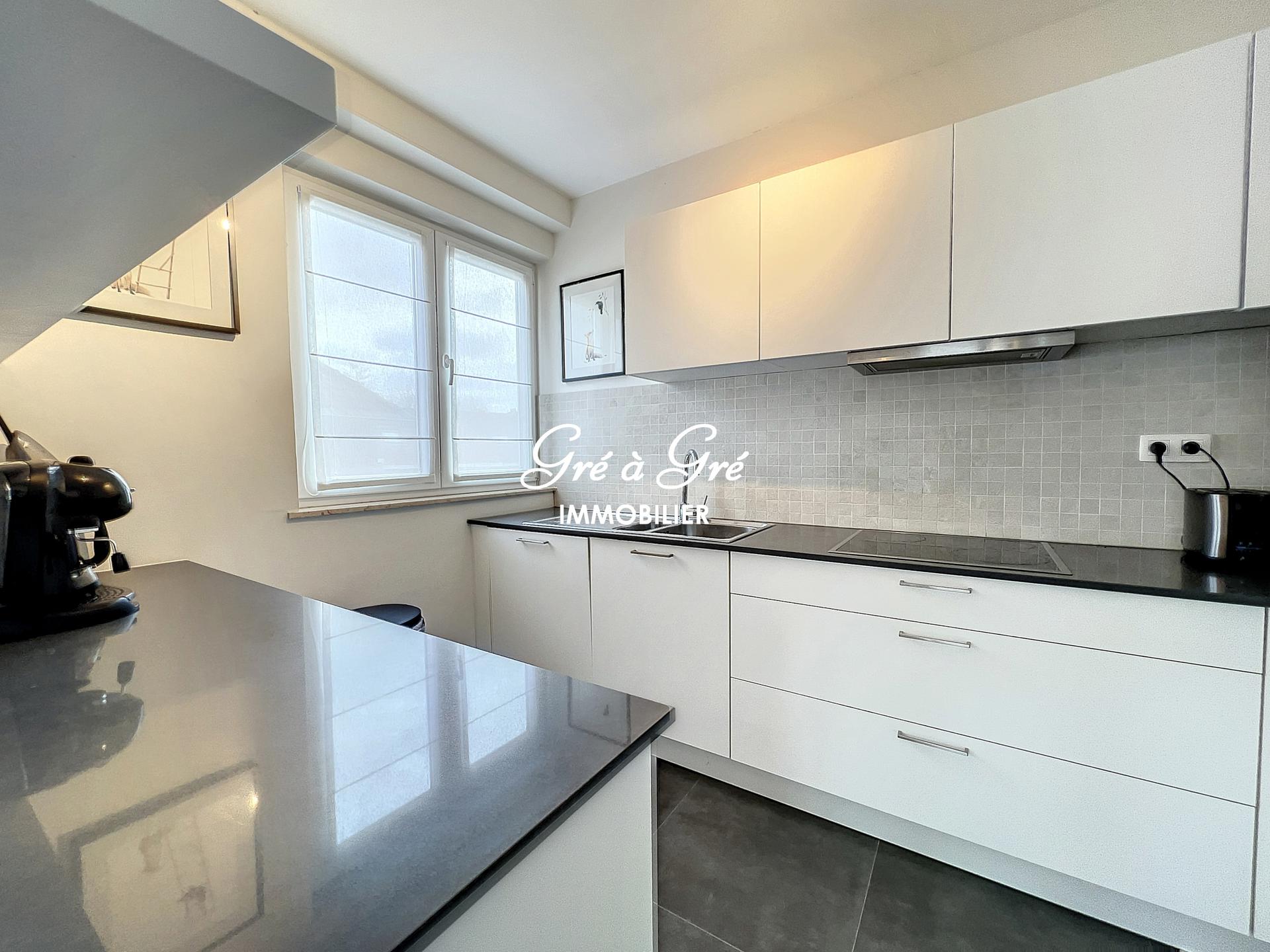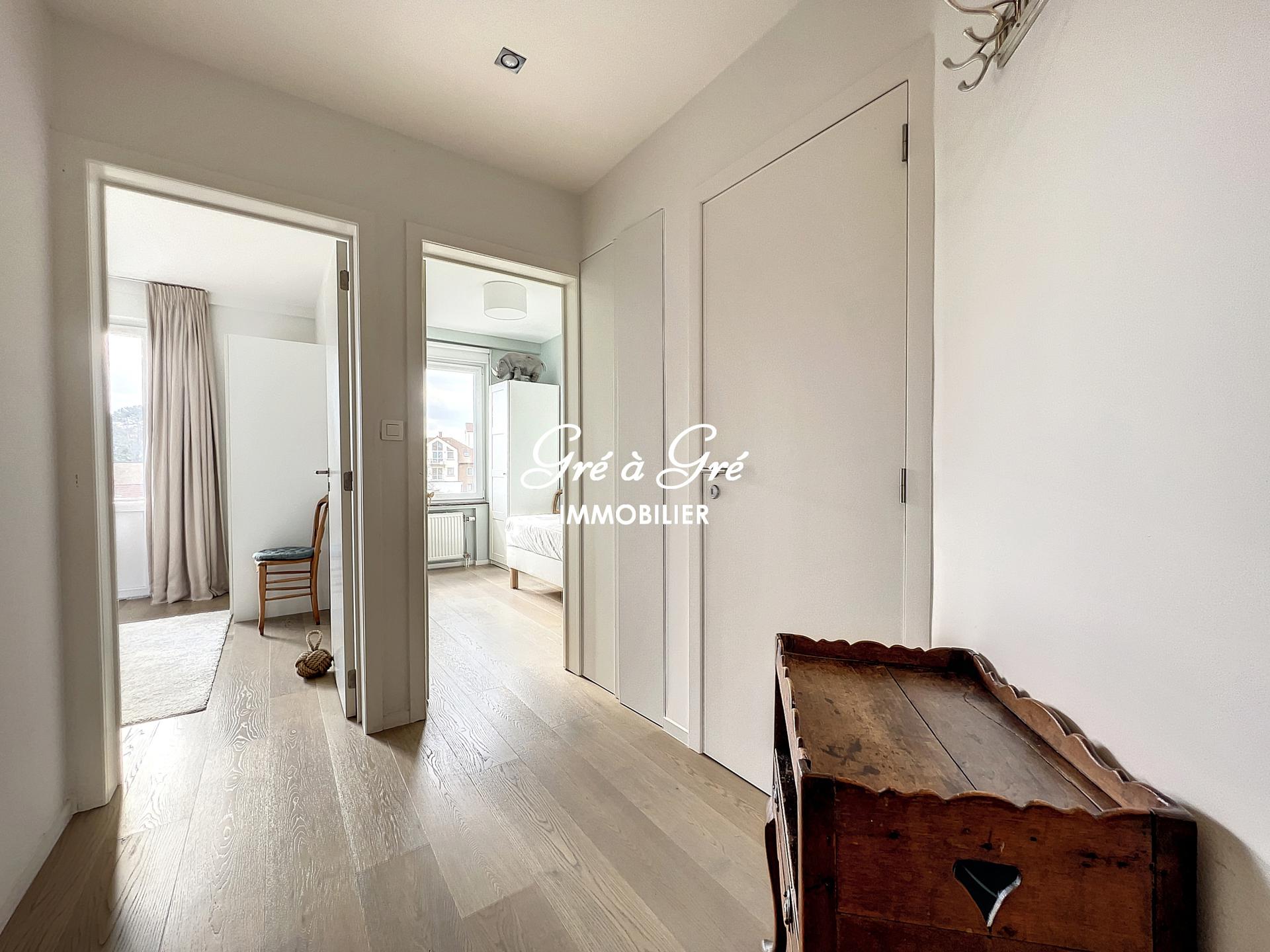 Au premier étage d'un petit immeuble sans ascenseur ni charges communes, ravissant appartement comprenant un hall d'entrée avec vestaire et toilette, grand séjour, cuisine hyper-équipée (fours, frigo, congélateur, lave vaisselle), 2 chambres/bureau, salle de bains avec machine à lessiver, terrasse orientée sud et jolie vue dégagée.