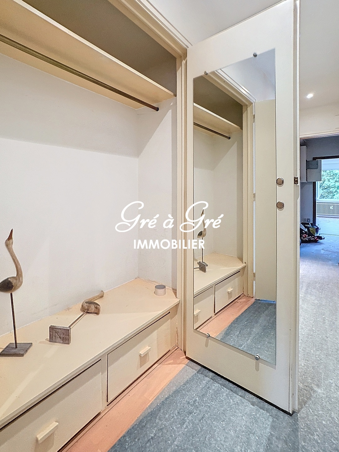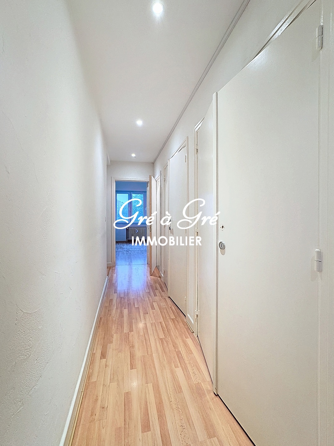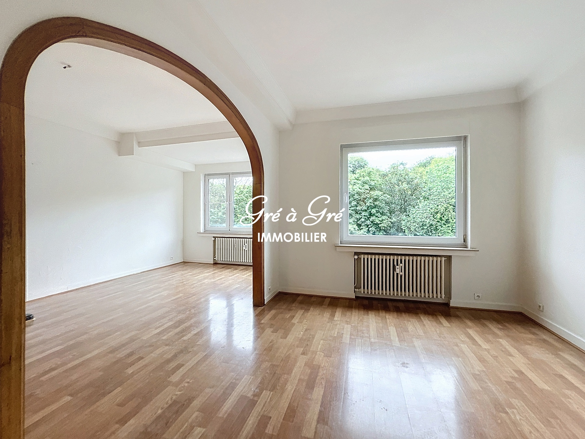 Hall d'entrée avec porte blindée, séjour avec vue sur le bois, cuisine hyper équipée (hotte, taques électriques, frigo, congélateur séparé, lfour et lave-vaisselle neuf) avec balcon (1,5m²), toilette, hall de nuit avec placards, 2 chambres (15m² et 11m²) avec vue arrière sur les jardins, salle de bain avec wc, salle de douches, buanderie. Cave. Charges: provision communs et chauffage. 1ère occupation après rénovation. Bail long terme souhaité. Libre.