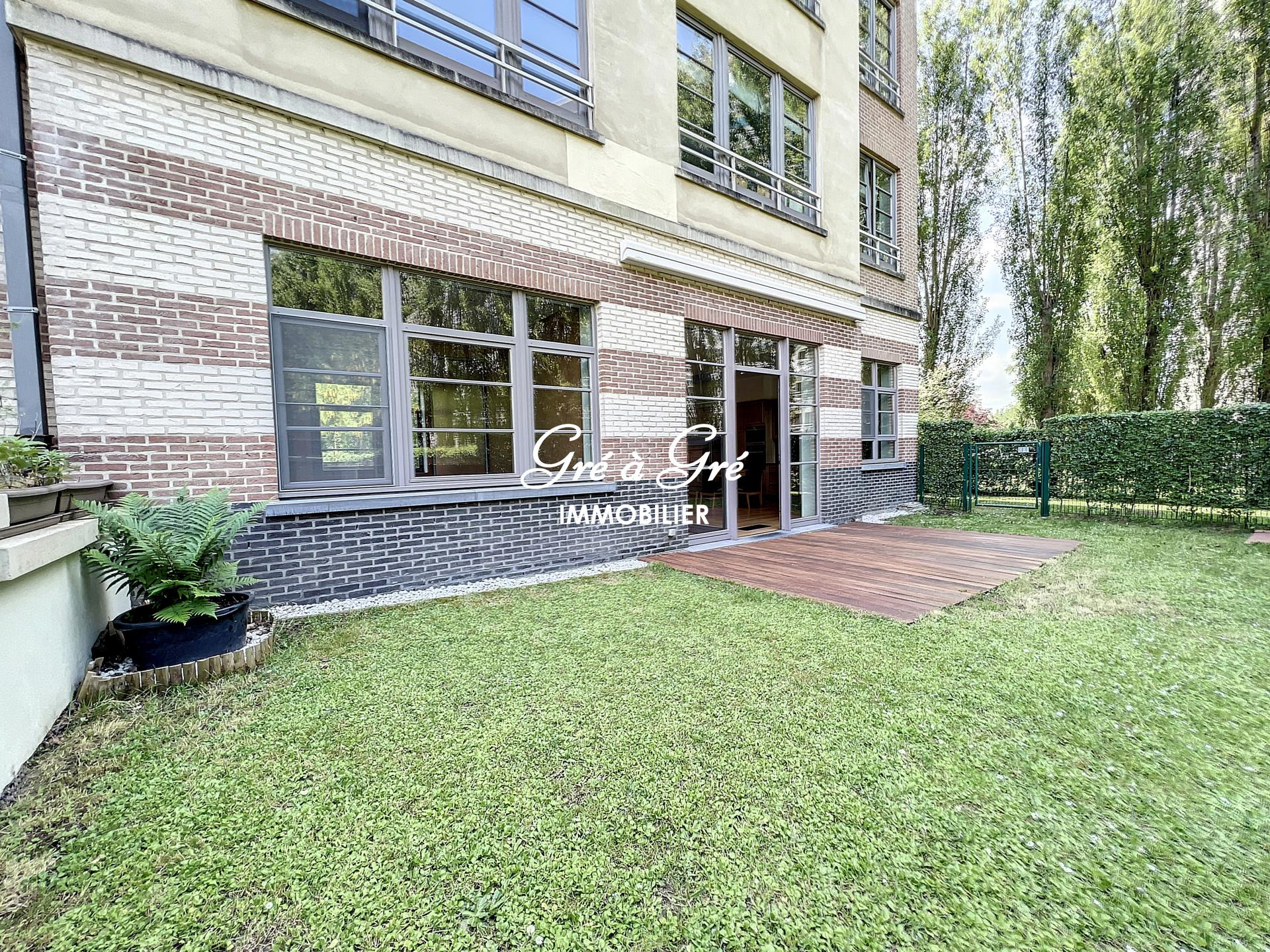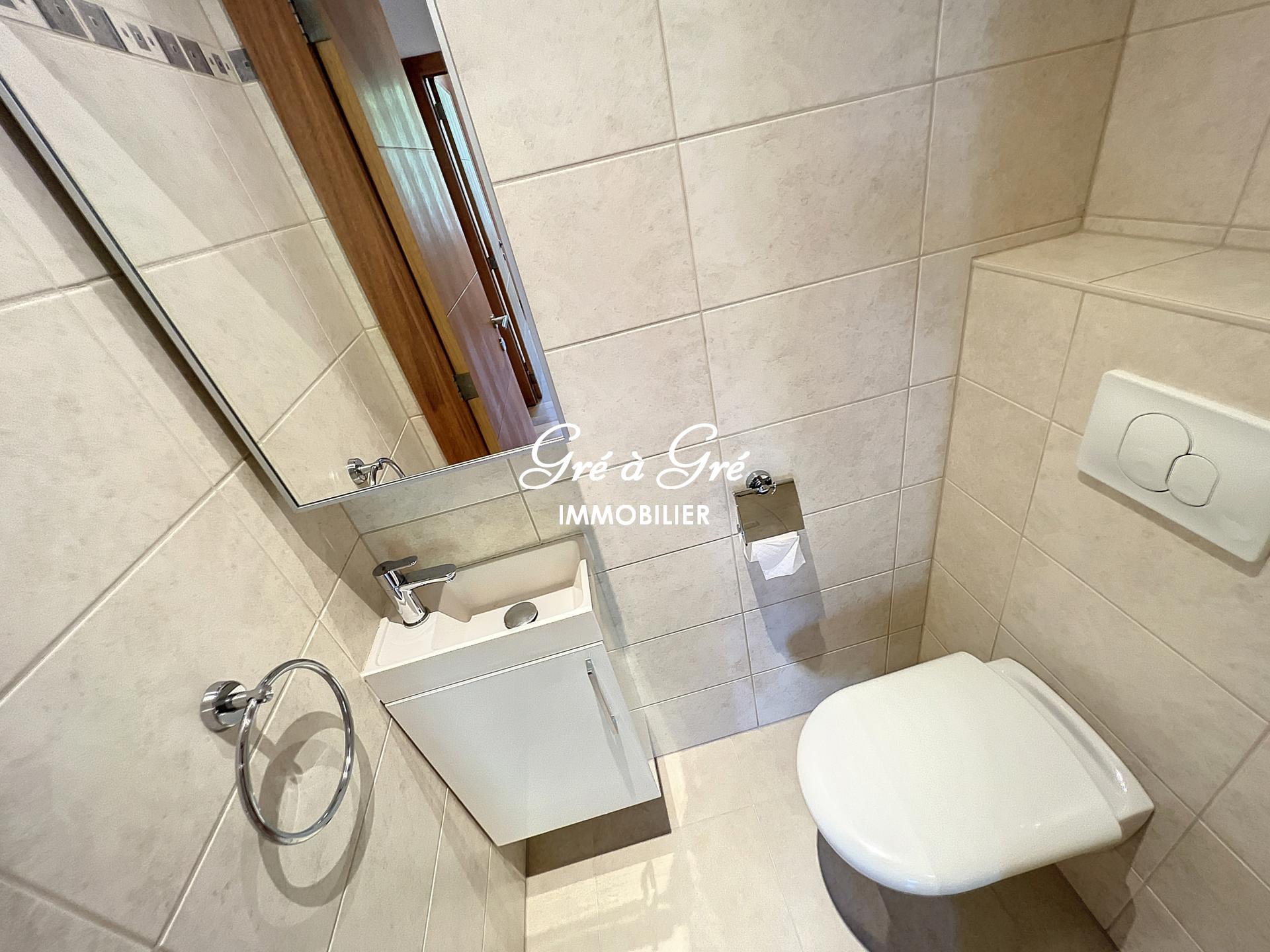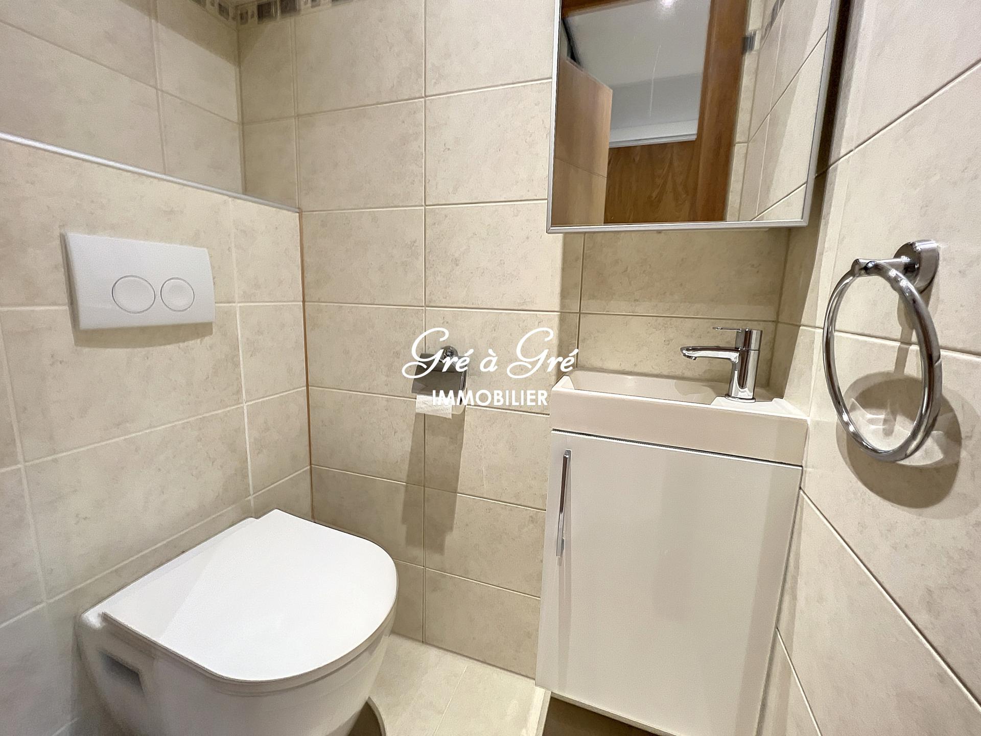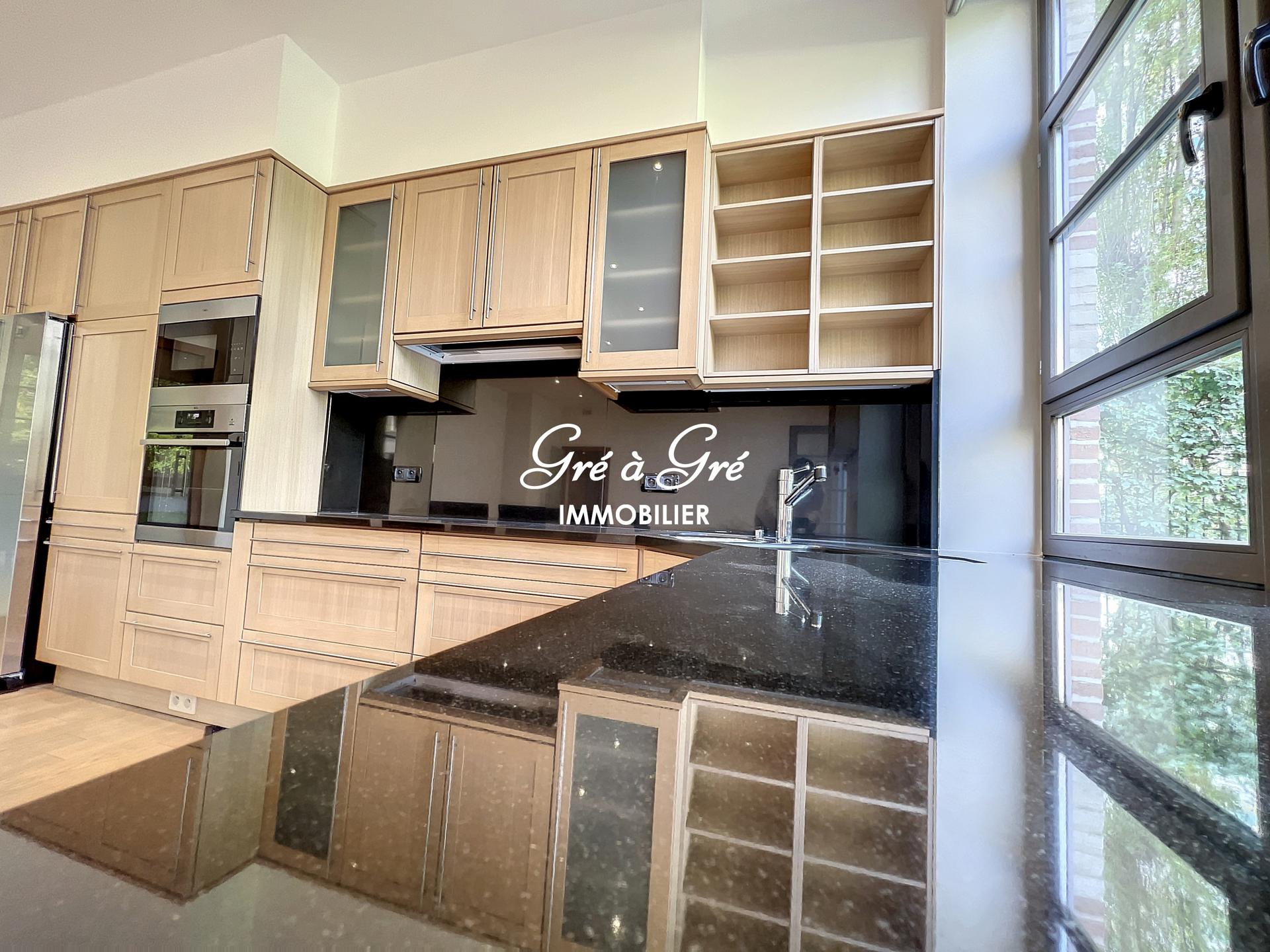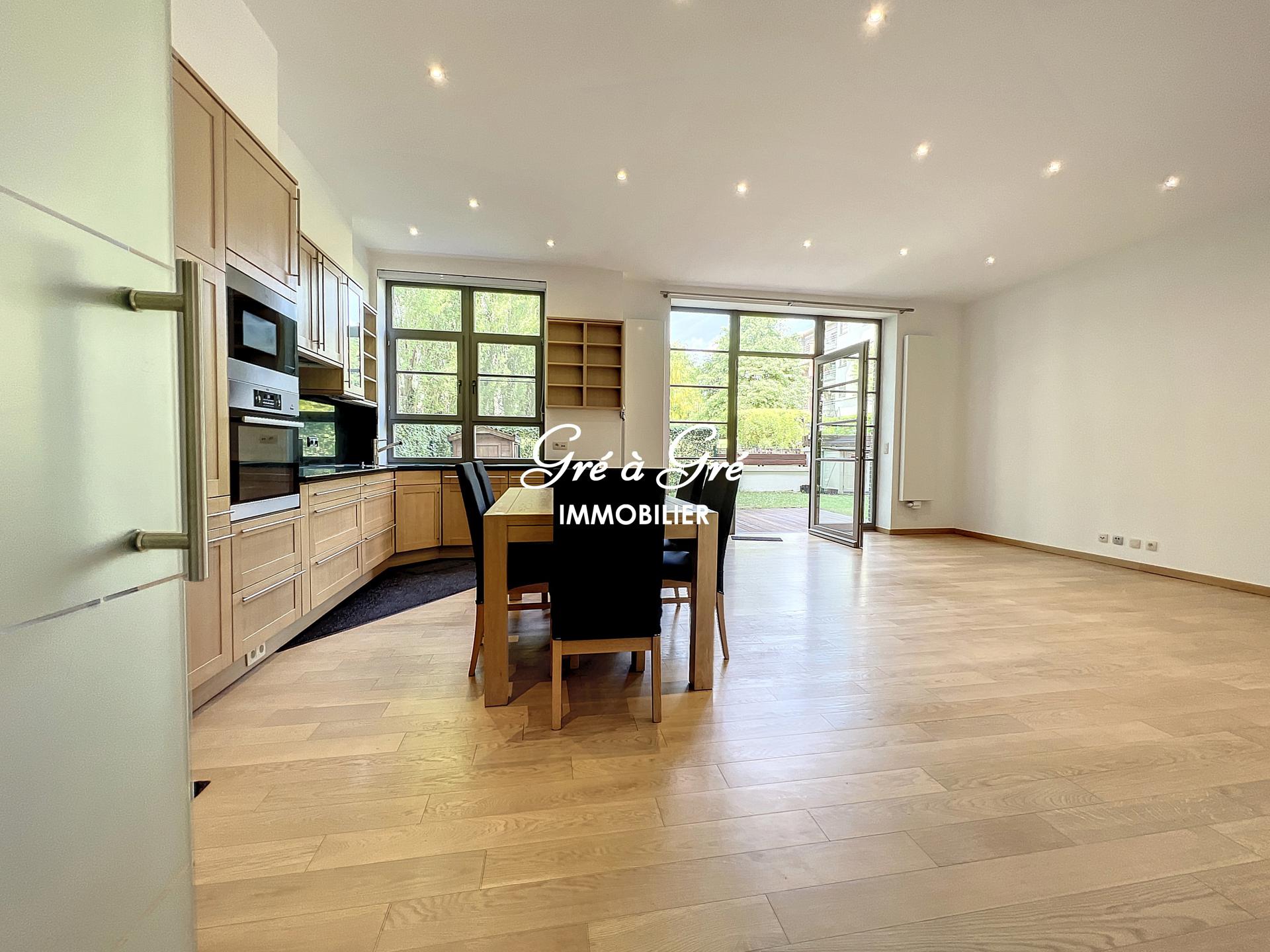 Hall d'entrée (porte blindée, toilette, vestiaire), spacieux séjour avec cuisine américaine hyper équipée (plan de travail en granit, une table et 6 chaises, lave-vaisselle, four, combiné micro-ondes, frigo américain avec distributeur eau + glace, taque vitrocéramique, hotte.) Large porte fenêtre donnant accès à une belle terrasse avec tente solaire (télécommande + leds intégrés) et jardin privatif.