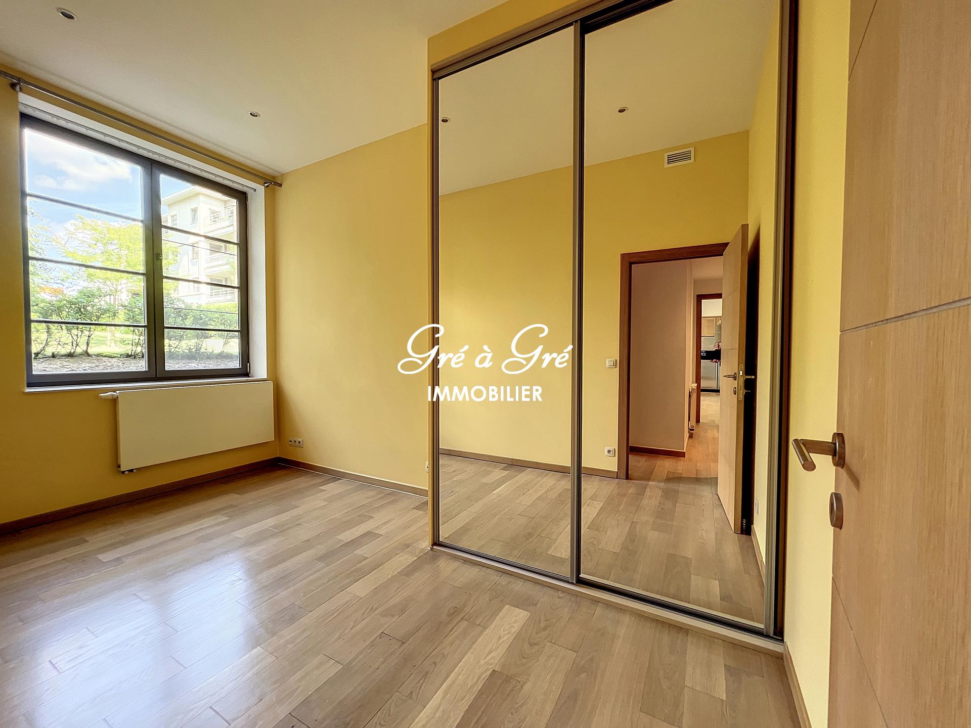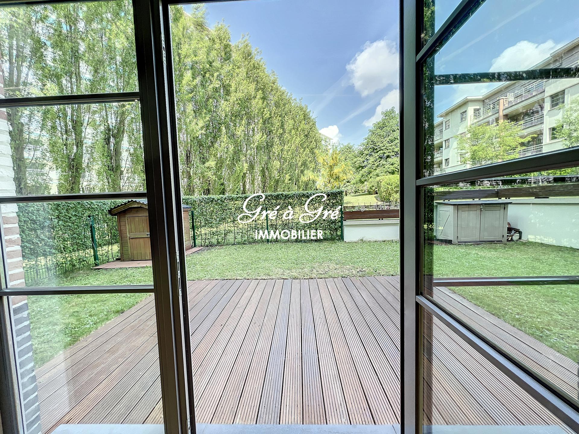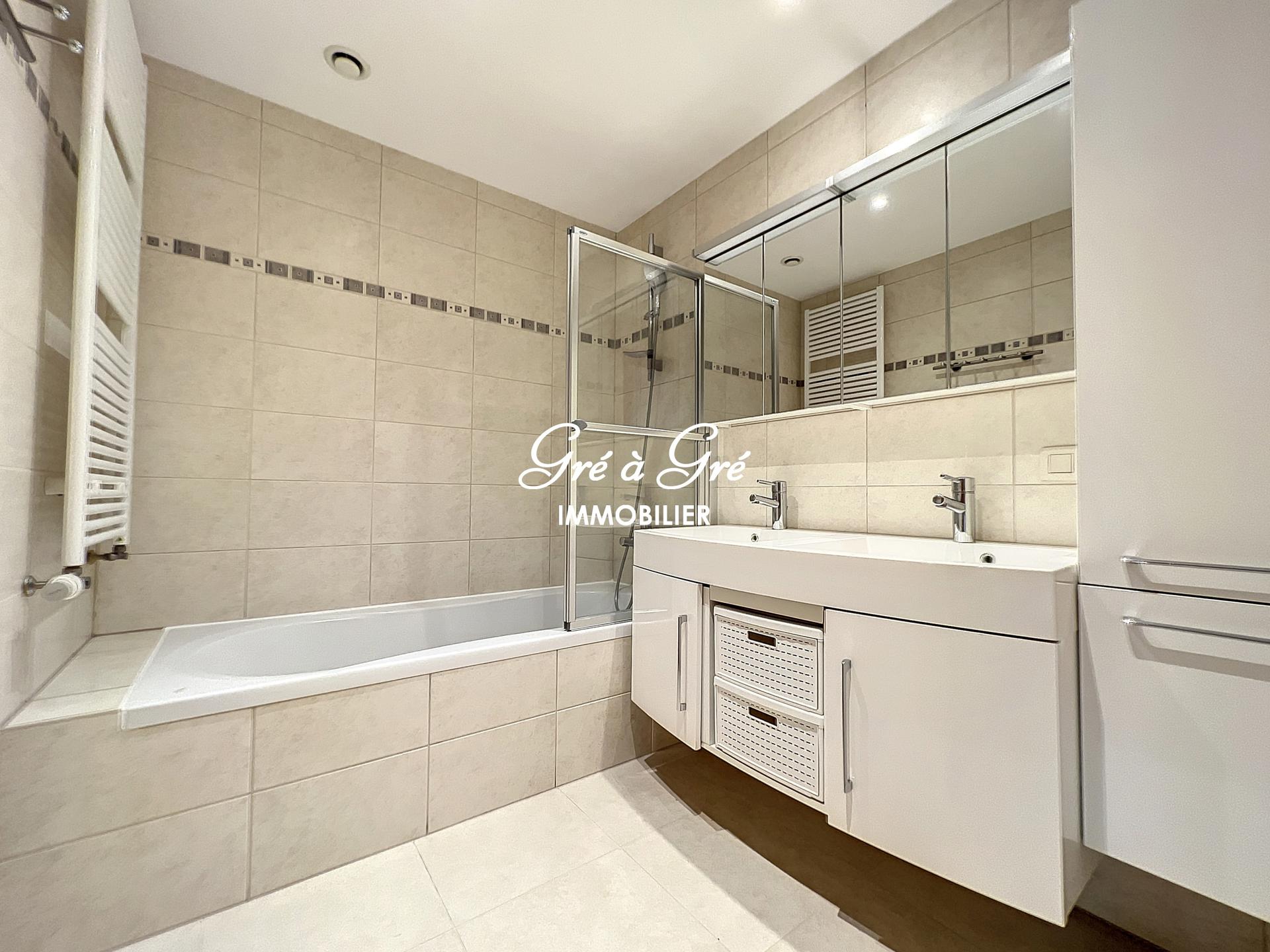 Hall de nuit avec placards intégrés, salle de bain-douche, toilette séparée et 2 belles chambres ayant vue sur le jardin. Cave sécurisée et emplacement de parking au sous-sol compris. Local poussettes, local vélos.