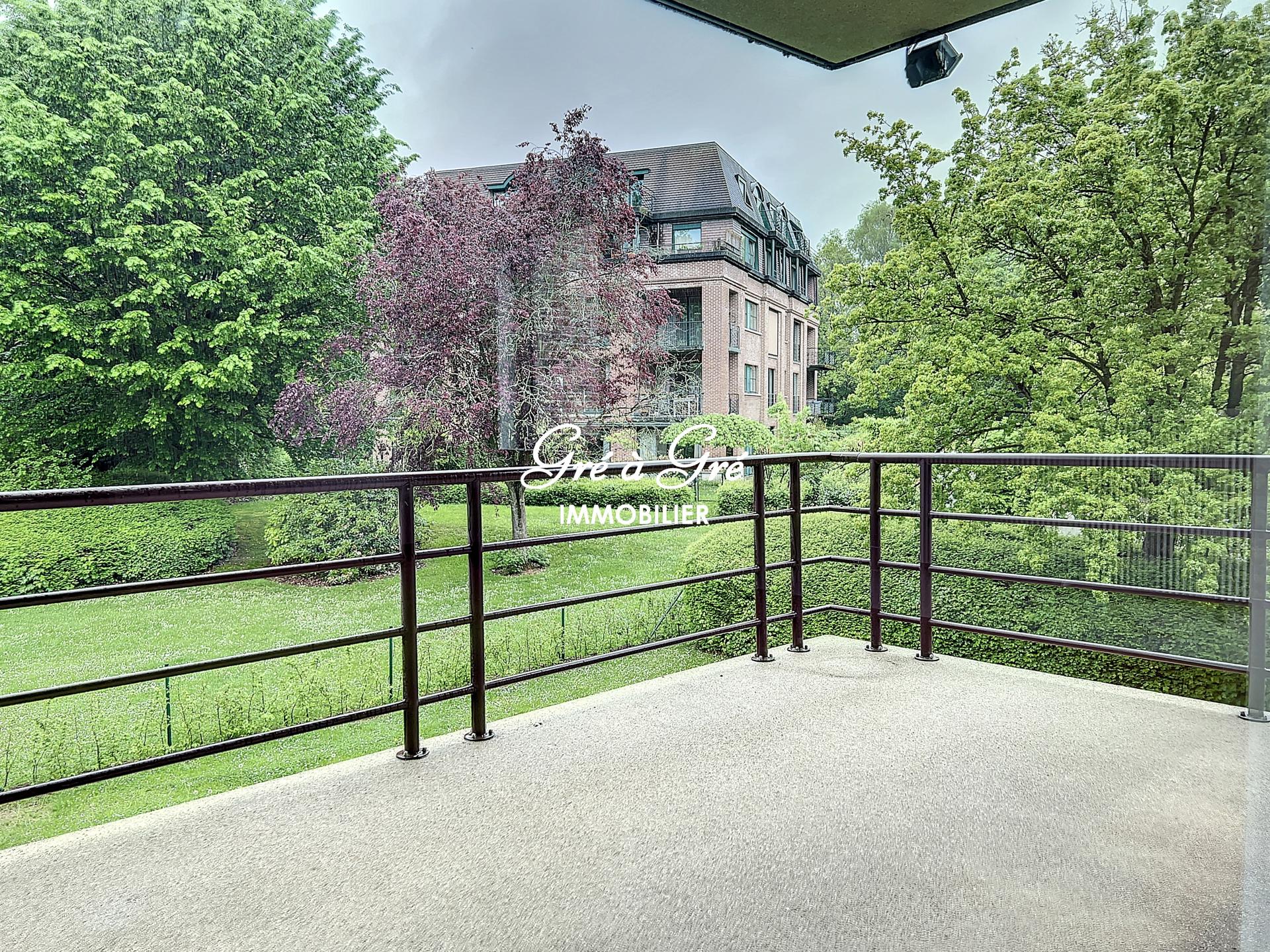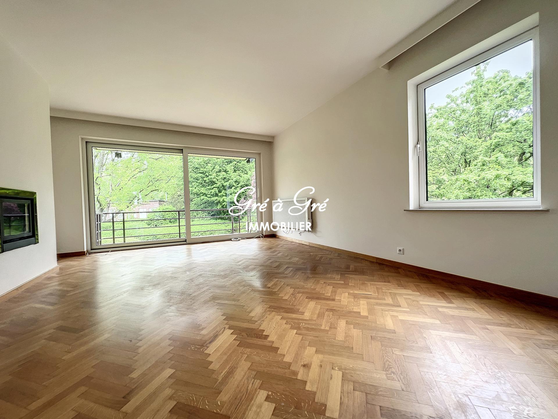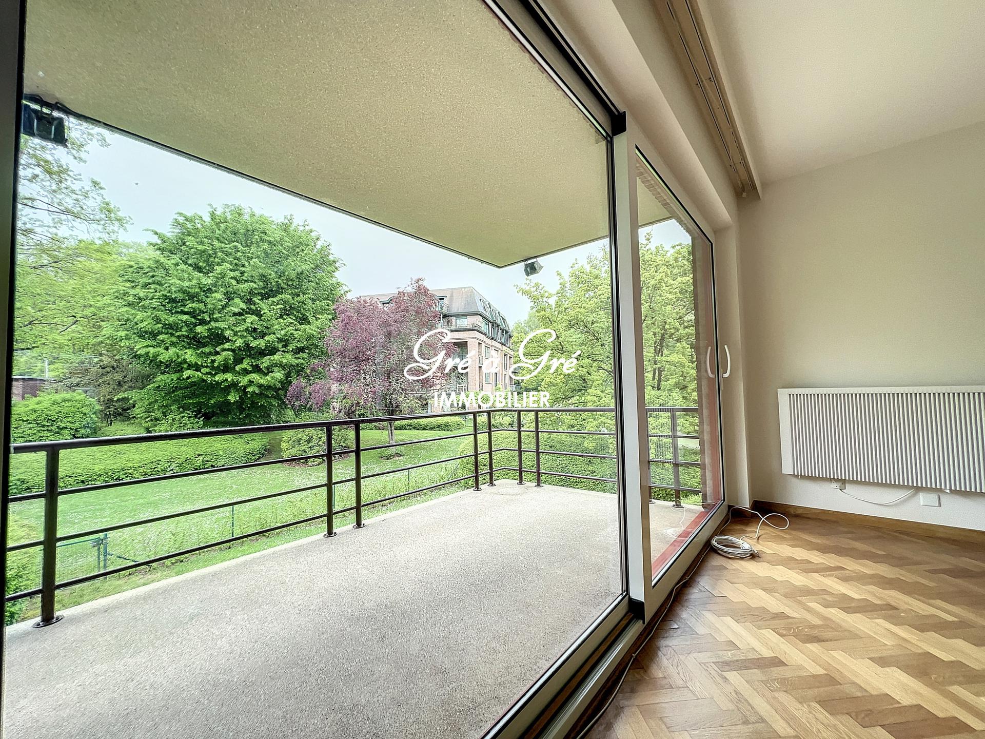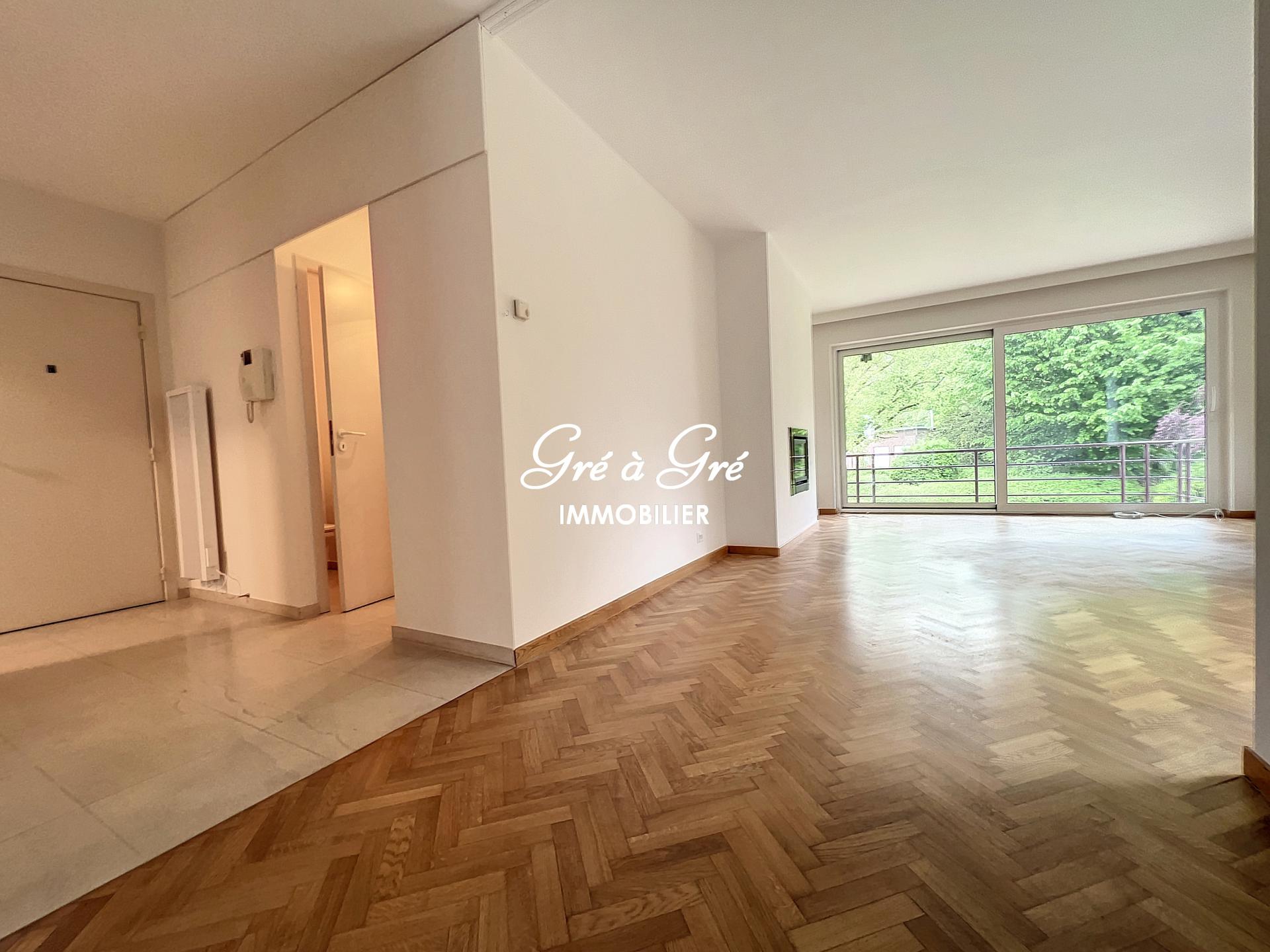 Au premier étage d'un petit immeuble avec ascenseur, situé au calme en pleine nature et cependant à proximité immédiate des commerces et transports, grand et lumineux appartement rénové bénéficiant de 2 belles terrasses et d'un box de garage!