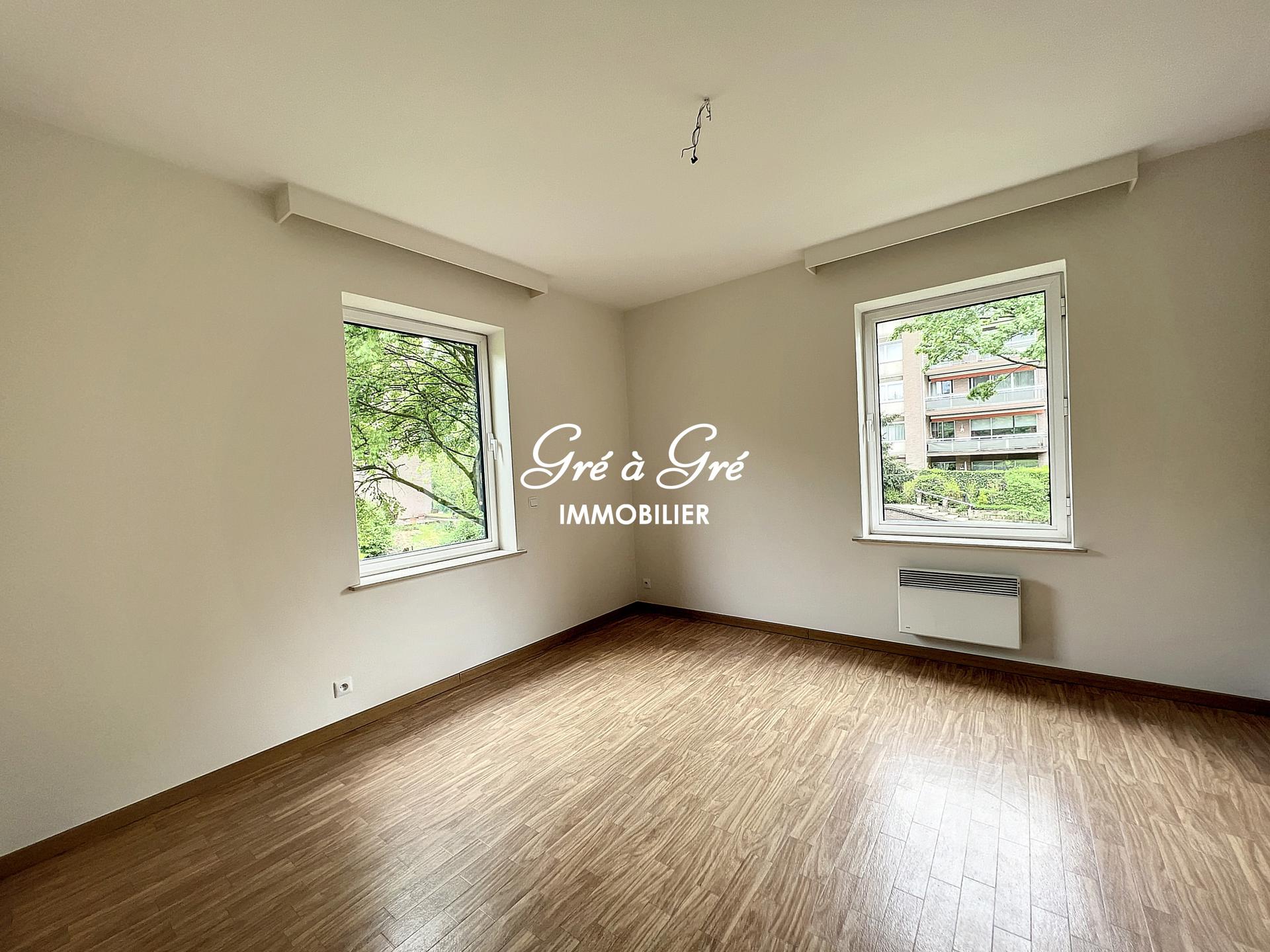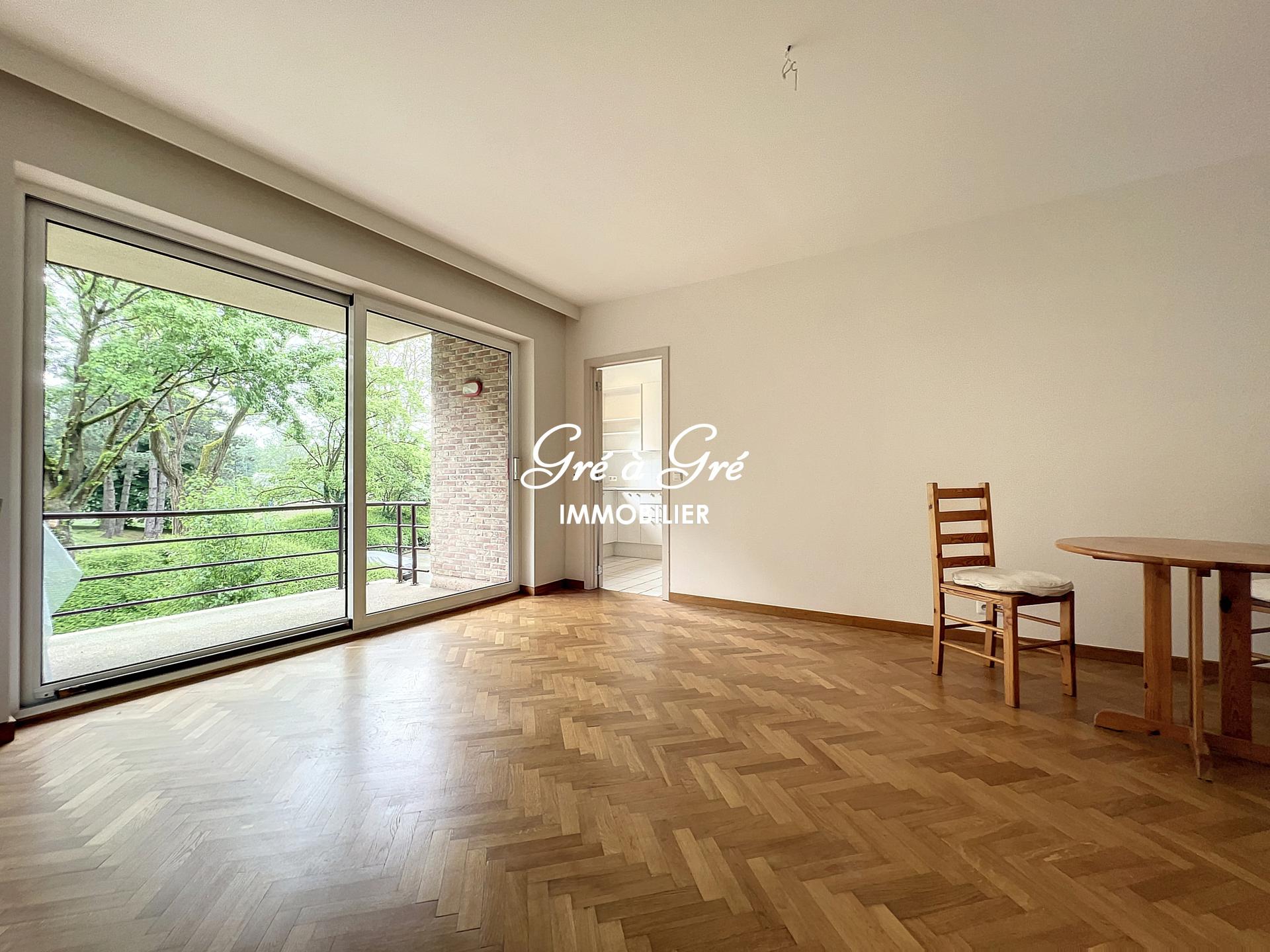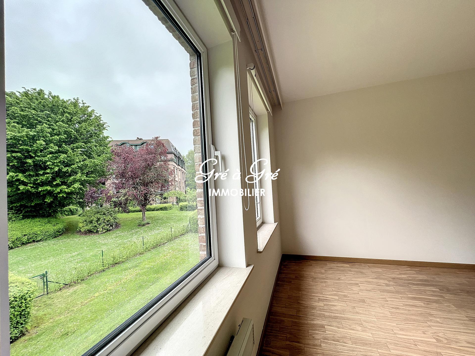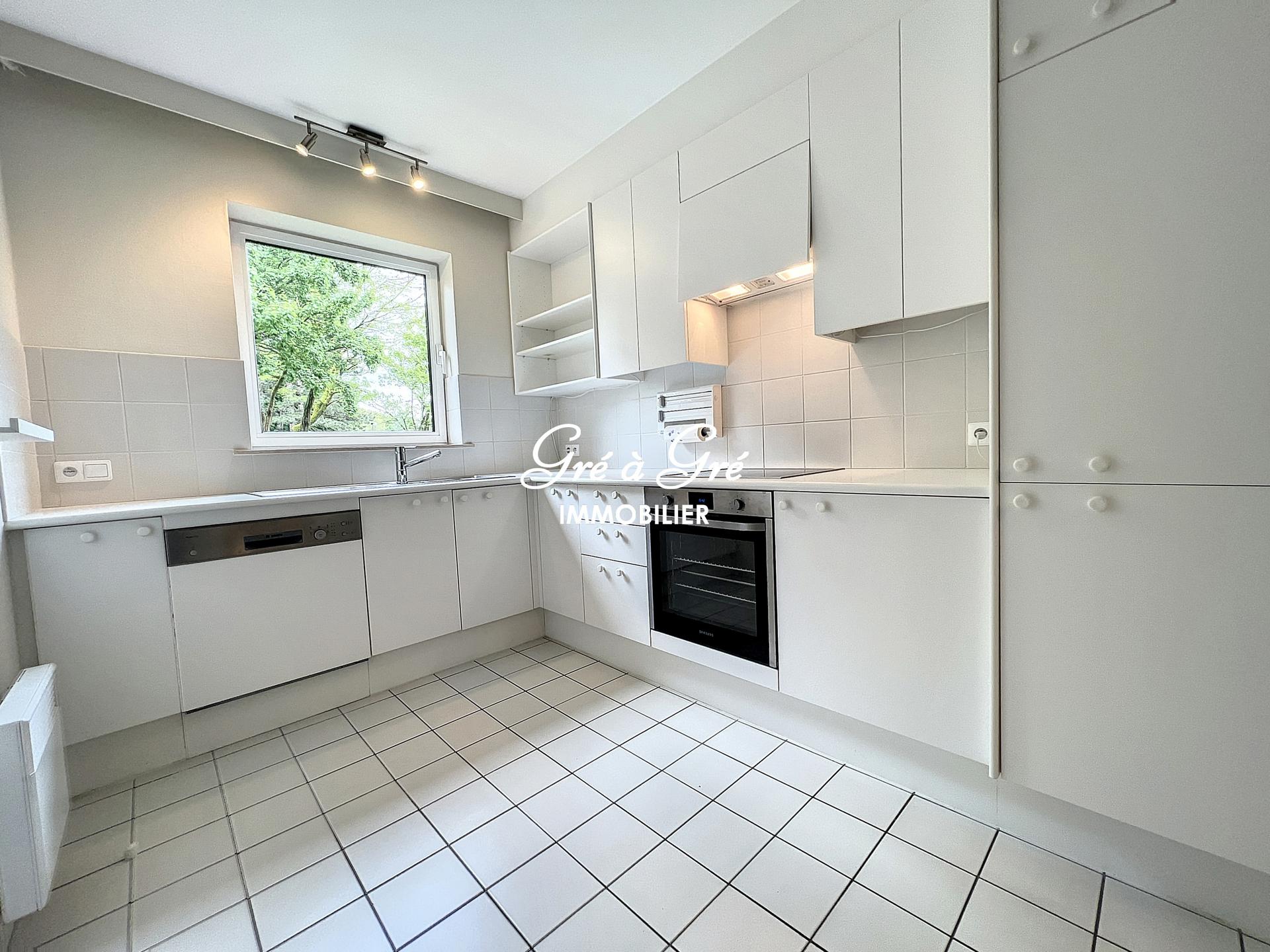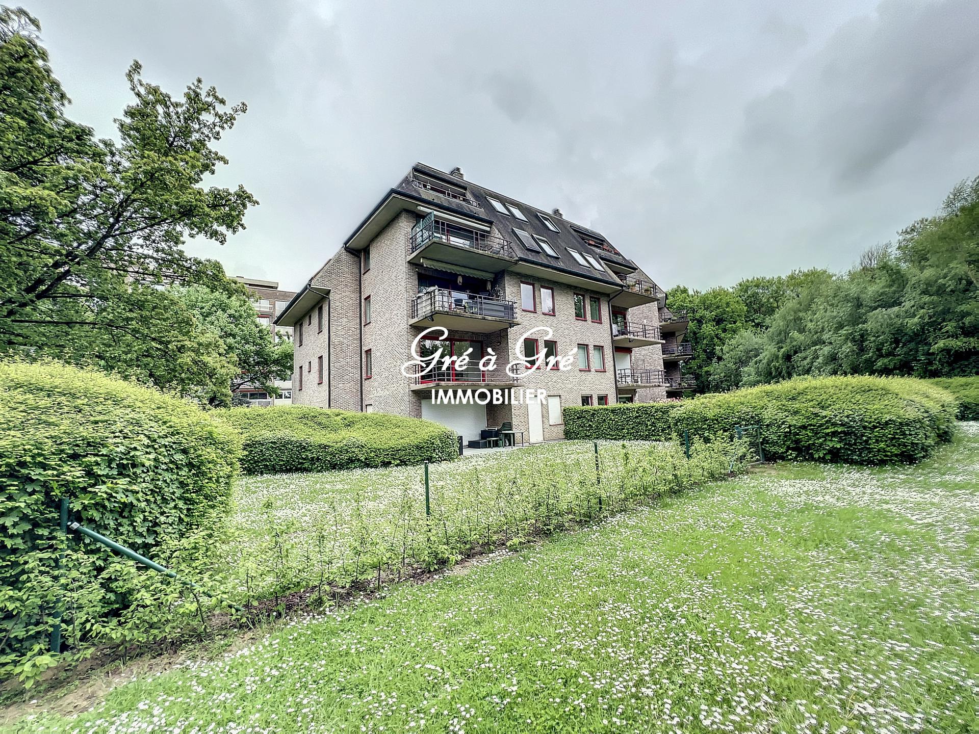 Au premier étage d'un petit immeuble avec ascenseur, situé au calme en pleine nature et cependant à proximité immédiate des commerces et transports, grand et lumineux appartement rénové bénéficiant de 2 belles terrasses et d'un box de garage!