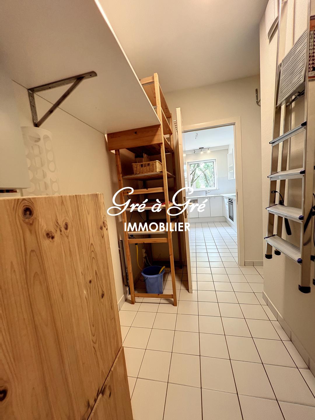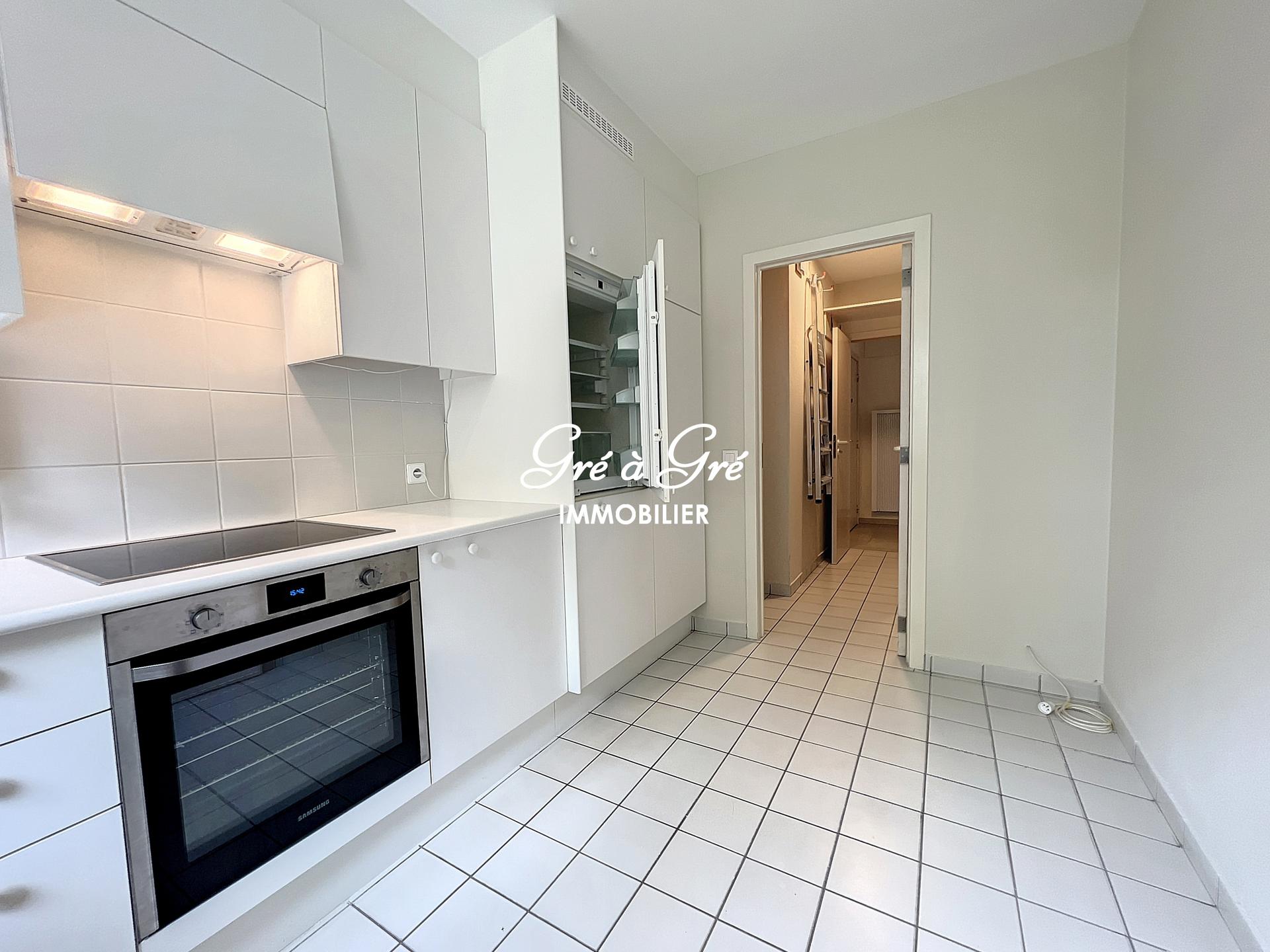 Hall d'entrée avec vidéophone, porte sécurisée, toilette et vestiaire, grand séjour (50m²-parquet)/salon (avec feu ouvert K7) et salle à manger, cuisine super-équipée, suite parentale (20m²) avec dressing, salle de bains et wc, 2 autres chambres (13m² et 11m2), une salle de bain avec wc, arrière-cuisine/buanderie. Cave n°13 (4m2). Local poubelles. Box de garage compris (l=3m/L=7m) et fermé avec crochets pour vélos.