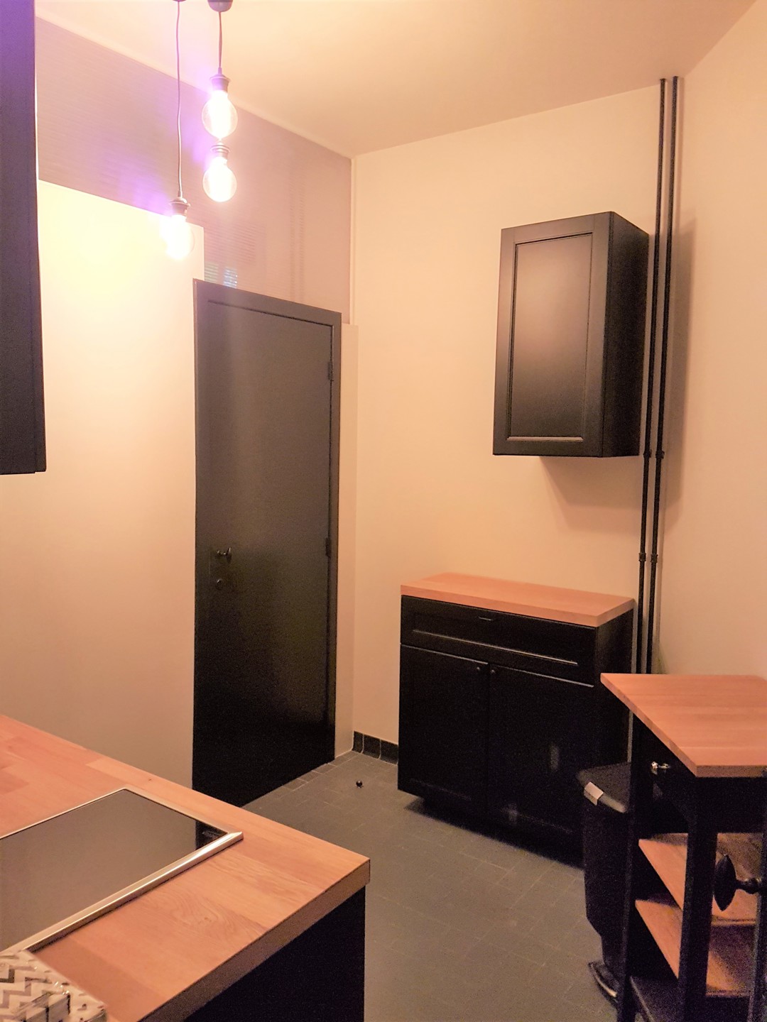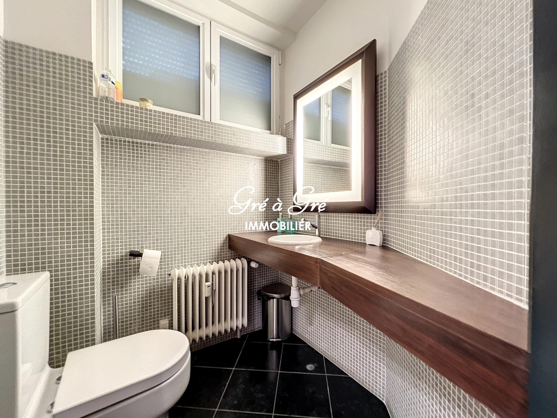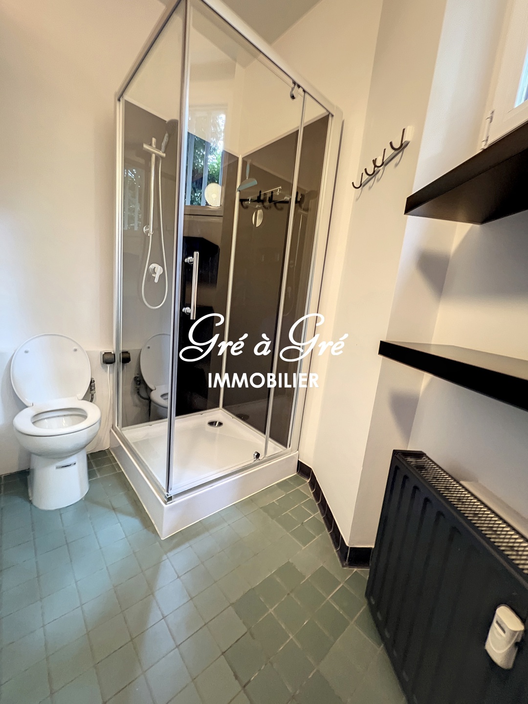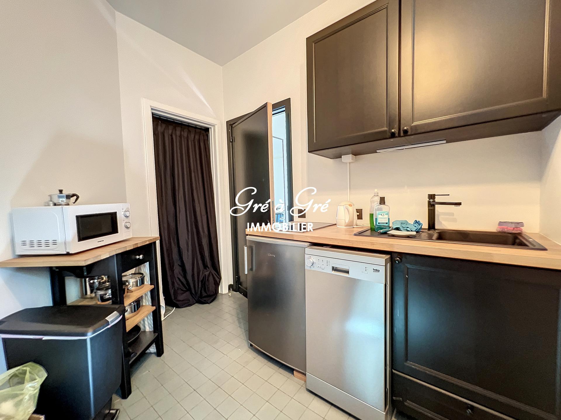 cuisine équipée 5m² (lave-vaisselle, frigo, cuisinière), salle de douches (2m²) avec wc.
