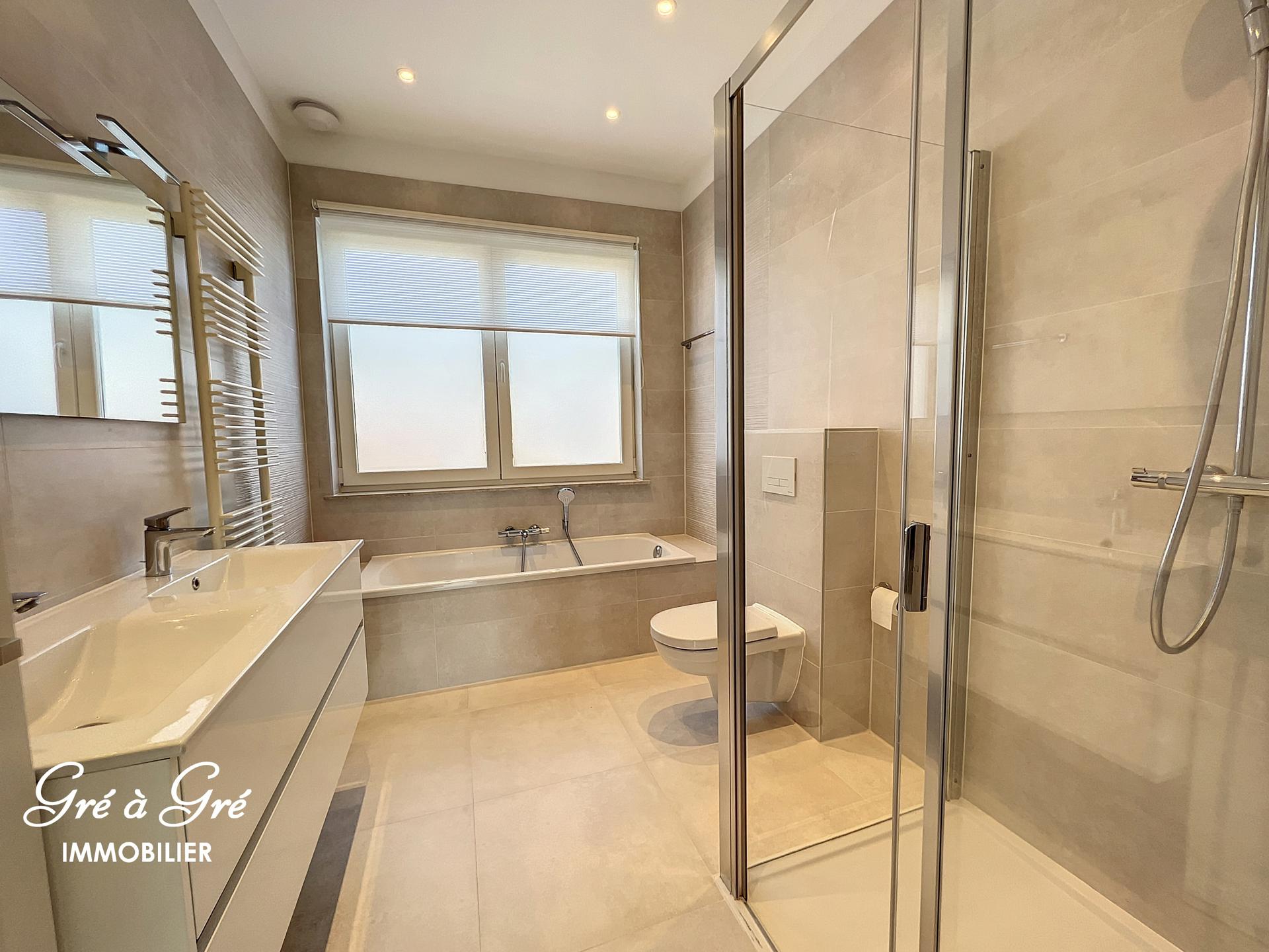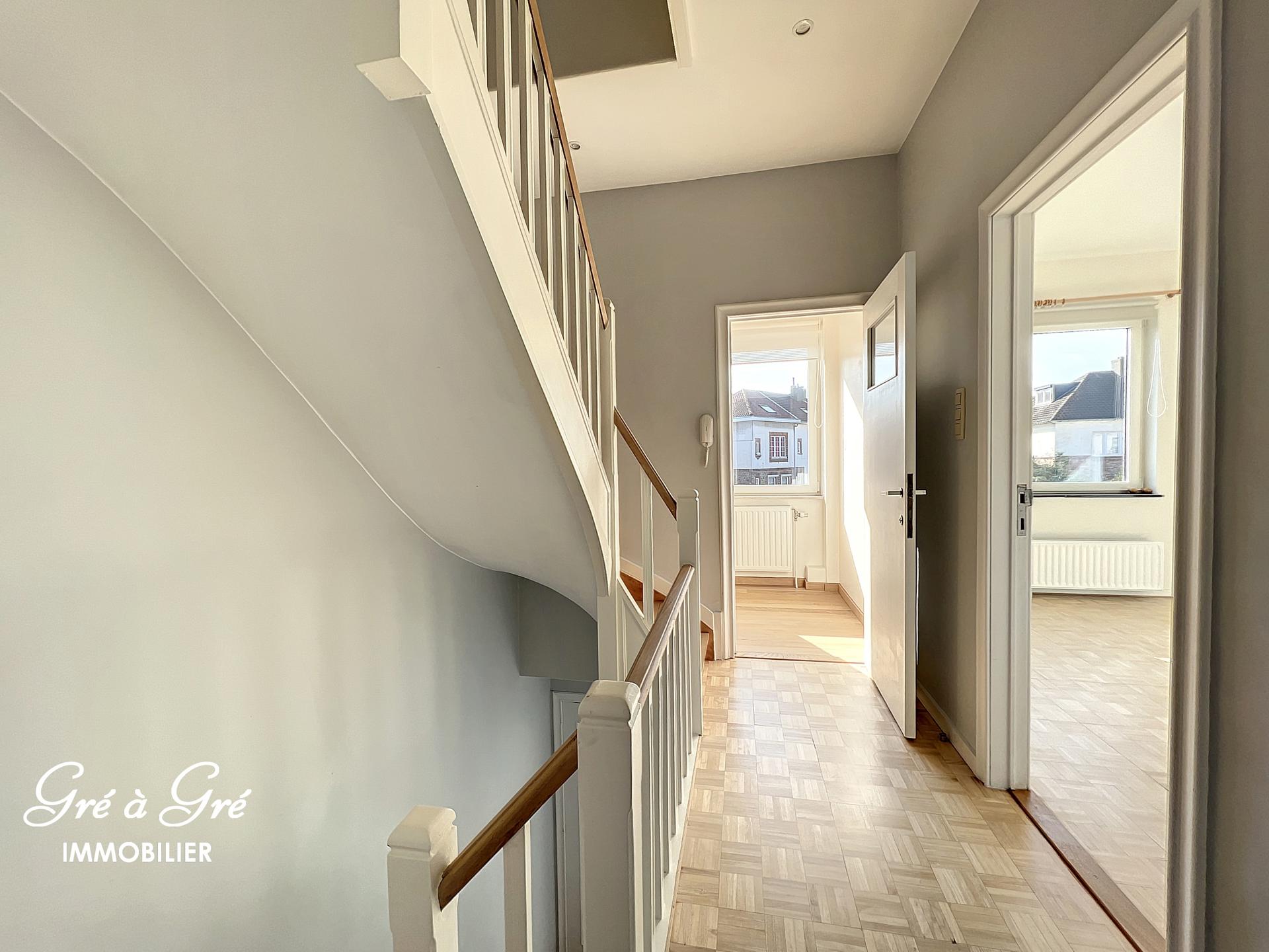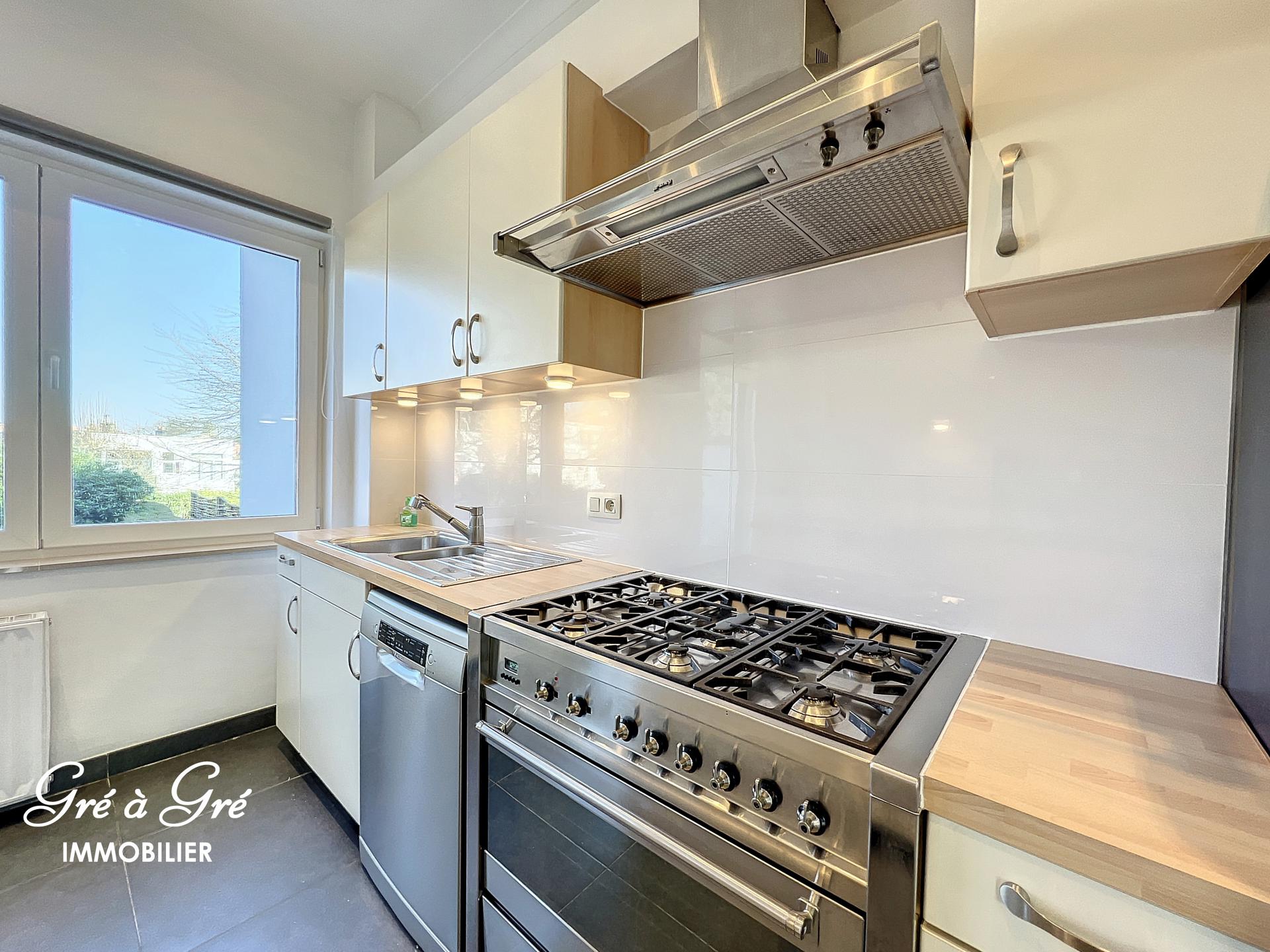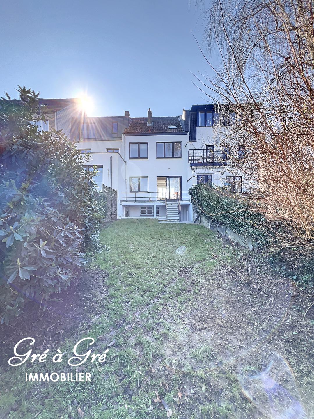 Situation très calme dans une rue agréable à proximité du Parc de la Woluwe, commerces, transports et accès E411, lumineuse maison entièrement rénovée avec terrasse surplombant un beau jardin. La maison se compose au rez-de-chaussée, d'un hall d'entrée avec vestiaire et toilette, séjour avec une large porte fenêtre donnant accès direct à la terrasse, une cuisine super équipée disposant de nombreux rangements. Au premier étage, deux chambres (15 et 13 m²), un bureau, une grande salle de bain, avec double vasque, baignoire, cabine de douche, et wc. Au deuxième étage, deux chambres (14 et 10 m²), un dressing, une salle de douches avec wc. Au sous-sol, grande buanderie avec accès extérieur direct, garage avec porte automatique, caves. Double vitrage, chaudière au gaz récente. PEB F (286)-avant nouveaux chassis double vitrage. Disponnible immédiatement!