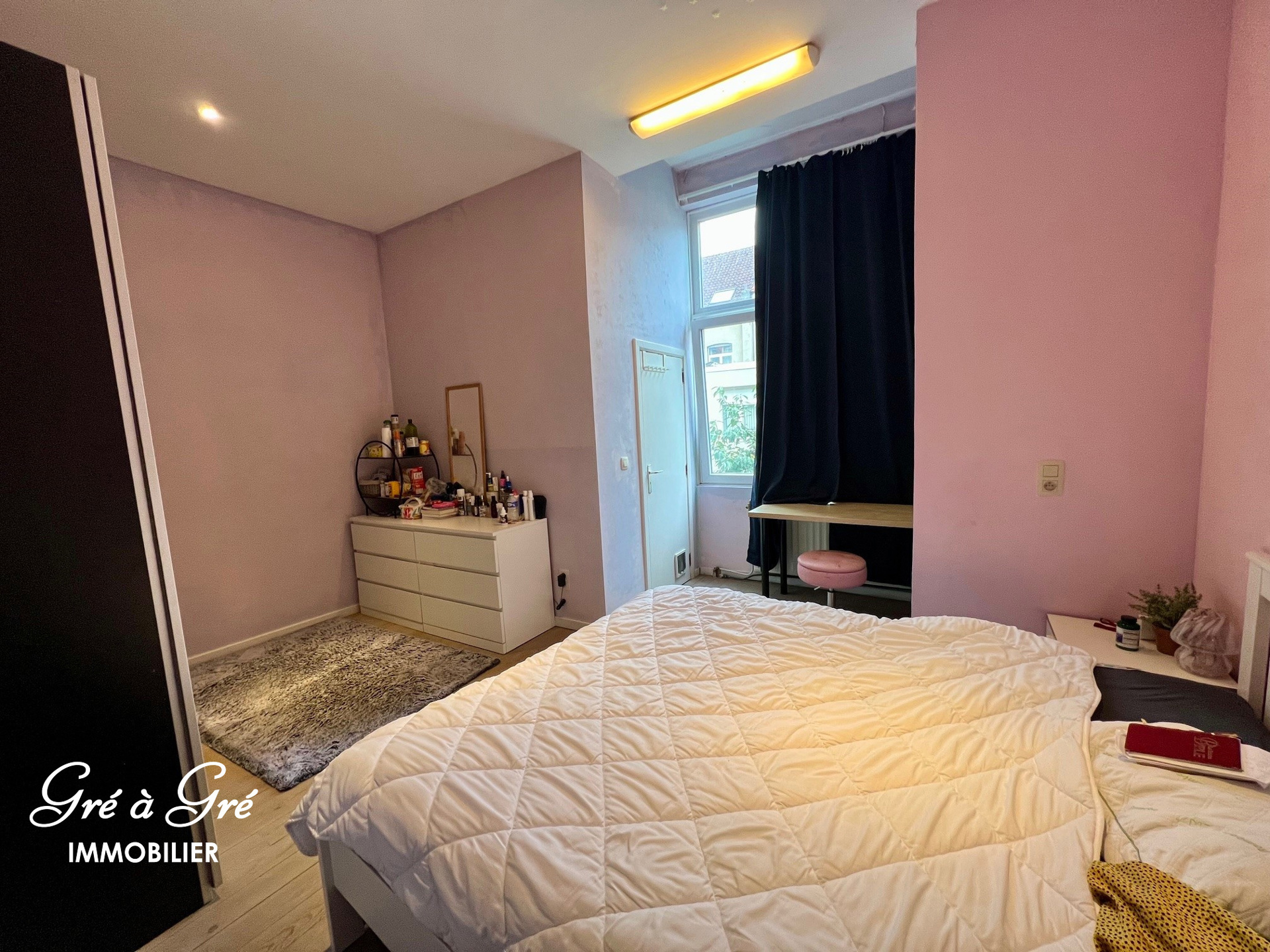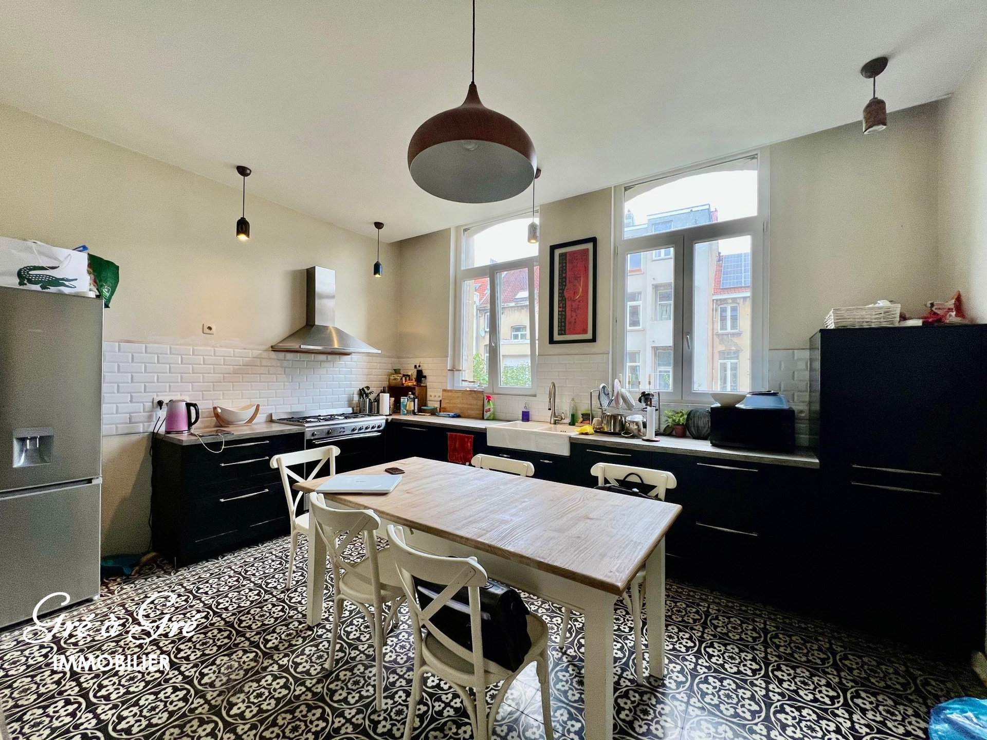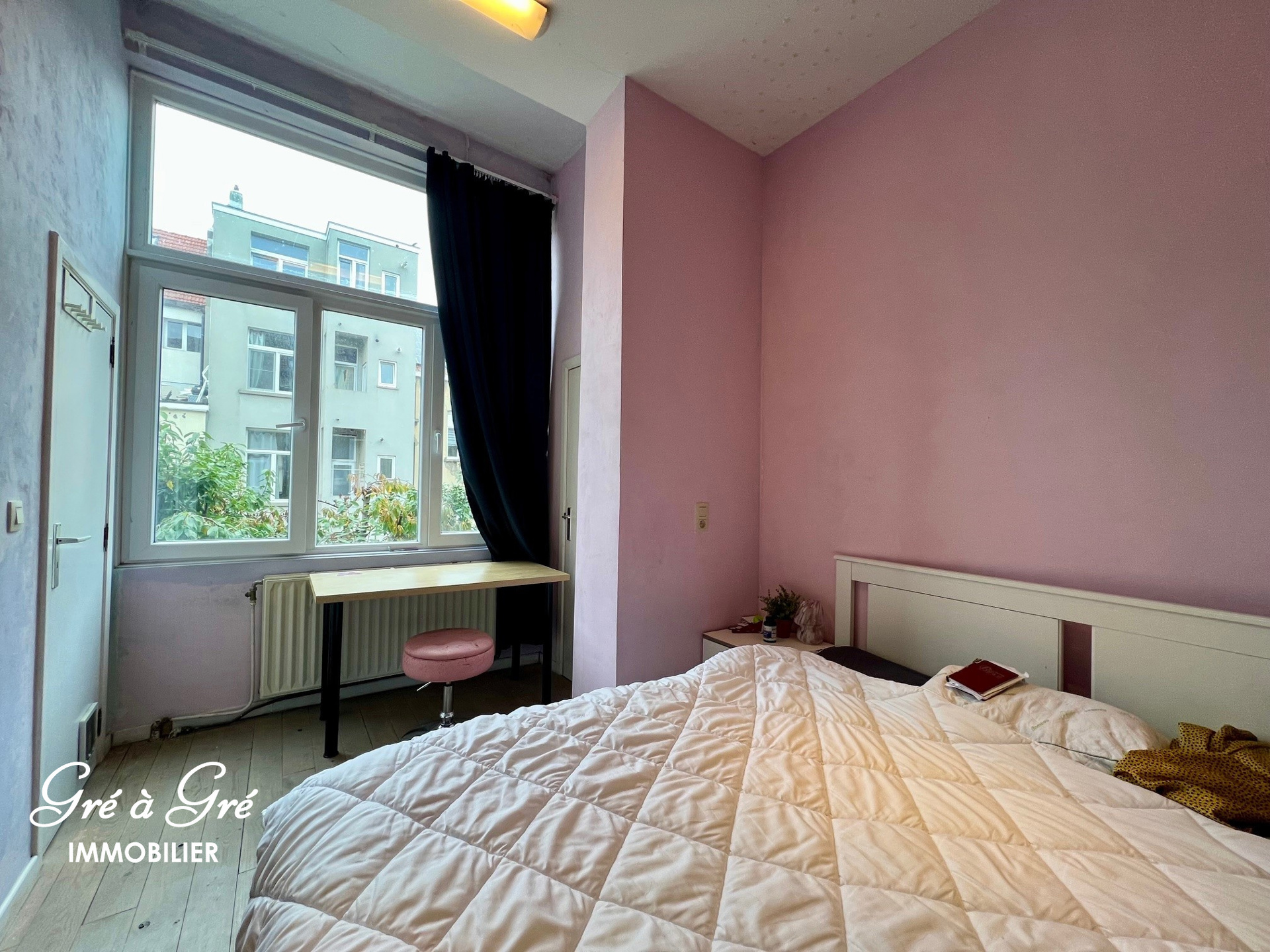 Au 1er étage sans ascenseur d'une maison bruxelloise divisée en appartements, appartement 2 à 3 chambres (17m², 11m² et 9m²). Hall d'entrée, séjour 35m² avec cuisien équipée, salle de douches avec wc, buanderie avec CC gaz individuel neuf. Actuellement loué 1400 eur/mois.