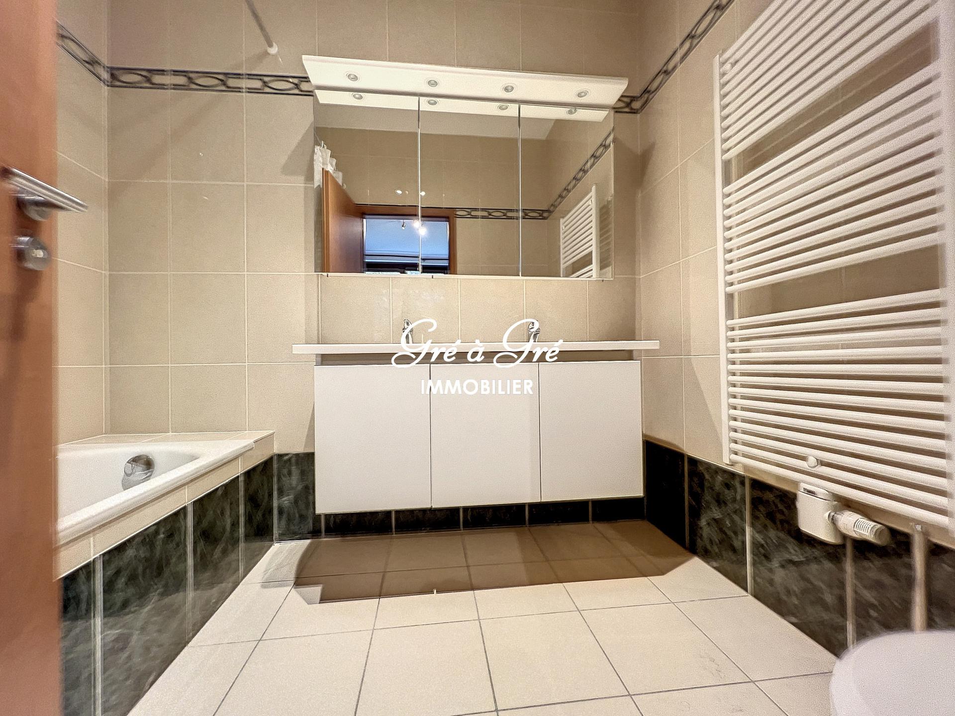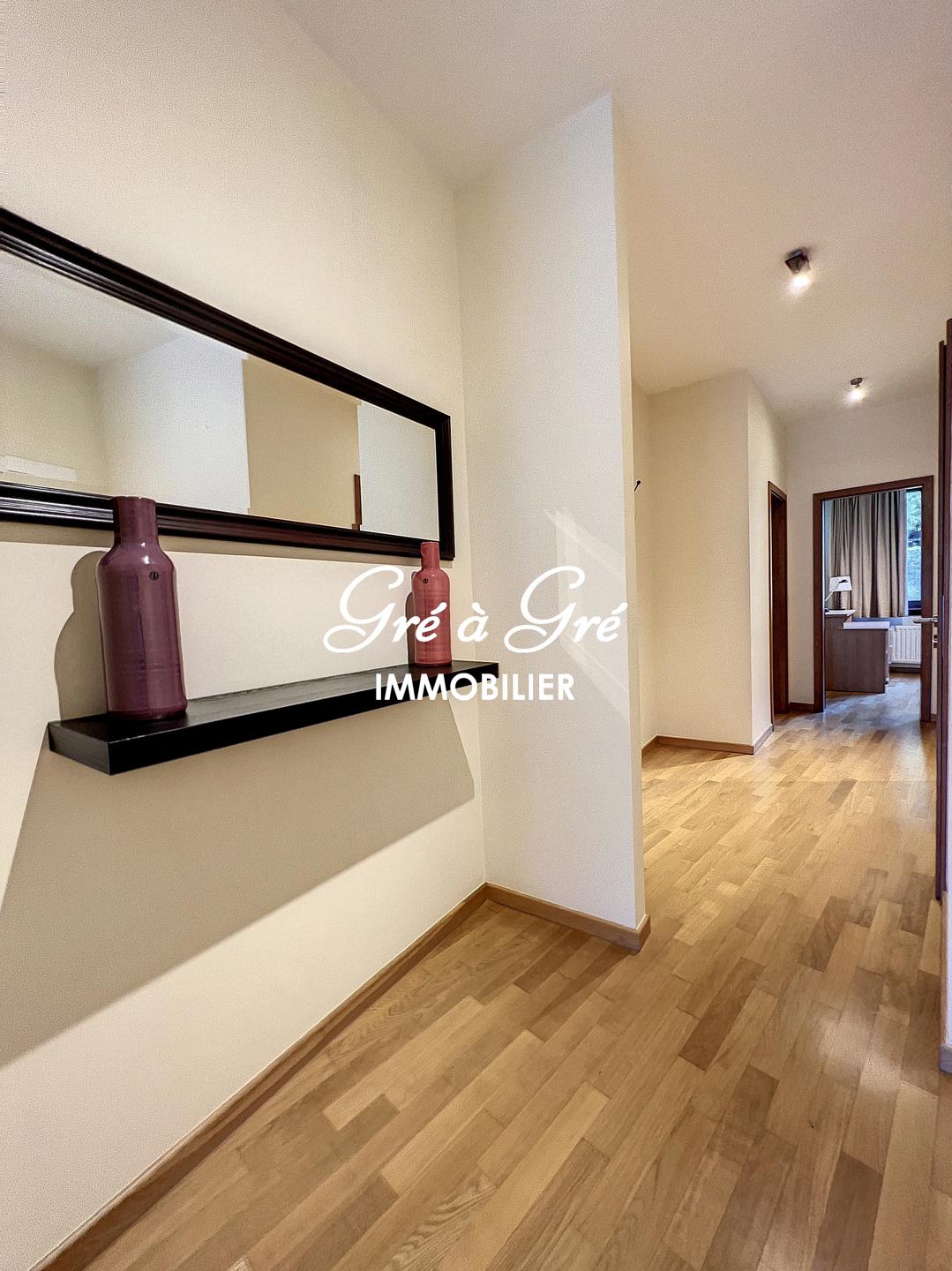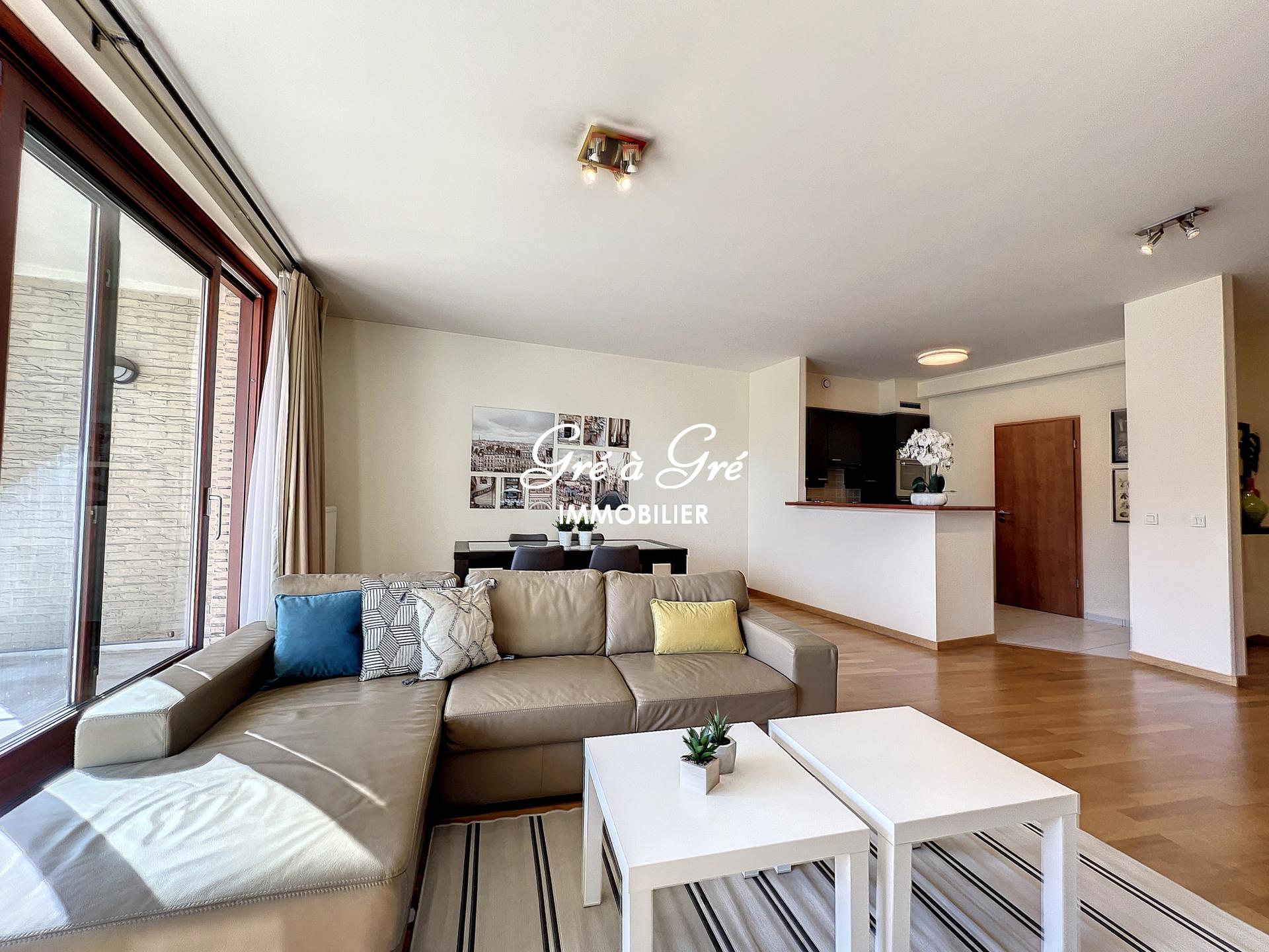 Lumineux appartement (traversant) de 103 m² en excellent état +terrasse (15 m²) orientée SUD-OUEST avec vue dégagée. Hall d'entrée avec porte sécurisée et vidéophone, séjour 40m², cuisine américaine super-équipée, 2 chambres (16m² et 12m²) à l'arrière, 1 salle de bains + 1 salle de douches, 2 toilettes, buanderie/chaufferie/débarras. +Terrasse (15 m²) orientée SUD-OUEST. Cave. Local vélos, local poussettes.