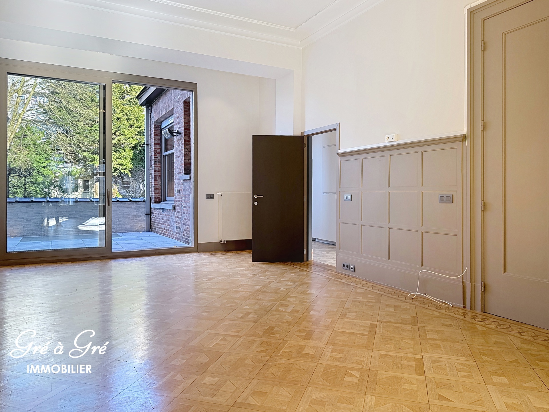 Face au Bois de la Cambre, élégante maison rénovée à usage mixte ou jusqu'à 10 bureaux. Idéal pour ambassade. Libre!