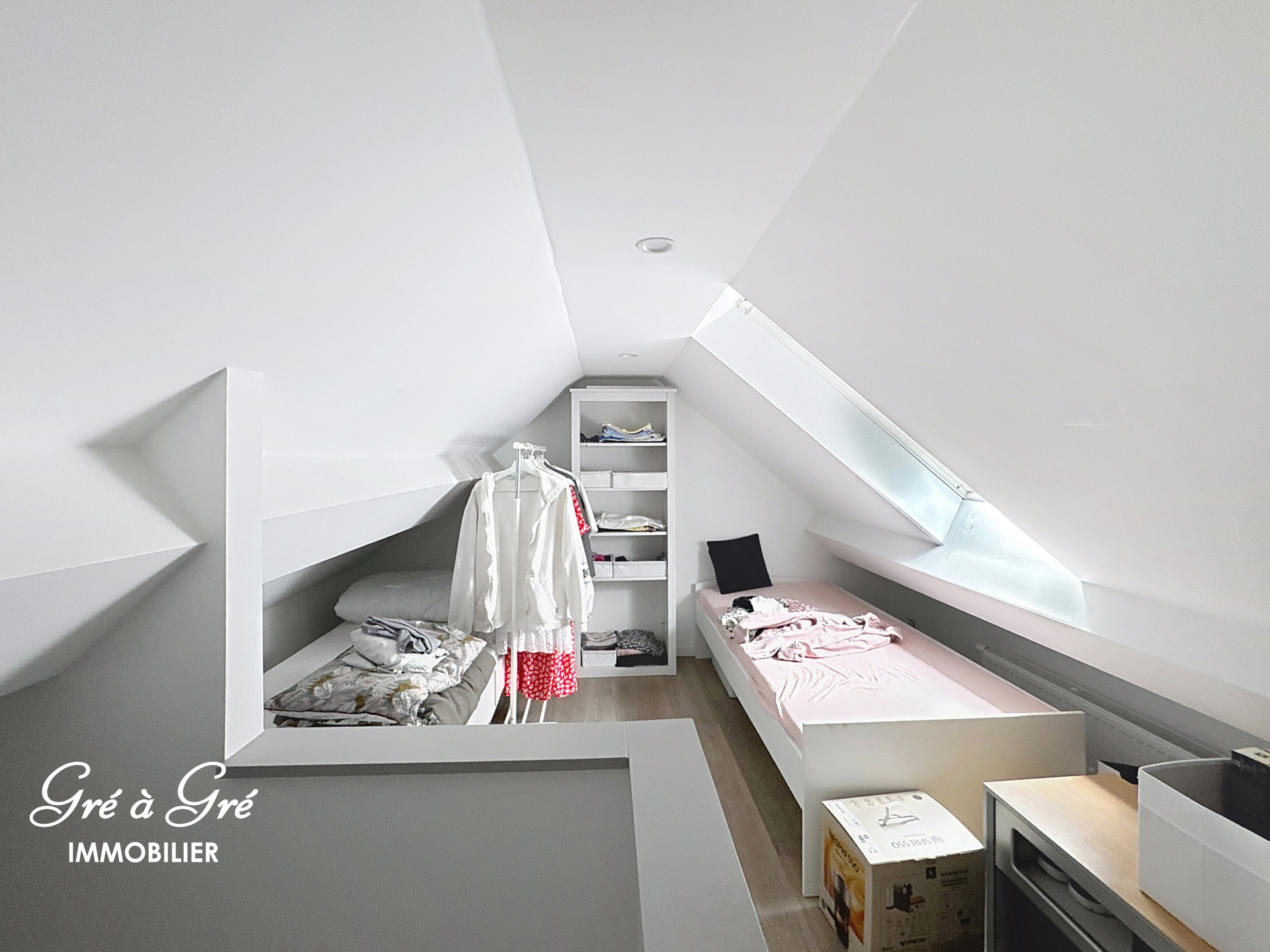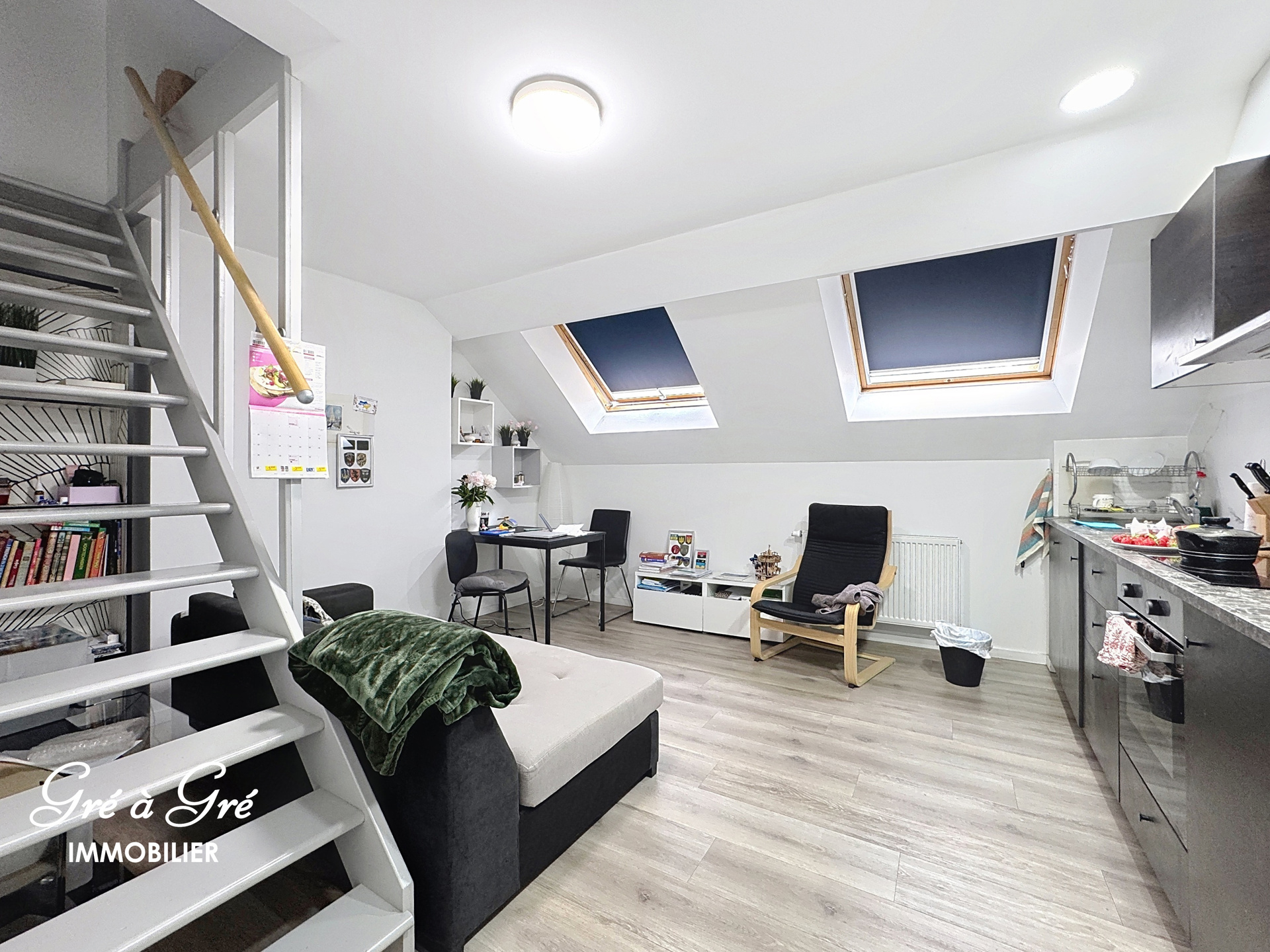 - 1 appartement 63m²duplex-combles avec hall, séjour, suisine, dressing et 2 chambres
