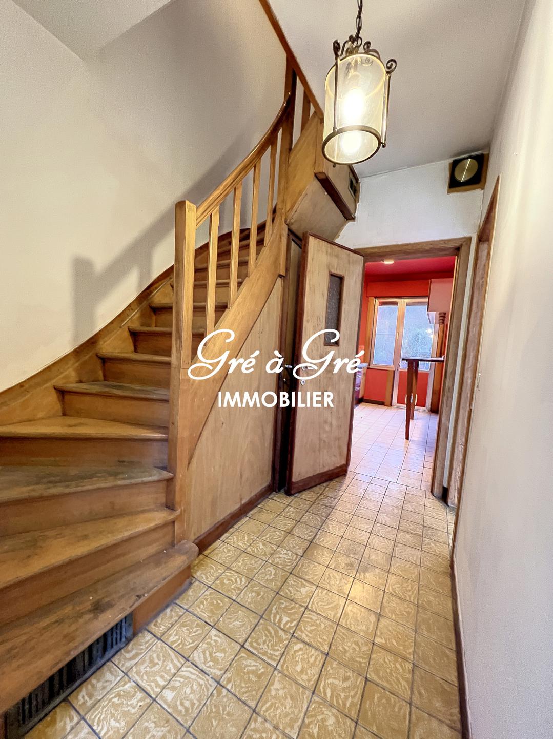 Au rez-de-chaussée, hall d'entrée avec toilette, séjour traversant, cuisine équipée avec accès à l'extérieur.