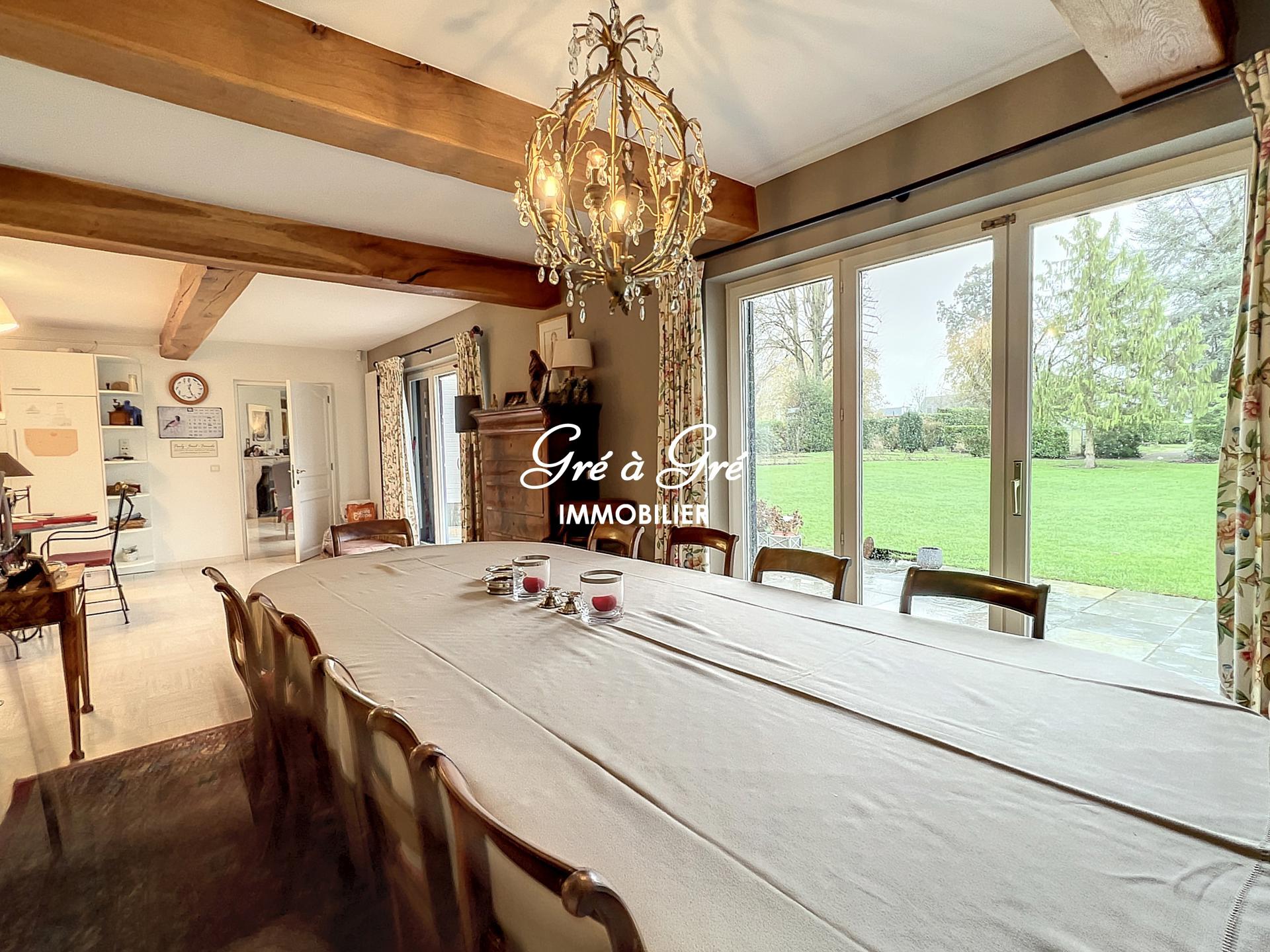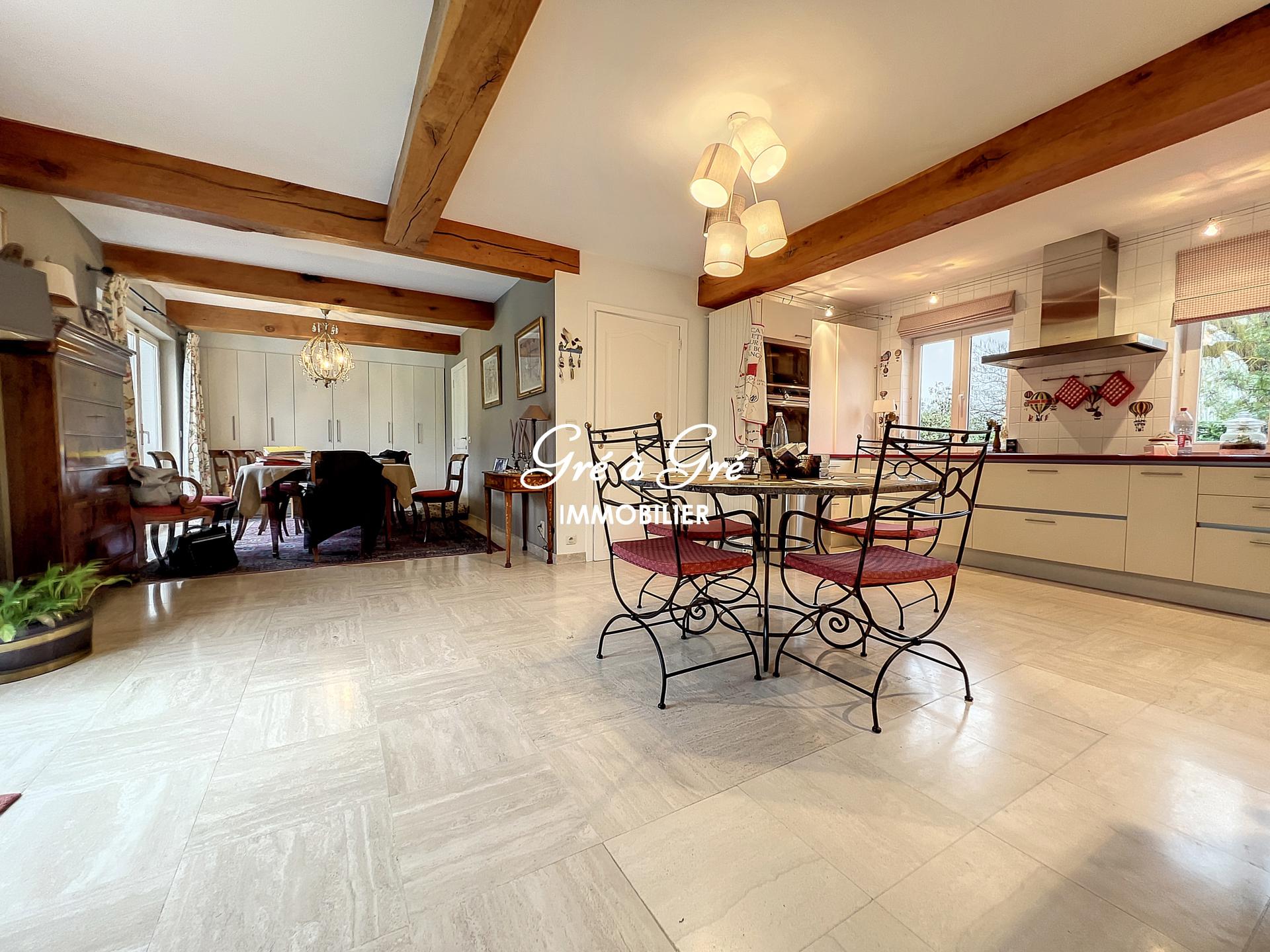 Réceptions (65m²), grande cuisine équipée (27m²), bureau/family room (23m²). A l'étage, 5 chambres, 2 salles de bains et 1 salle de douches.