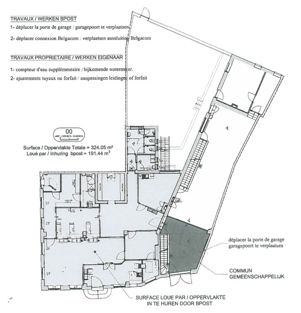 Le rez-de chaussée à usage commercial est loué à Bpost (2650 eur/mois)+ 70% du P.I. Détail conditions locatives sur demande.