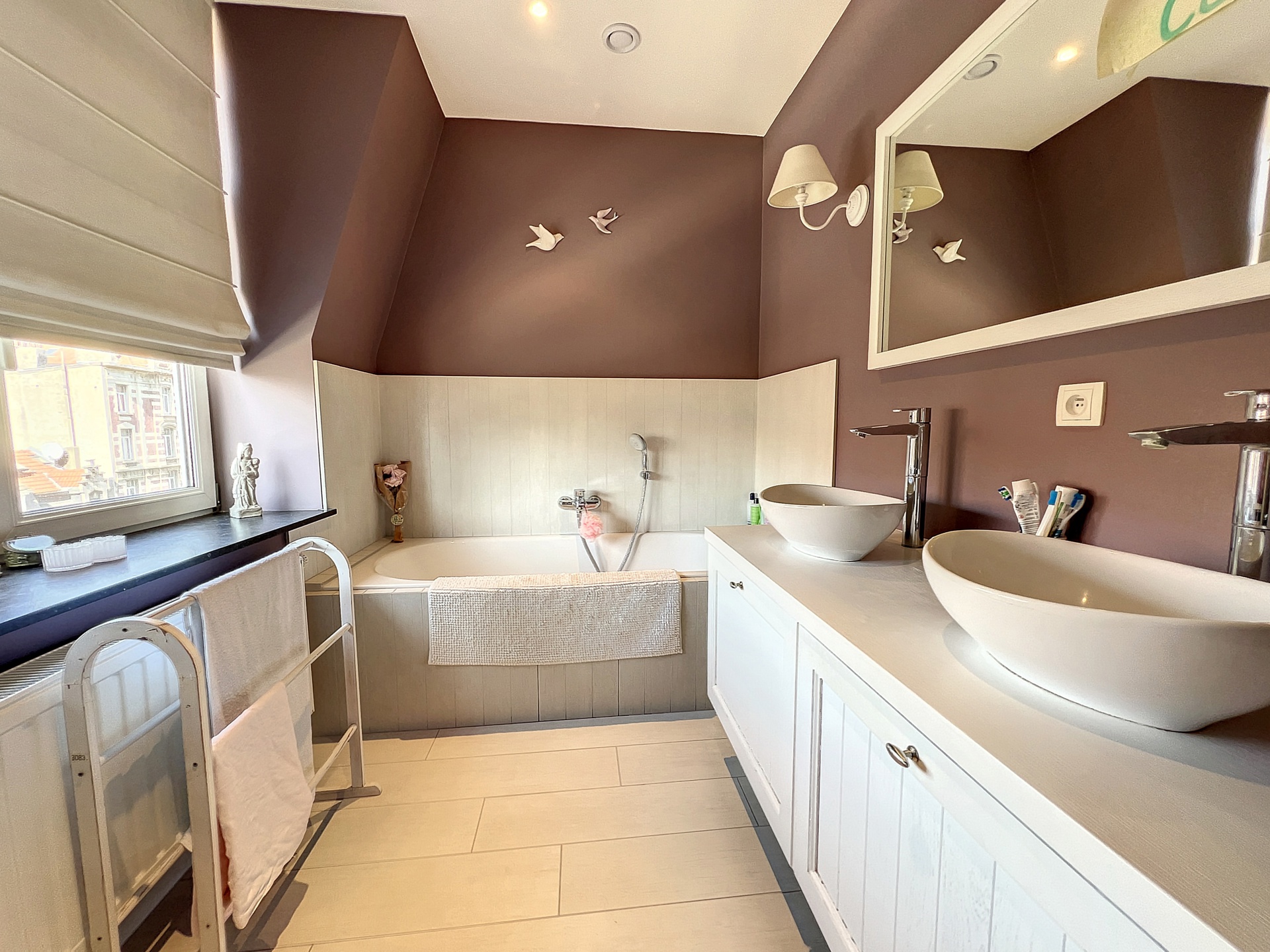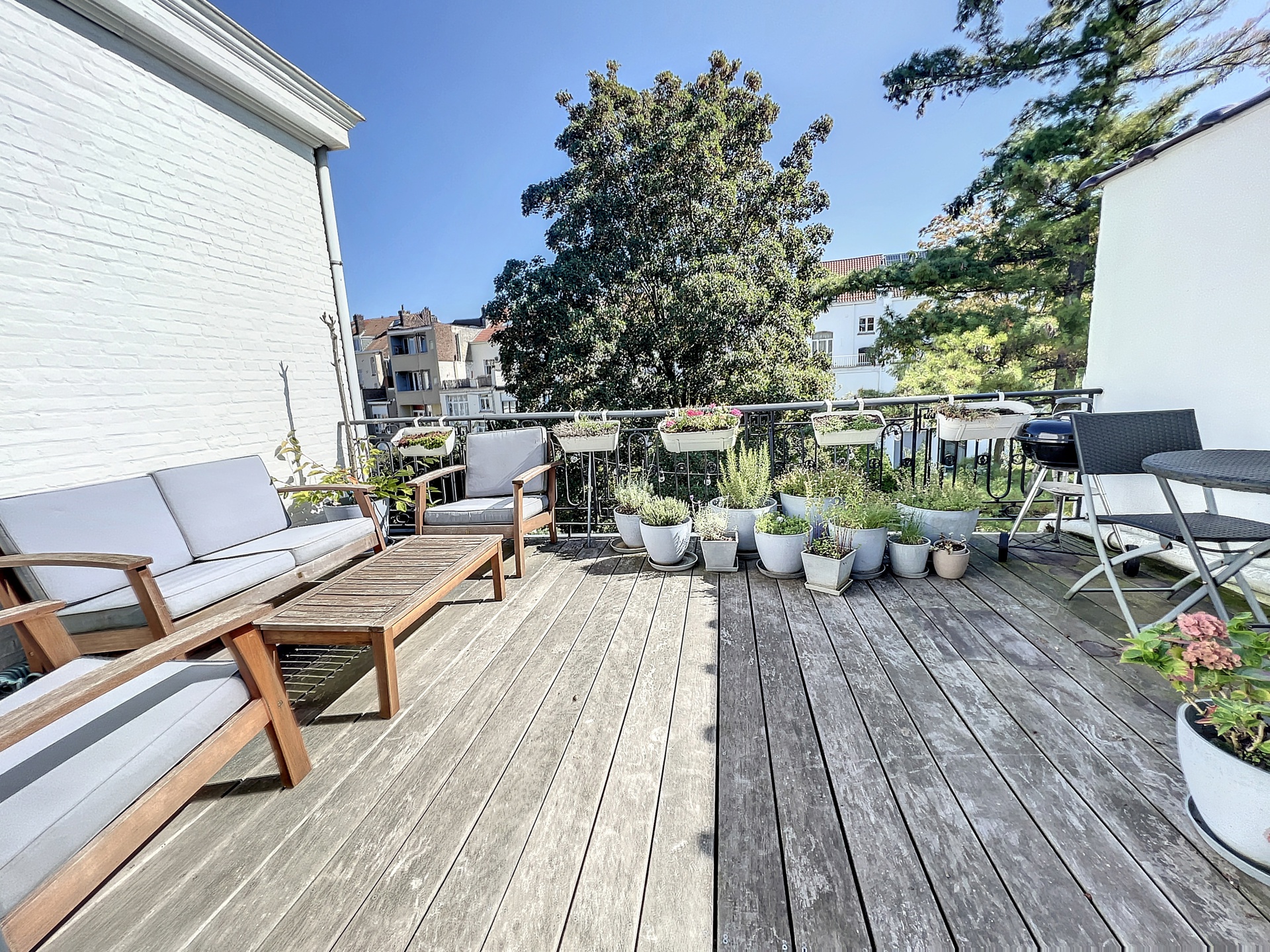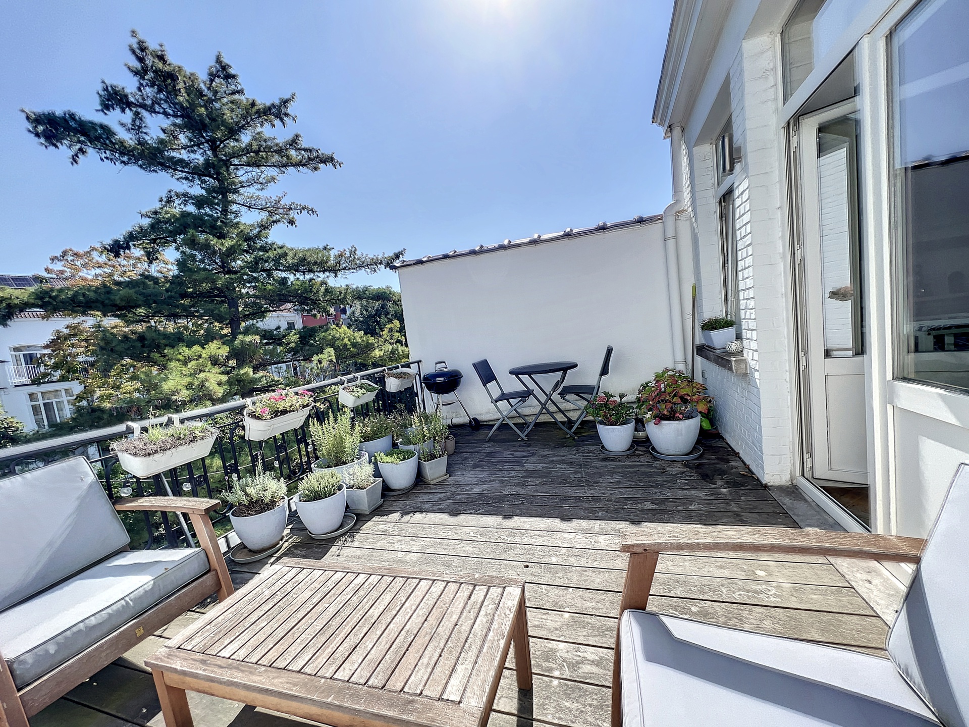 In het centrum van de Europese wijk en in de onmiddellijke nabijheid van de pleinen, het Jubelpark, Schumann (winkels-vervoer), prachtig en licht DUPLEX-PENTHOUSE appartement uitgebreid met een prachtig terras van 15m² met goed uitzicht op de zon en de bomen.