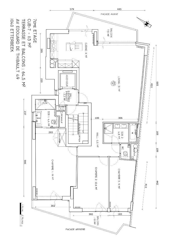 2 front and rear balconies 10 and 7.5 m2