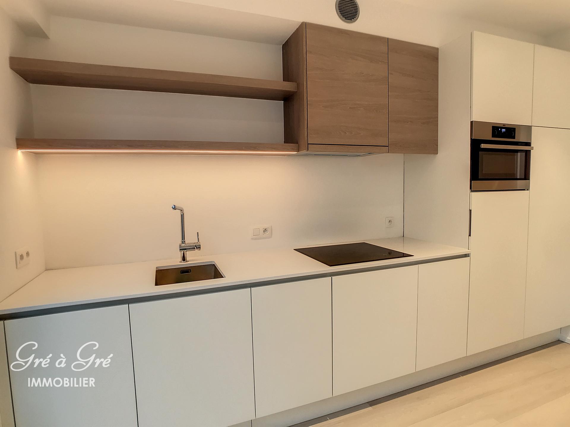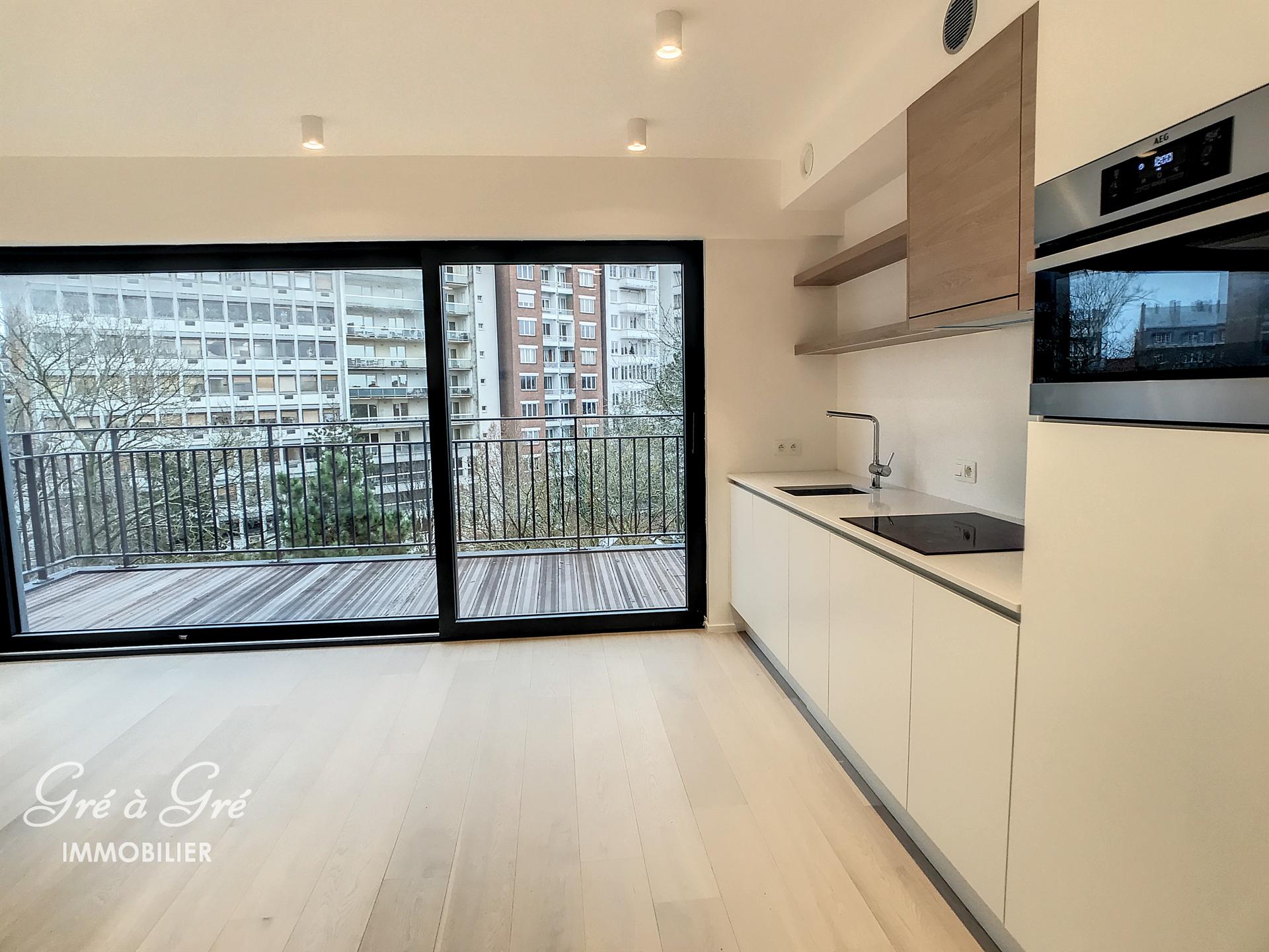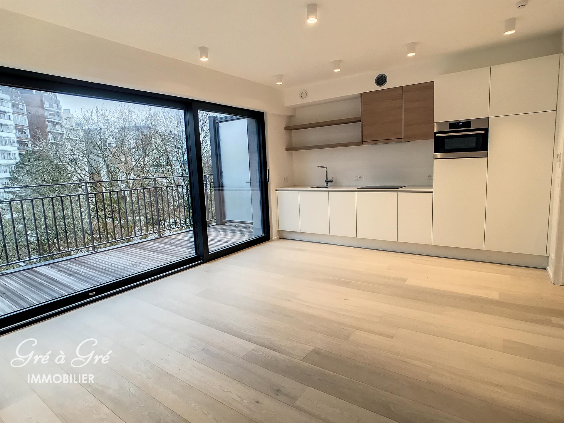 In een aangename rustige buurt nabij de Louizalaan, de Kastelein en het Ter Kamerenbos, schitterende NIEUWE studio (1ste bezetting) met een groot terras en een groen zicht binnen het blok. Gelegen op de 5e verdieping aan de achterkant van de residentie Balmoral, bestaat de studio uit een inkomhal met gepantserde deur en grote kasten, lichte woonkamer met hyper uitgeruste keuken, douchekamer, wasruimte en 20m² terras op het zuiden. Nu beschikbaar.