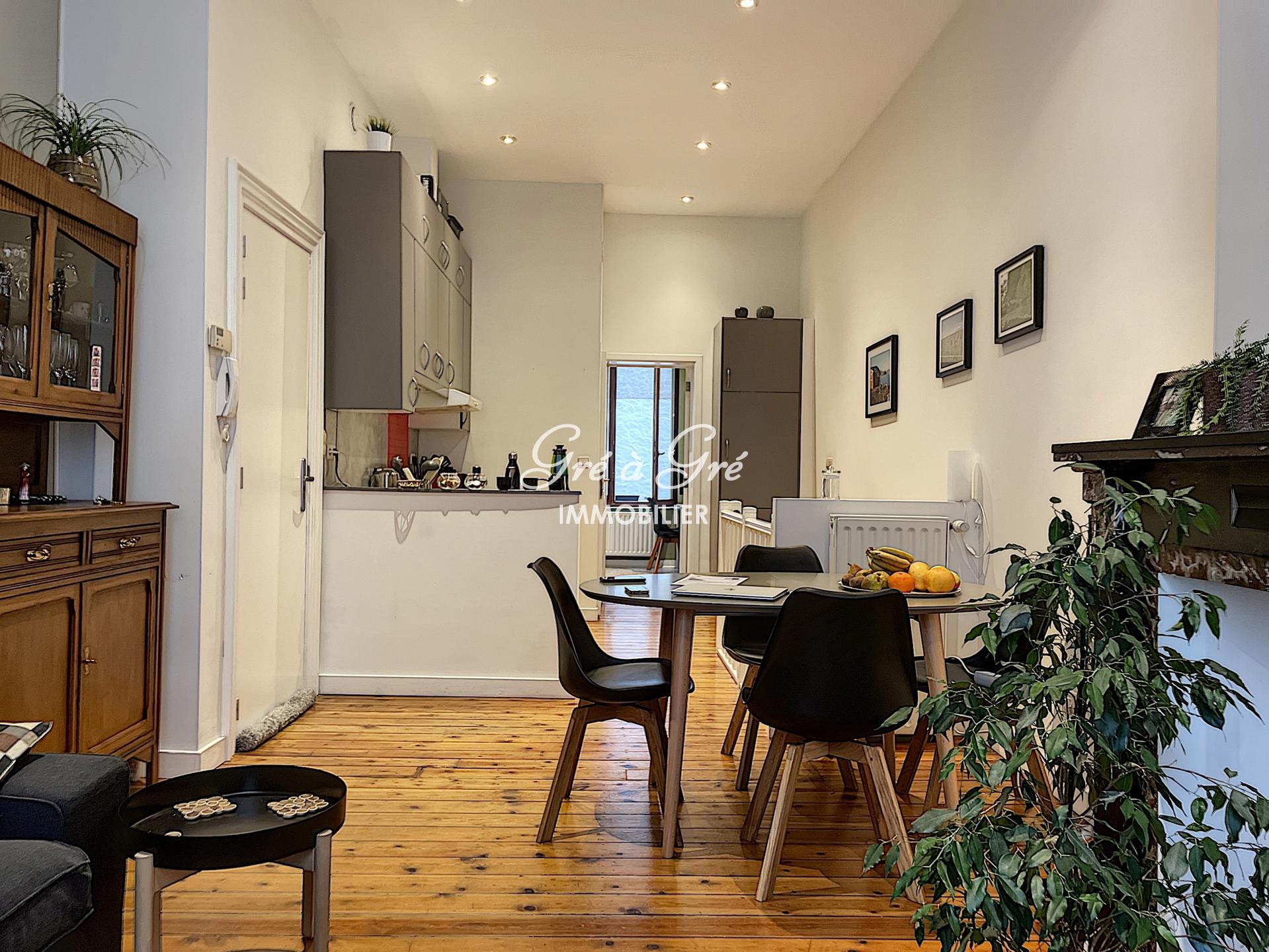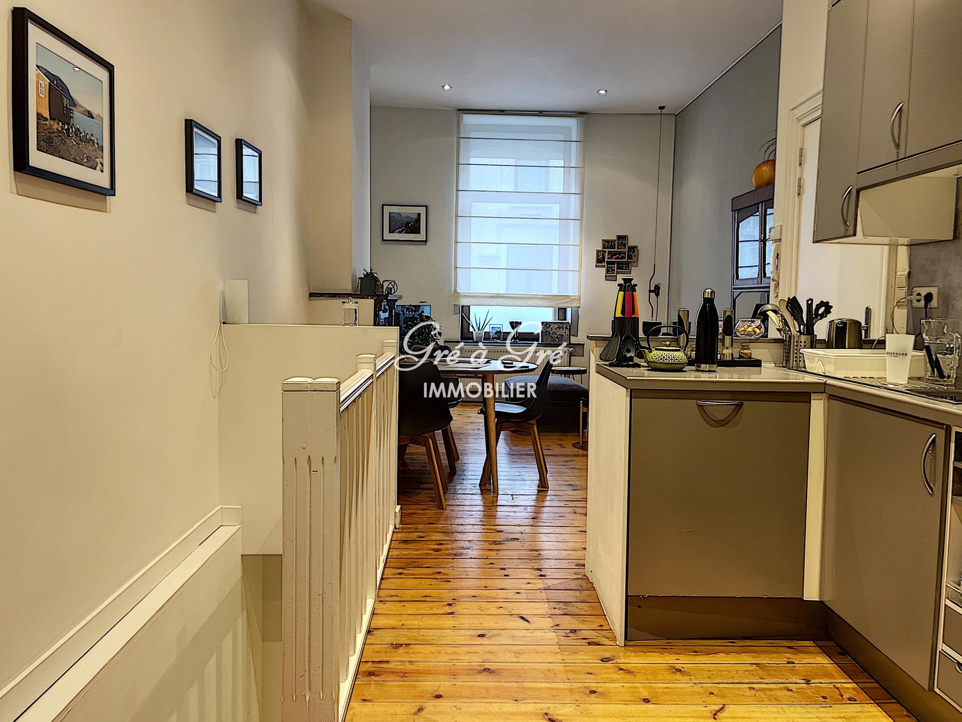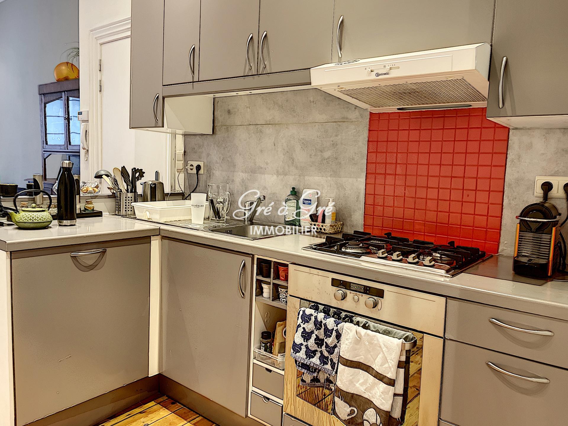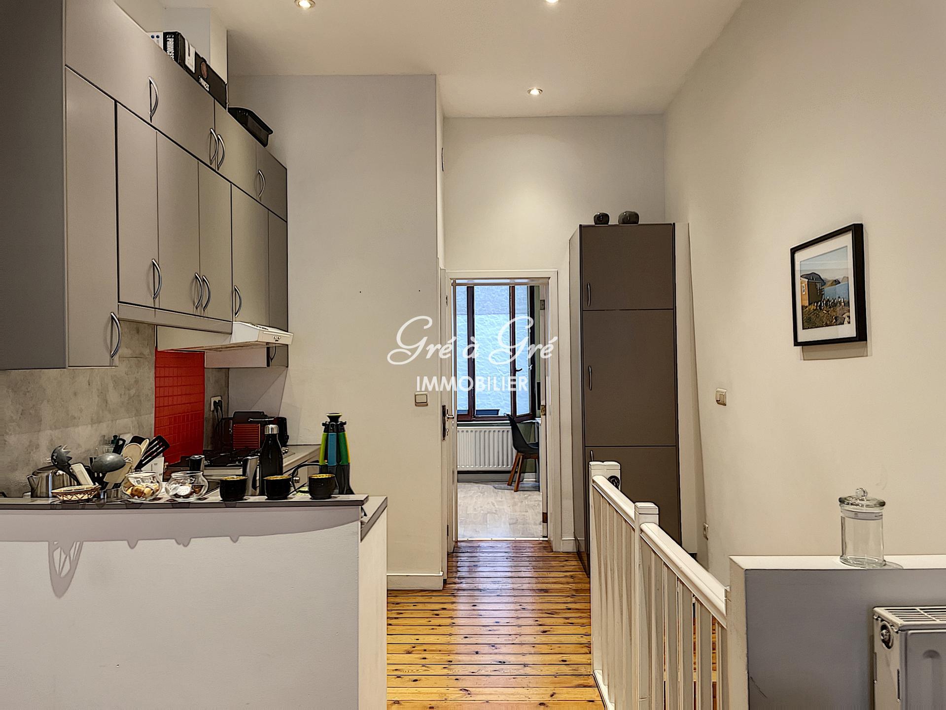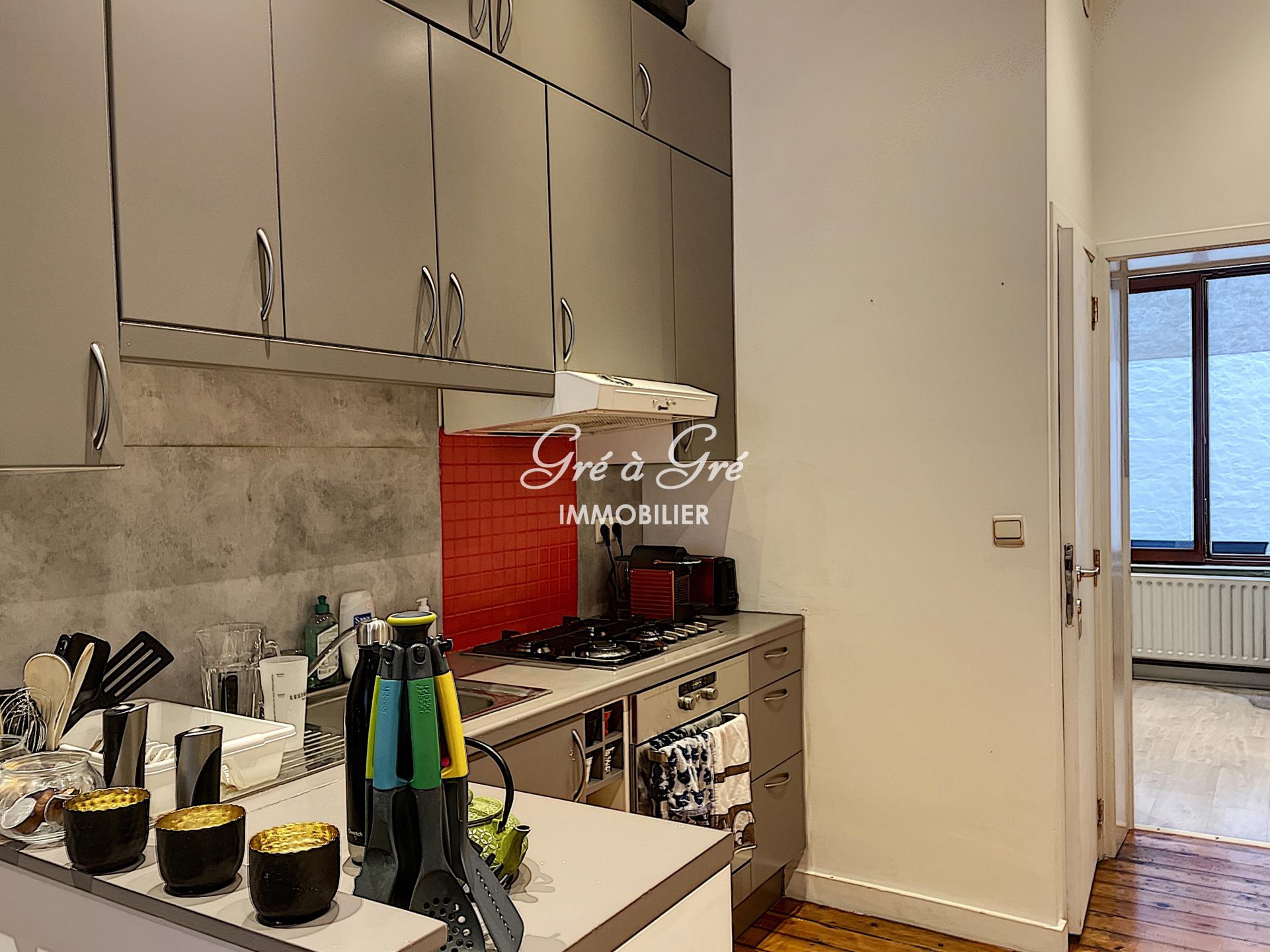 Mooie flexibele GEMEUBILEERD in een klein rustig gebouw en bestaande uit: woonkamer - eetkamer, hyper uitgeruste keuken (koelkast, vriezer, gaskookplaten, afzuigkap, vaatwasser, oven), 1 slaapkamer, 1 badkamer met aparte douche en een toilet, wasplaats ruimte met wasmachine, 1 kantoor of logeerkamer, 1 apart toilet. Terras/binnenplaats.