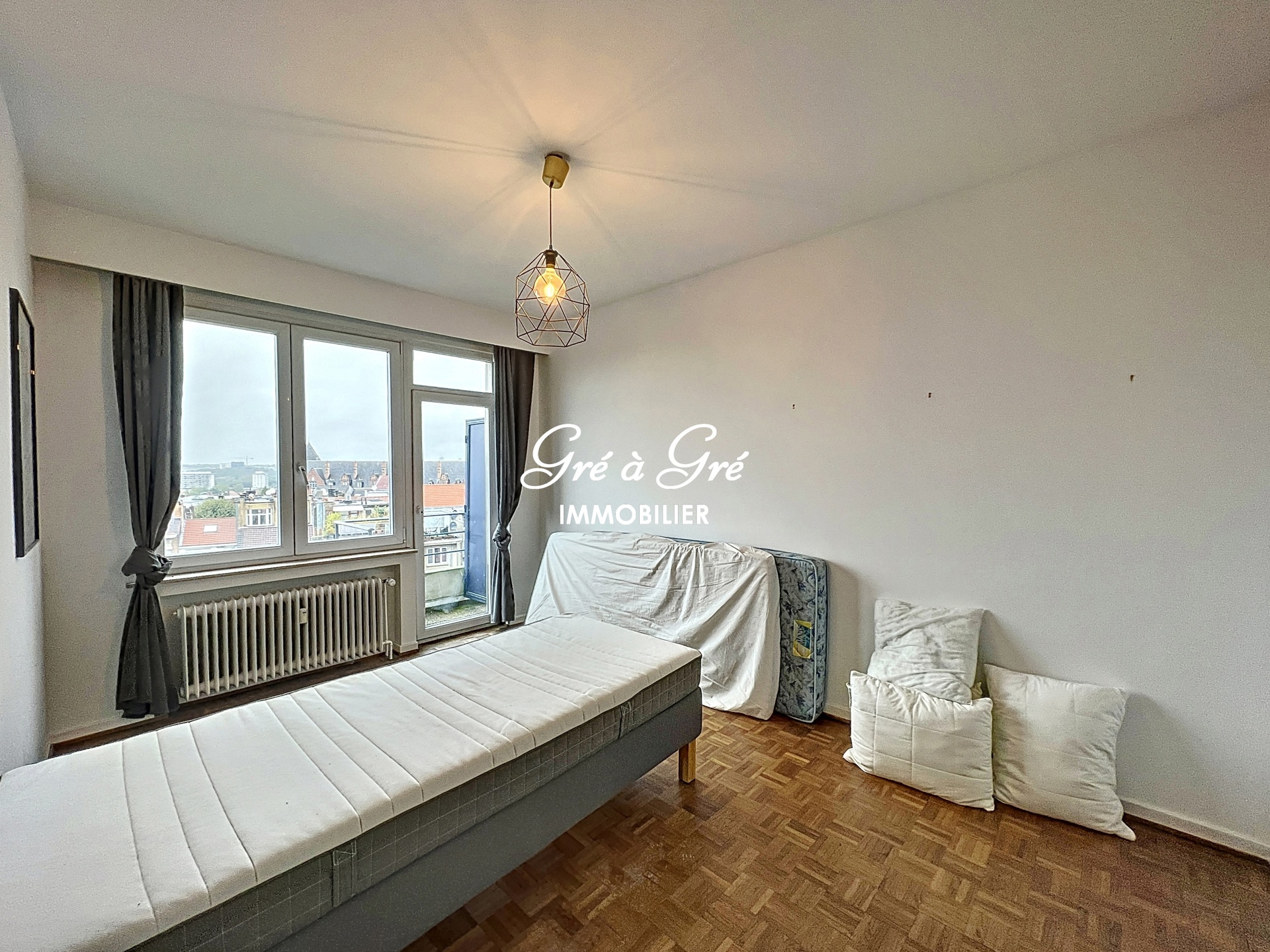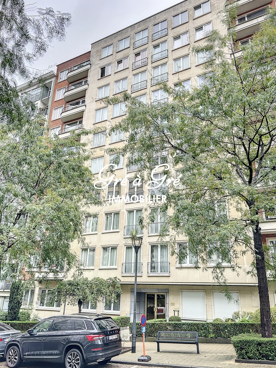 Rustige, bosrijke woonwijk met prachtig vrij uitzicht, groot en licht gerenoveerd appartement bestaande uit een inkomhal met toilet, wastafel en vestiaire, grote woonkamer met balkon, ingerichte keuken en bijkeuken, nachthal, doucheruimte met wasmachine om te wassen, 2 mooie slaapkamers en terras op het zuidwesten. Kelder, overdekte buitenparkeerplaats, gemeenschappelijke fietsenstalling. Kosten: 200 euro/maand (voorziening voor gemeenschappelijke ruimtes, verwarming en water). NIET inbegrepen: privé elektriciteit. Direct beschikbaar.