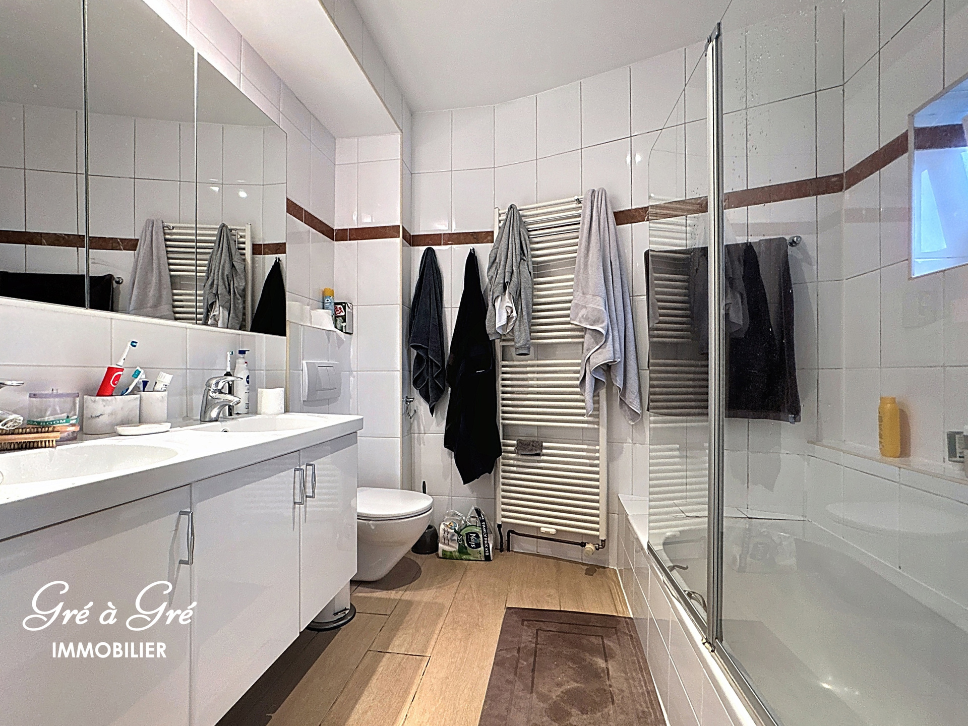 Elegante, gerenoveerde woning bestaande uit een inkomhal, een grote, volledig ingerichte keuken met ontbijthoek, een woonkamer met open haard, een eetkamer/kantoor (13 m²), vier ruime slaapkamers (22 m², 22 m², 19 m² en 19 m²), twee badkamers/doucheruimtes, drie toiletten, kelders en een zolder.
